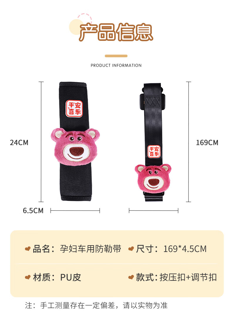 特萌姐姐孕妇安全带汽车专用防勒肚子怀孕用品大全副驾驶儿童保险带固定器 【草莓熊】孕妇安全带(黑色)
