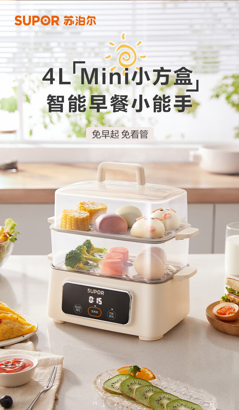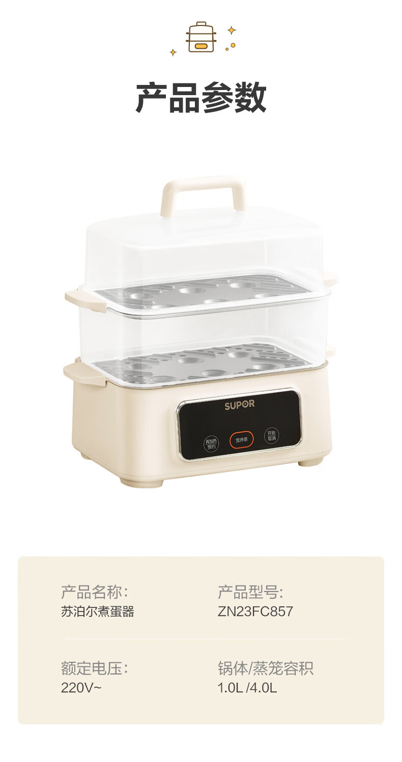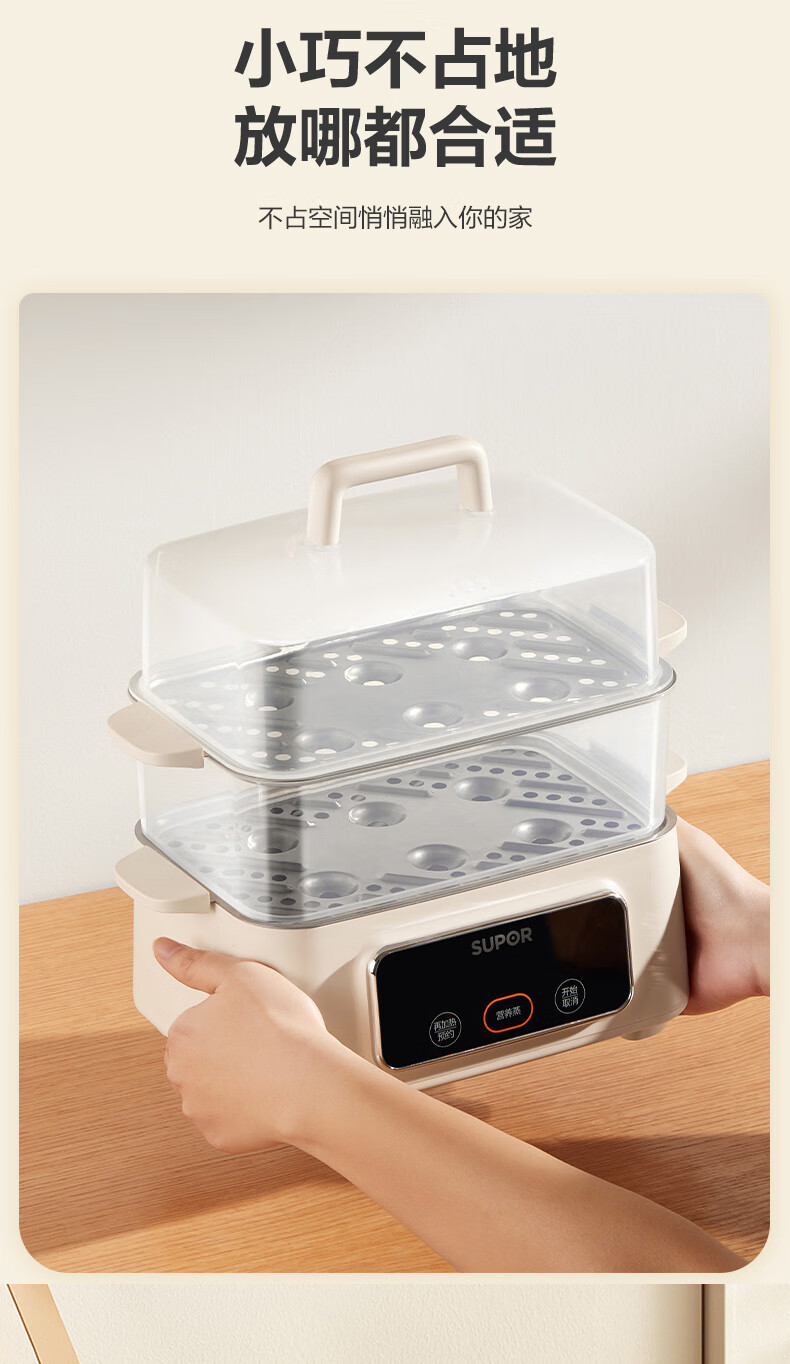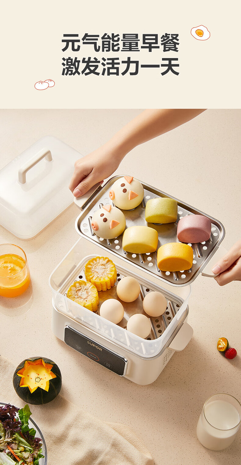 Яйцеварка SUPOR, пароварка для яиц, пароварка, электрическая пароварка, артефакт для приготовления яиц на пару, маленькая пароварка для вареных яиц, умная бытовая мини-пароварка для яиц, двухслойная пароварка, таймер, двухслойная пароварка из нержавеющей стали Z16YK958