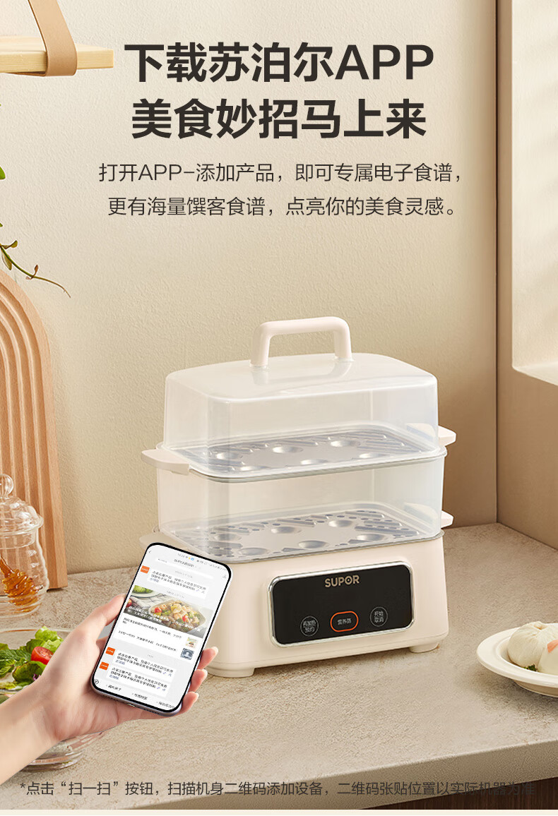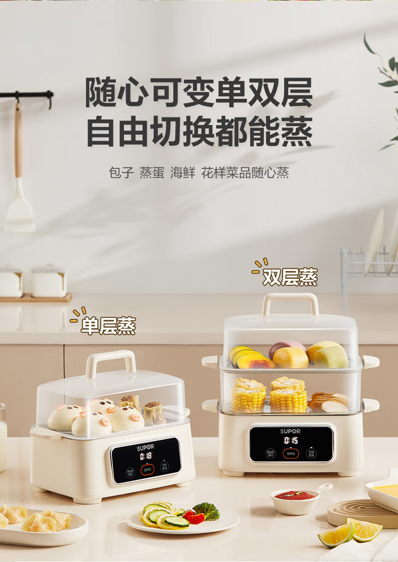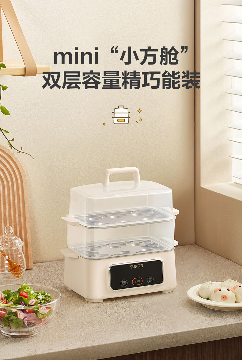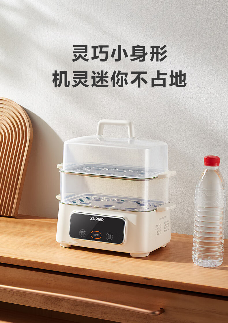 Яйцеварка SUPOR, пароварка для яиц, пароварка, электрическая пароварка, артефакт для приготовления яиц на пару, маленькая пароварка для вареных яиц, умная бытовая мини-пароварка для яиц, двухслойная пароварка, таймер, двухслойная пароварка из нержавеющей стали Z16YK958