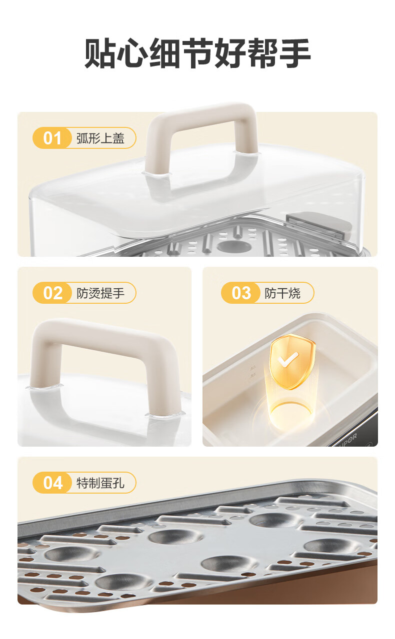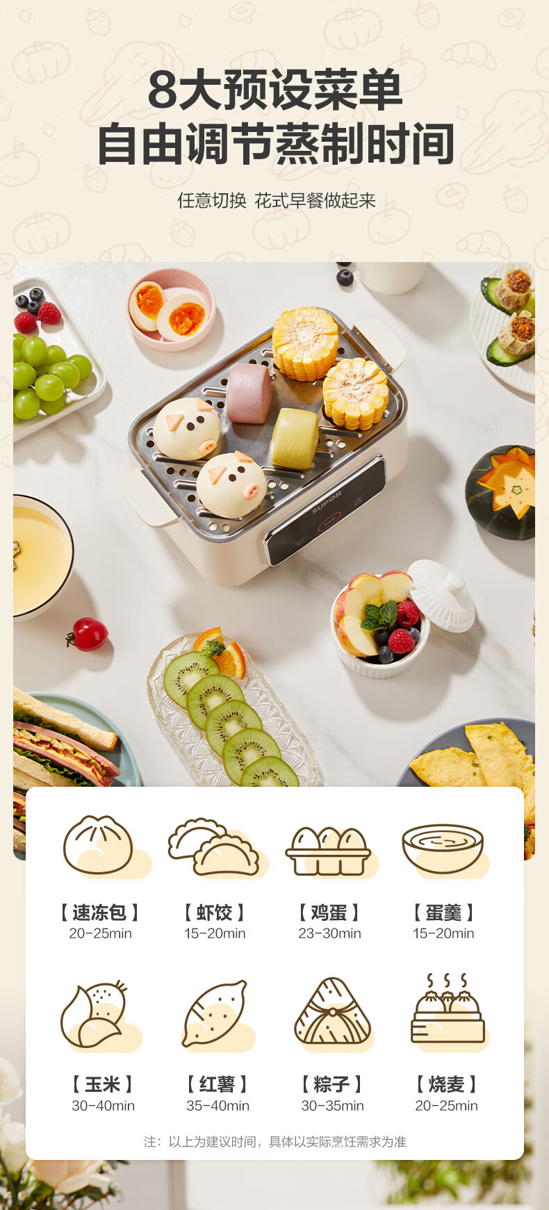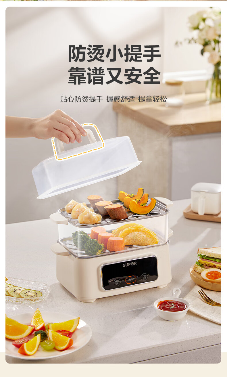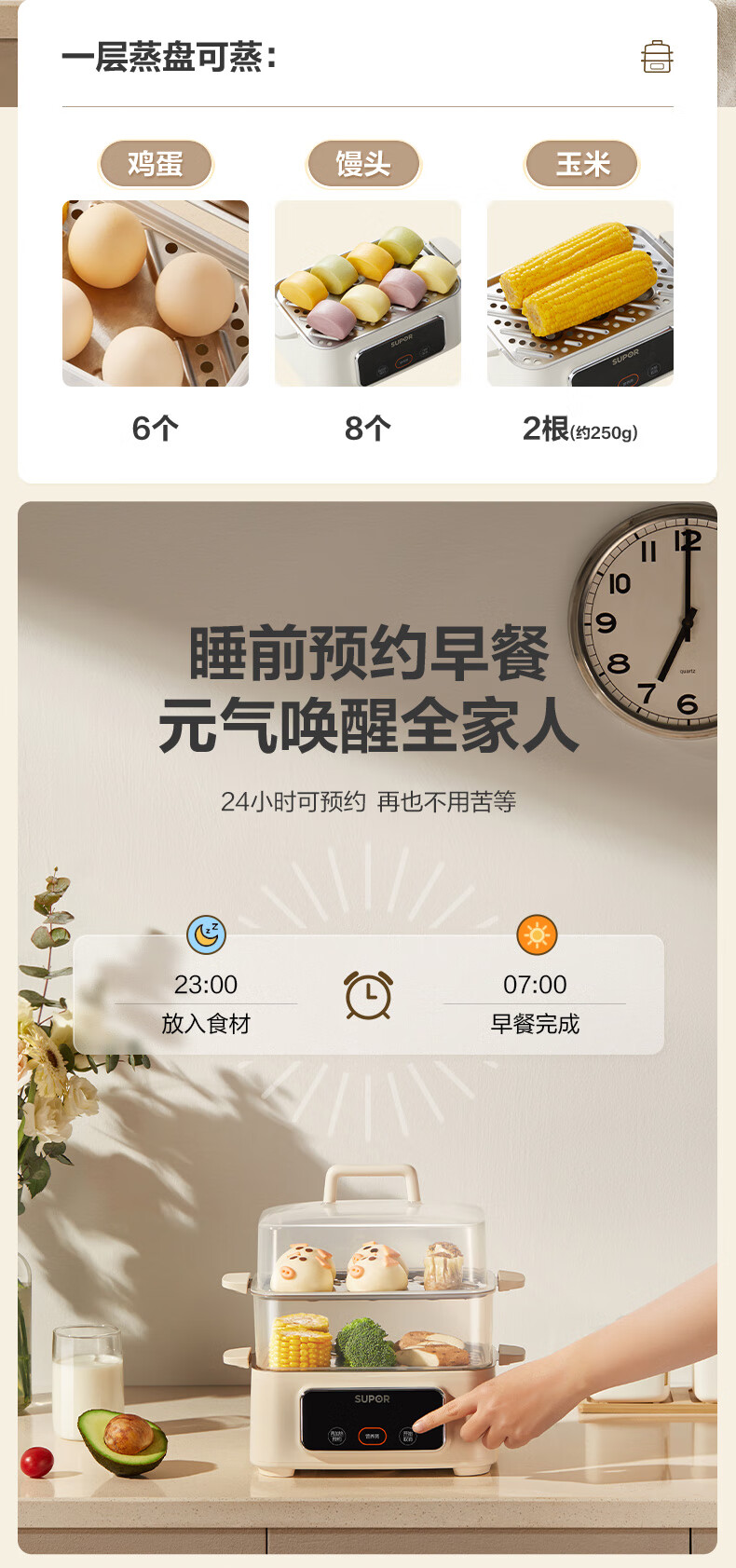 Яйцеварка SUPOR, пароварка для яиц, пароварка, электрическая пароварка, артефакт для приготовления яиц на пару, маленькая пароварка для вареных яиц, умная бытовая мини-пароварка для яиц, двухслойная пароварка, таймер, двухслойная пароварка из нержавеющей стали Z16YK958