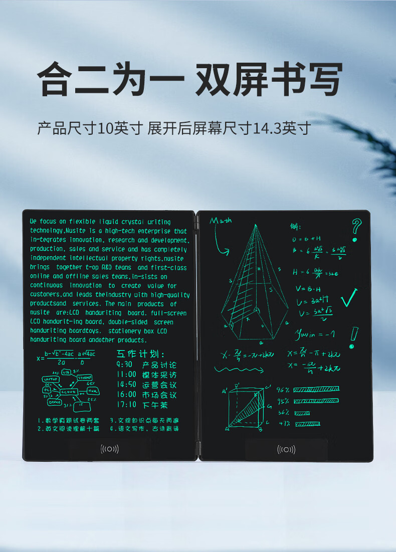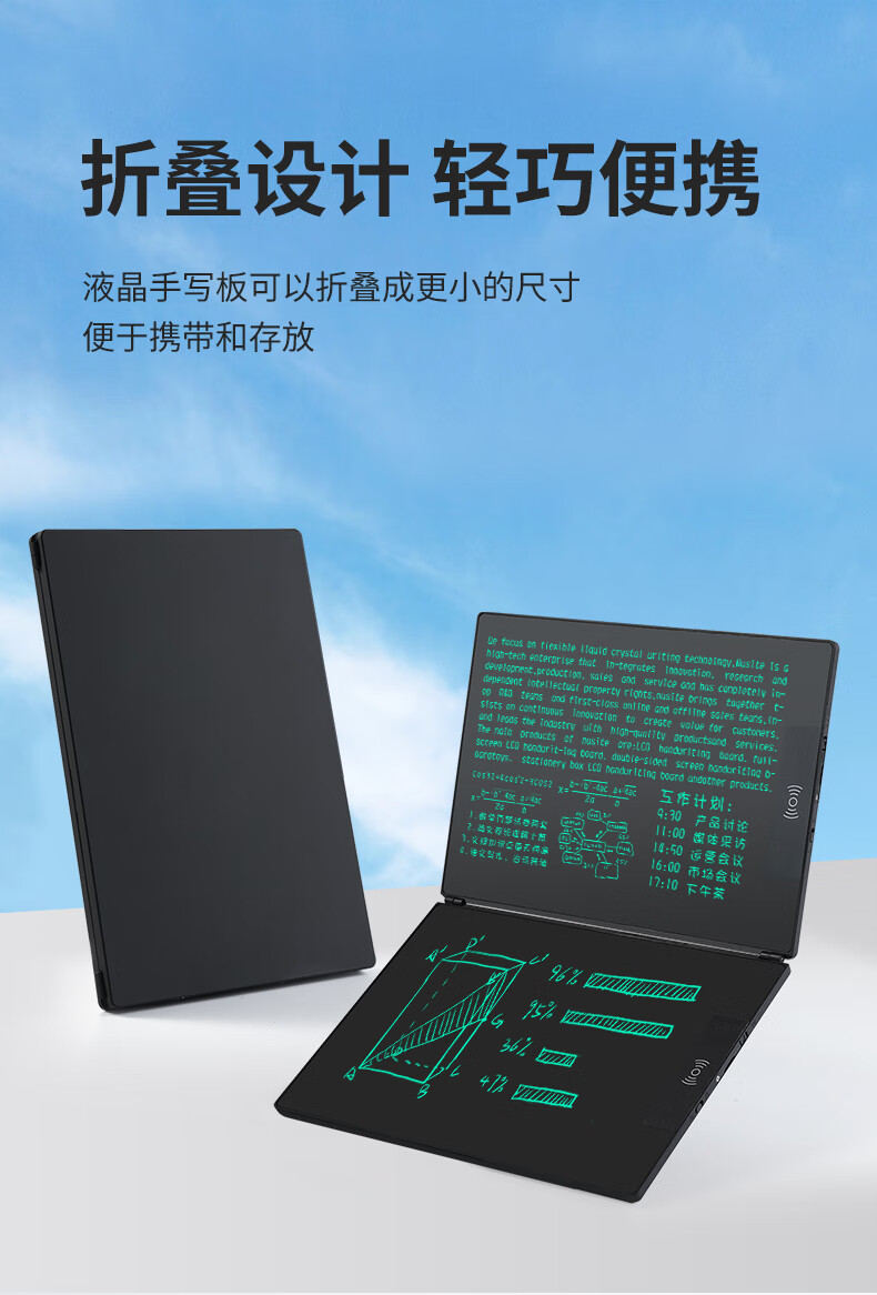 PBJ new foldable fine writing LCD handwriting board electronic writing board home writing board hand-drawn board student ink screen draft book office notepad electronic blackboard drawing board 14.3 inches dream blue fine writing non-folding model + 2 pens