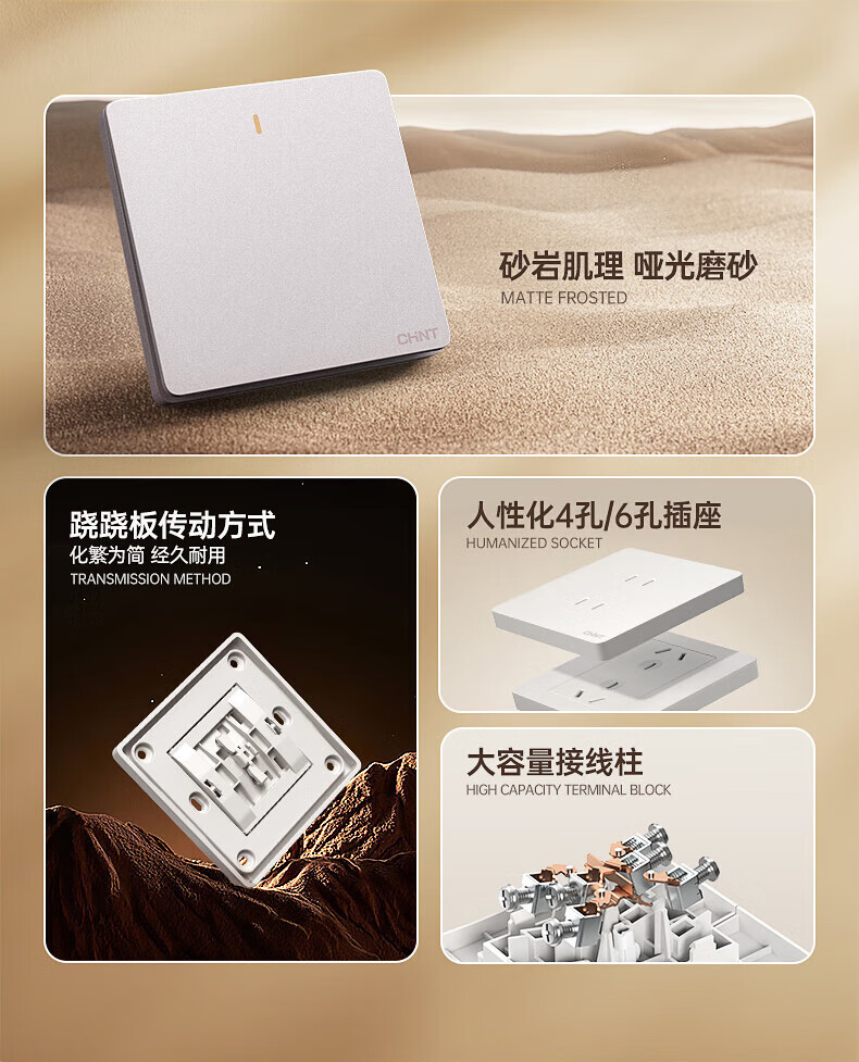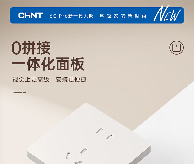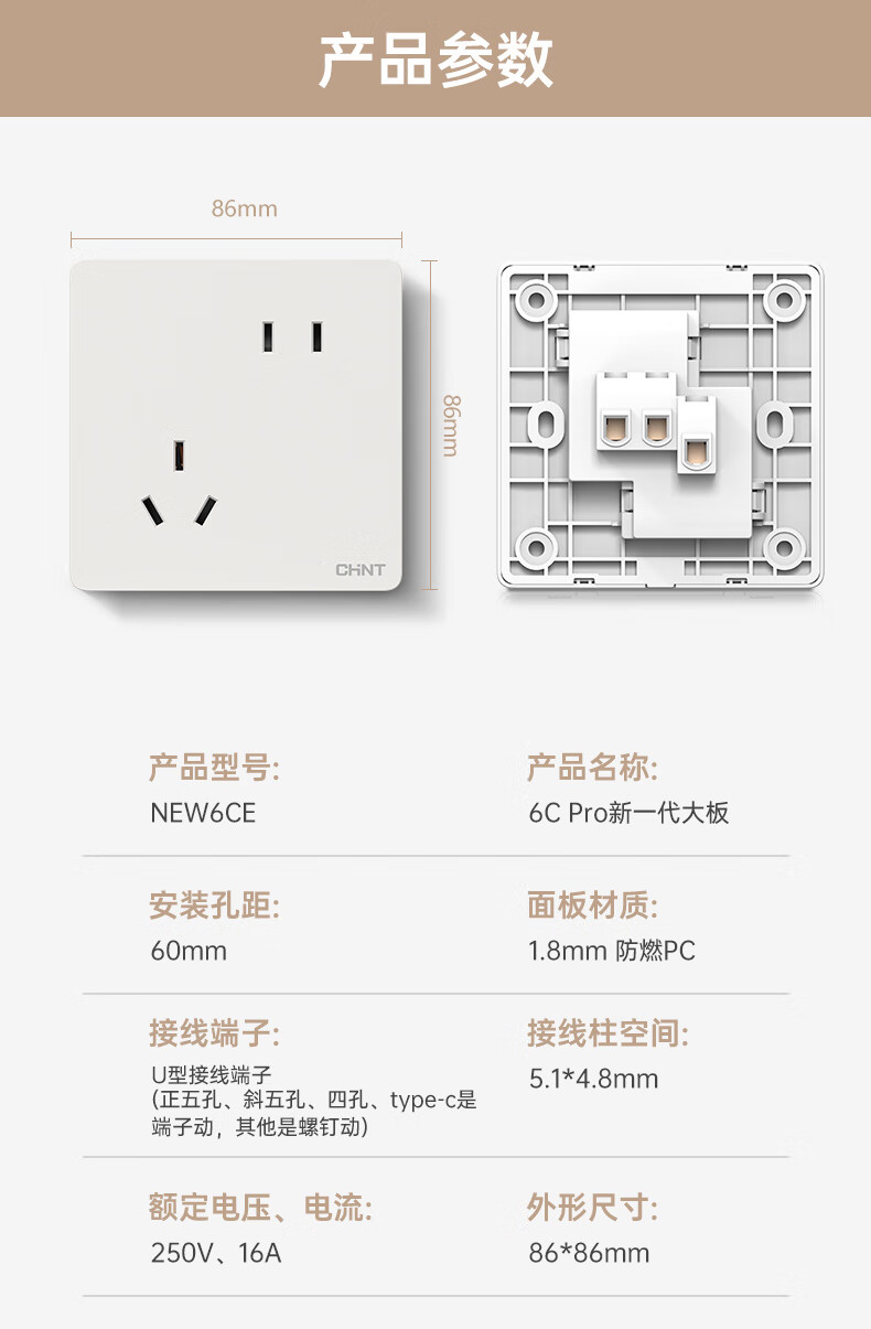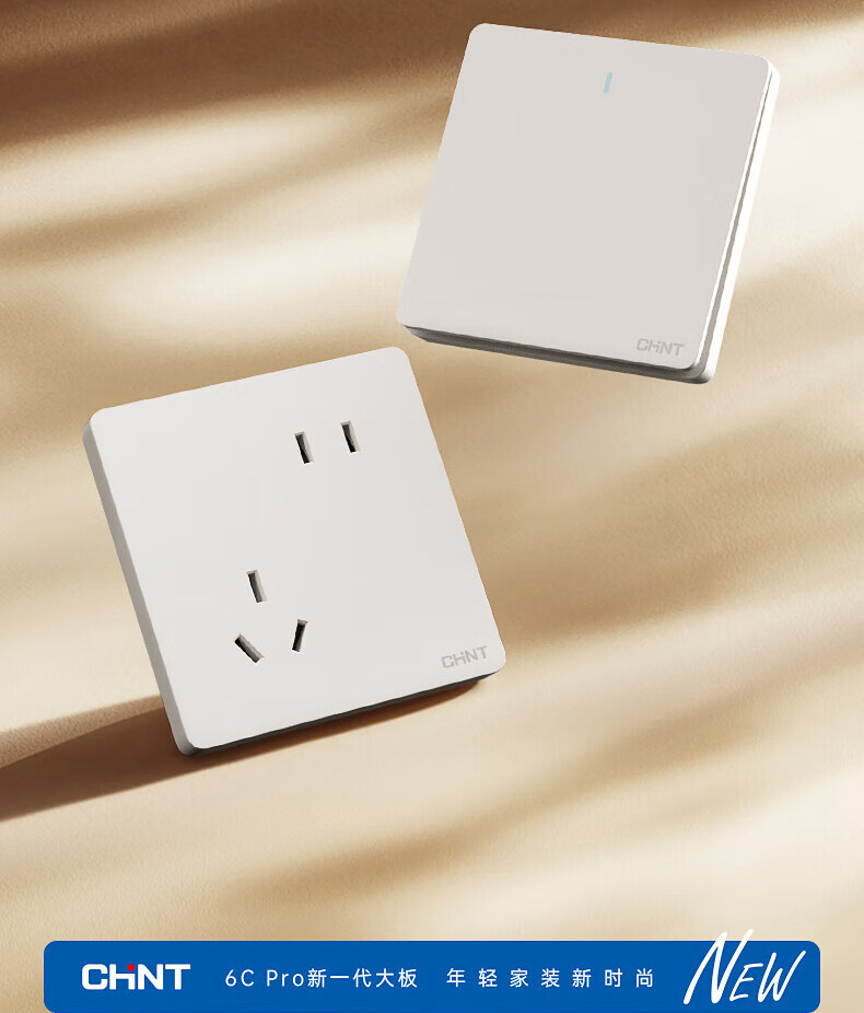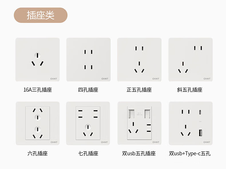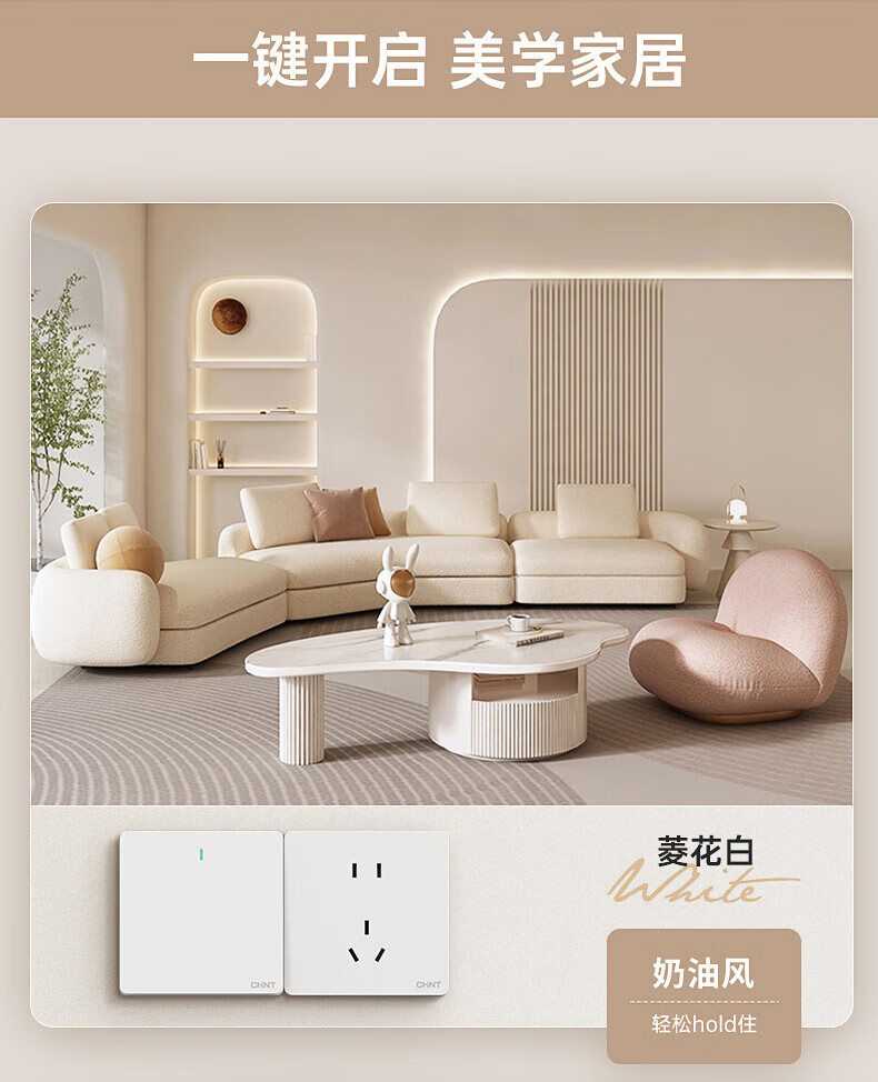 正泰(CHNT)开关插座6CE哑光磨砂大板奶油风家用86型墙壁电源插座面板 菱花白 斜五孔10A