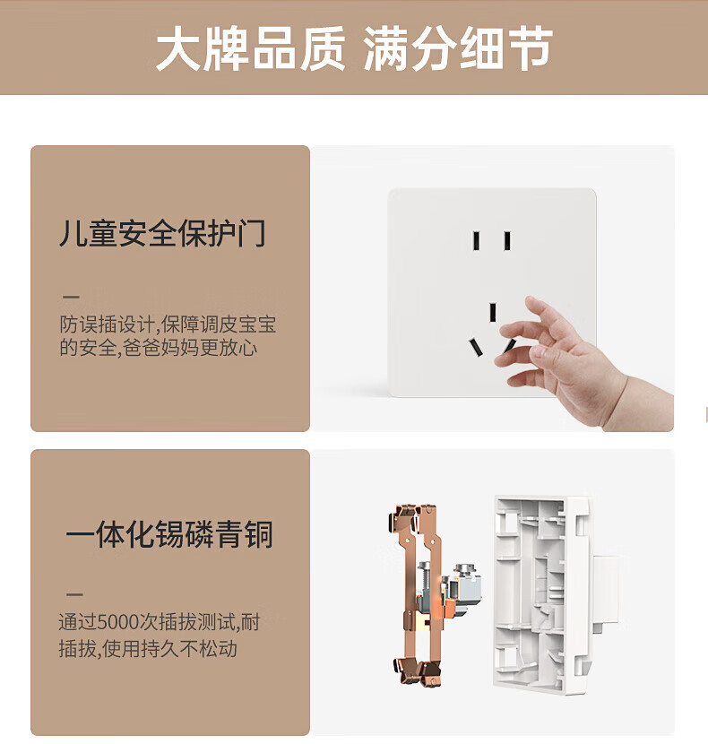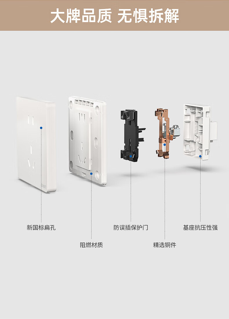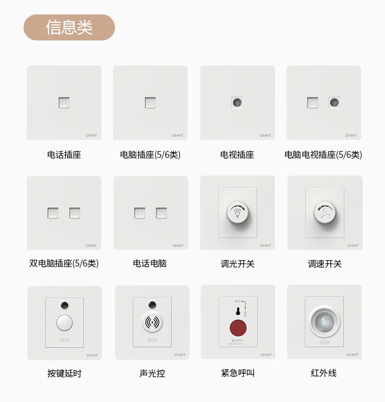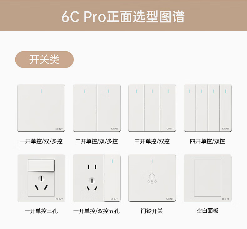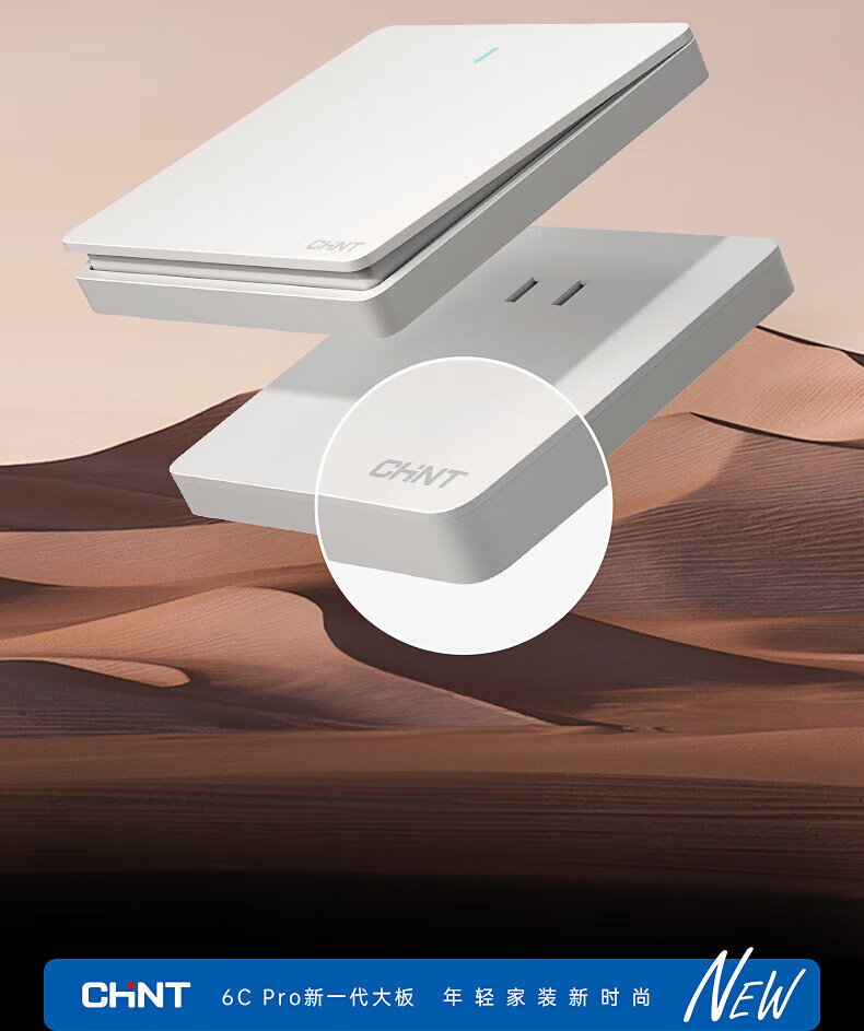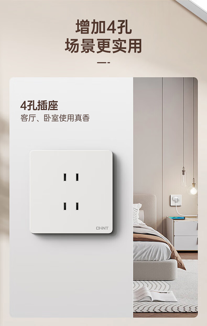 正泰(CHNT)开关插座6CE哑光磨砂大板奶油风家用86型墙壁电源插座面板 菱花白 斜五孔10A
