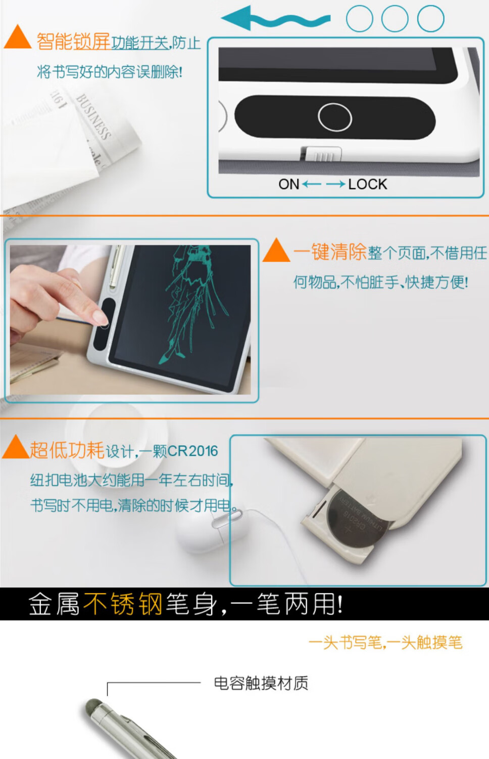 壹酷创意液晶手写板商务无纸化办公写字板成人学生草稿本纸记事本可擦画板电子笔记本小黑板聋哑人沟通神器 10英寸带黑色皮套款
