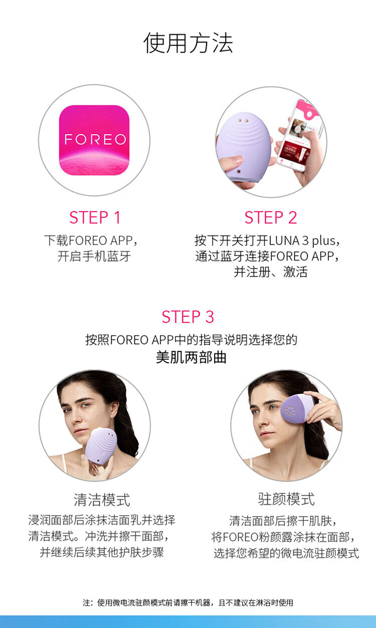 FOREO LUNA Facial Cleansing Instrument LUNA 3 plus Micro-current Facial Washing Instrument Cleans Pores and Facial Washing Device Women's Holiday Gift LUNA 3 Plus Purple