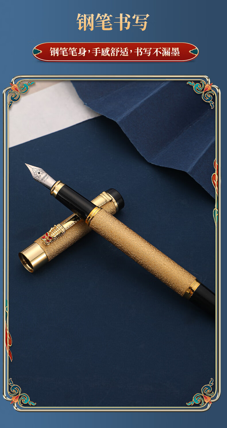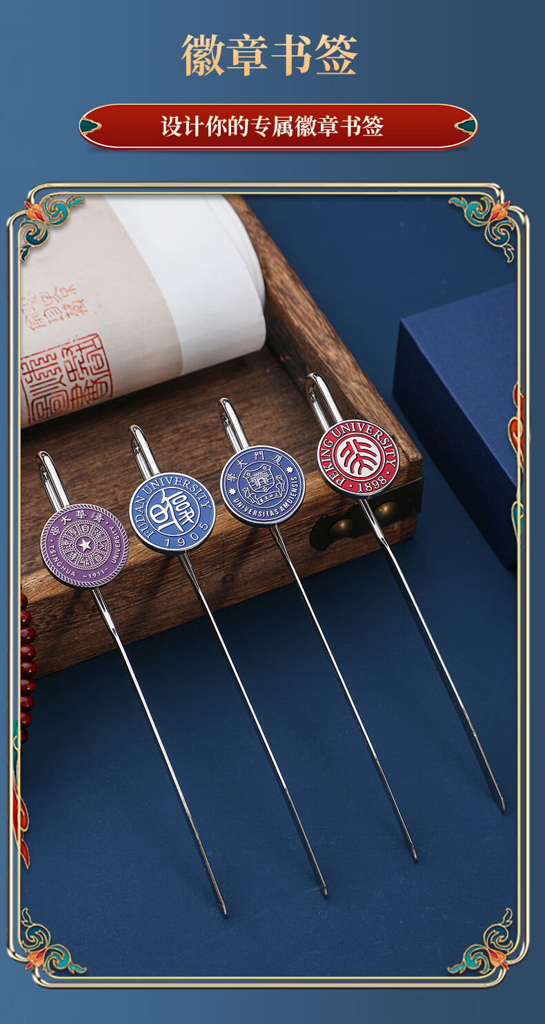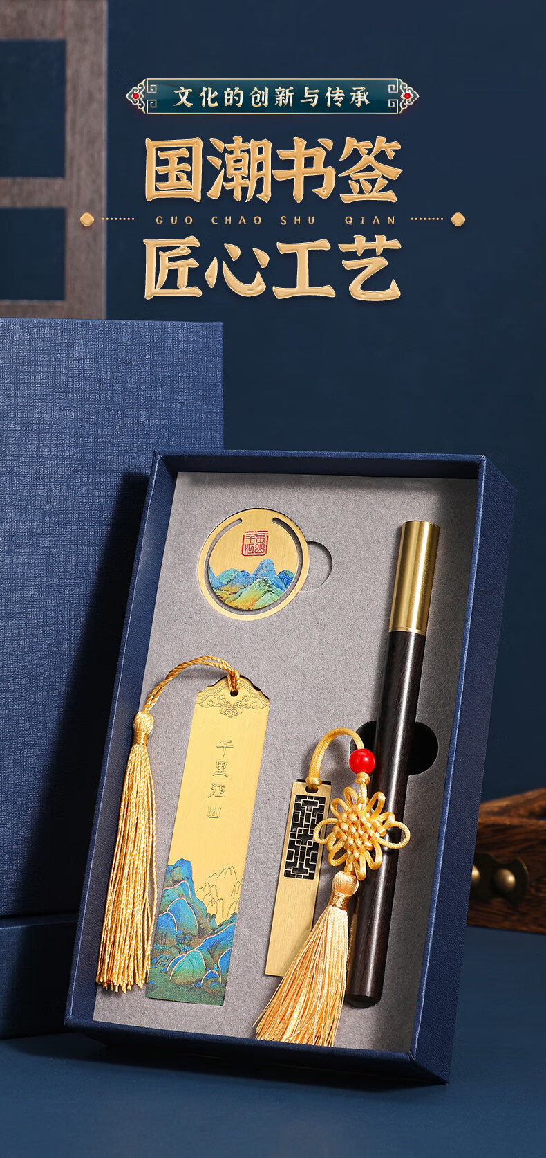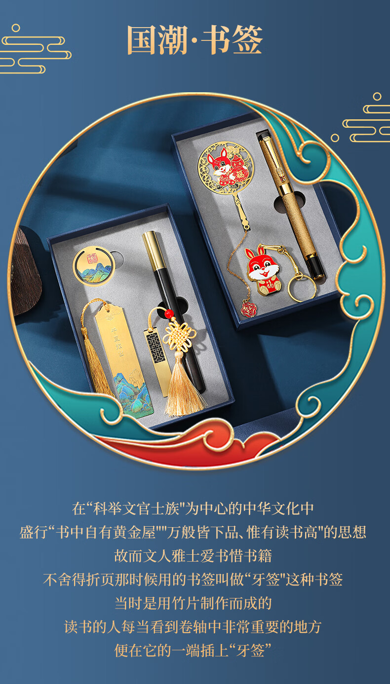 宏量钢笔礼盒套装生日礼物纪念品U盘书签三四年级小学生练字教师节毕业礼物开业活动礼品免费定制名字 2件套蓝礼盒【黄铜江山图书签+金色龙头钢笔】