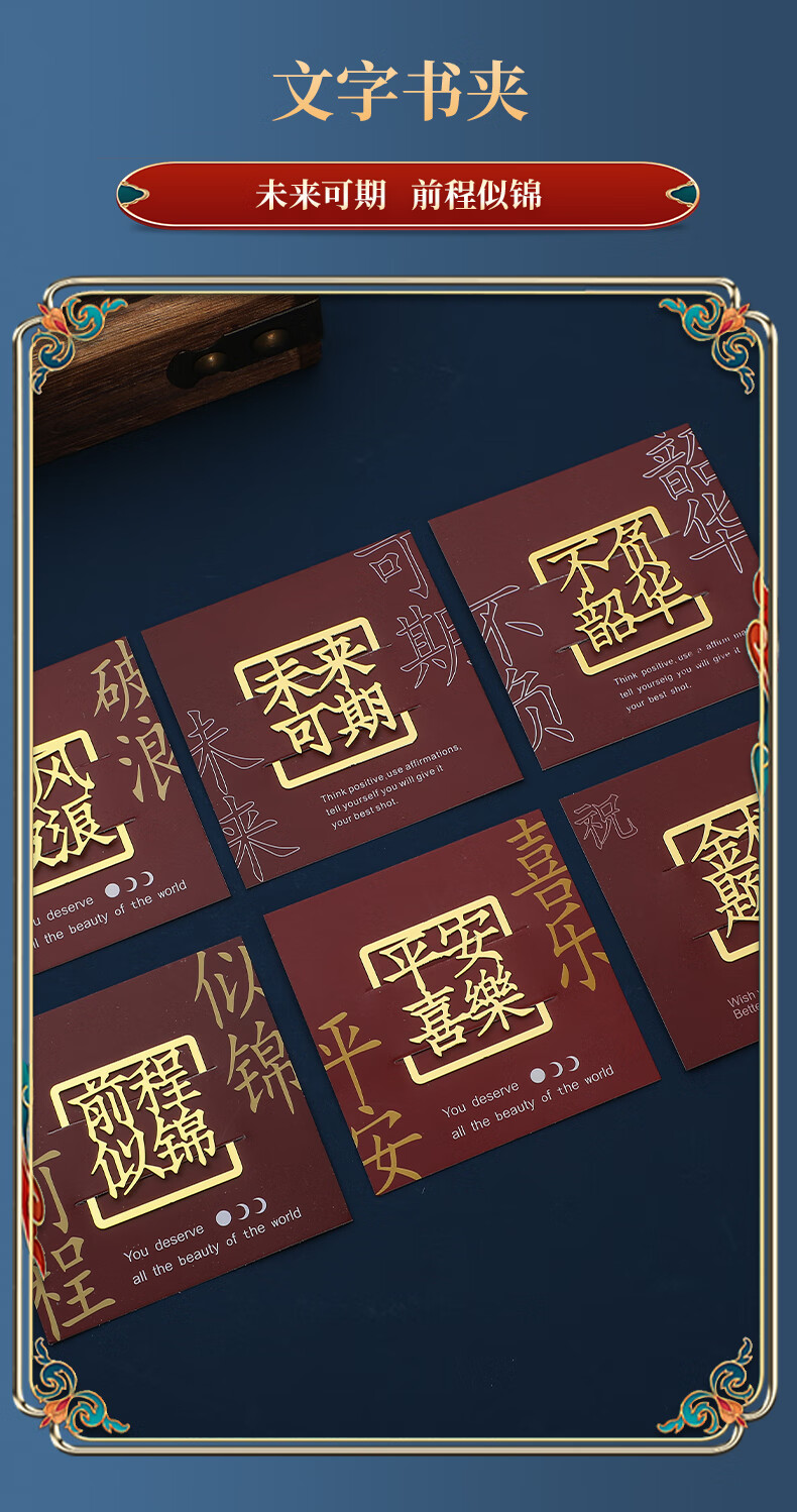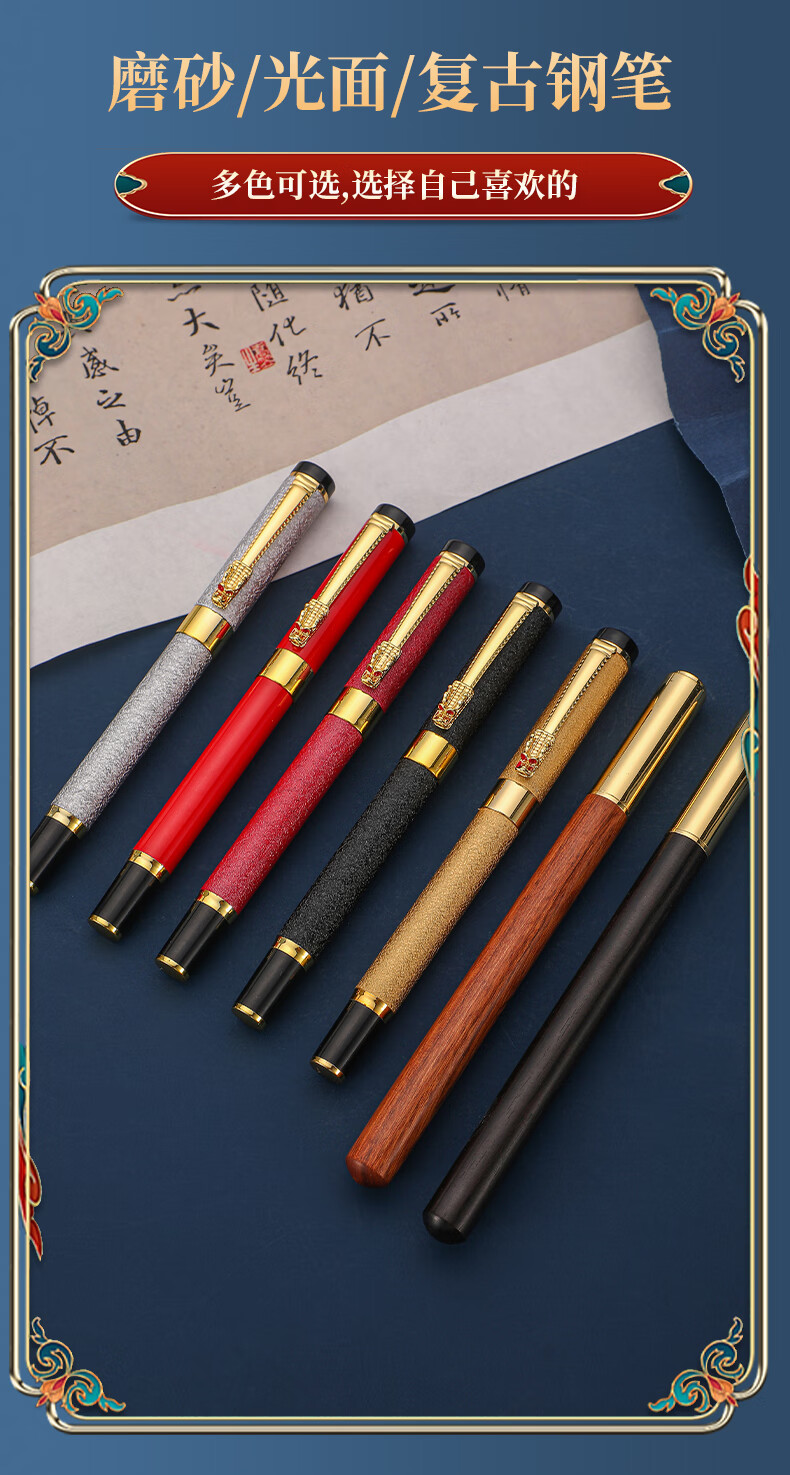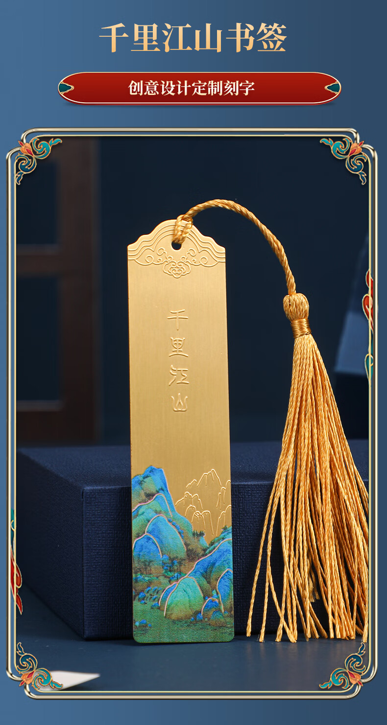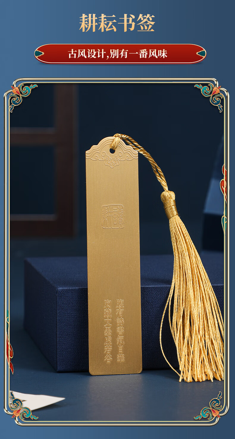 宏量钢笔礼盒套装生日礼物纪念品U盘书签三四年级小学生练字教师节毕业礼物开业活动礼品免费定制名字 2件套蓝礼盒【黄铜江山图书签+金色龙头钢笔】
