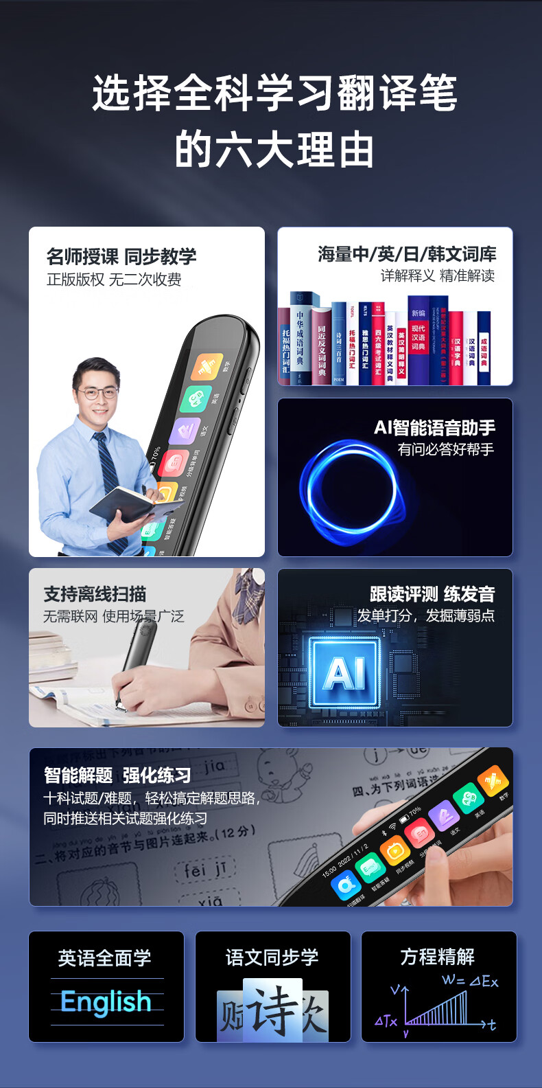 机适用英语点读笔通用扫描多功能智能学习翻译笔词典 全科版512G扫描解题解析离线扫读