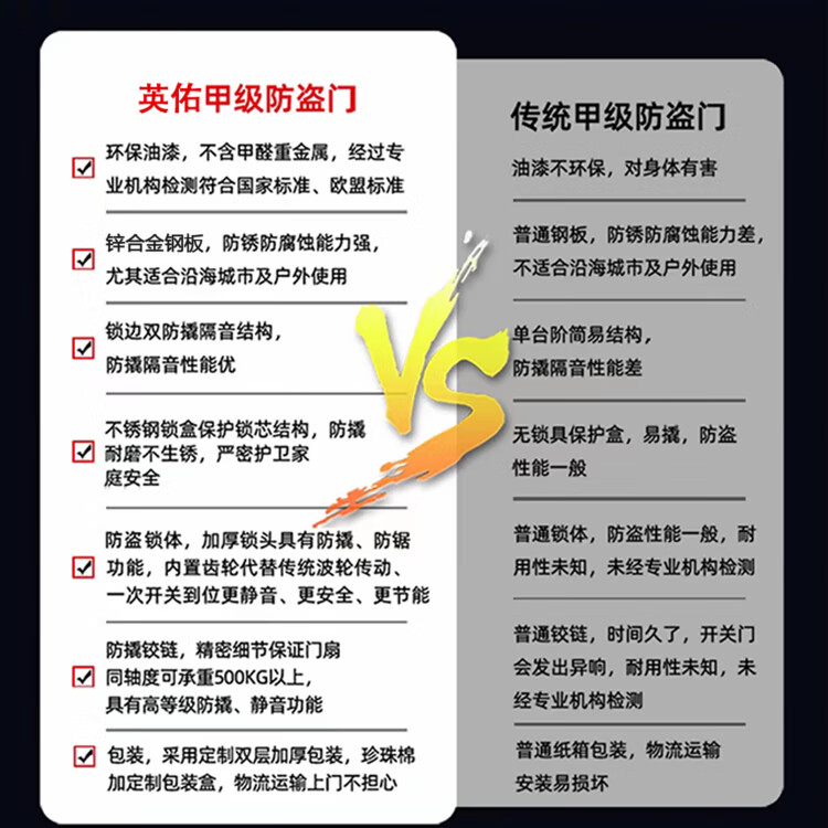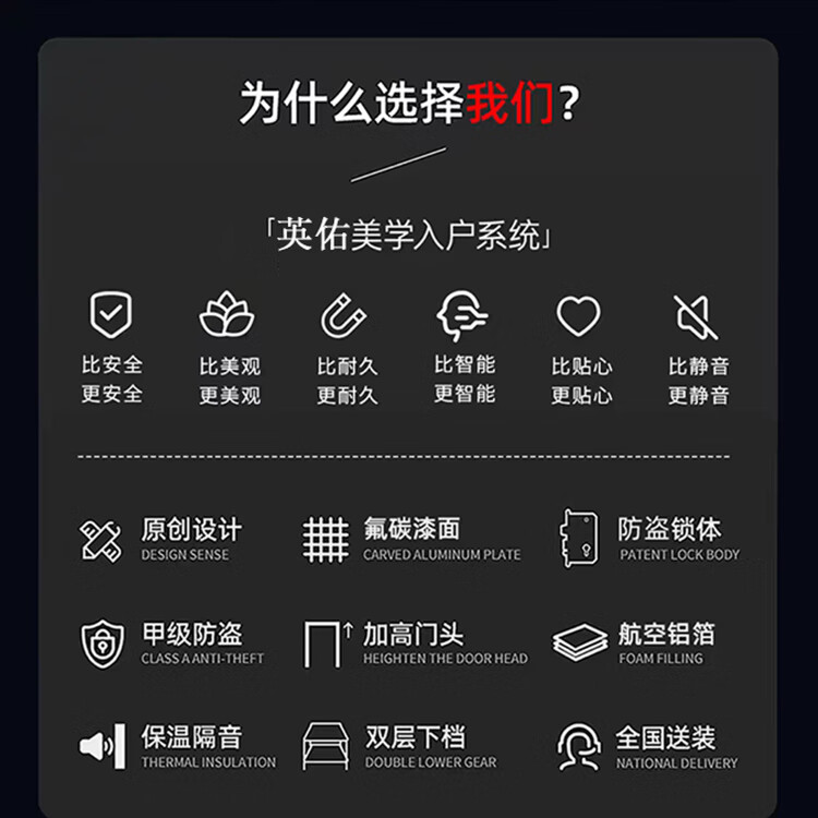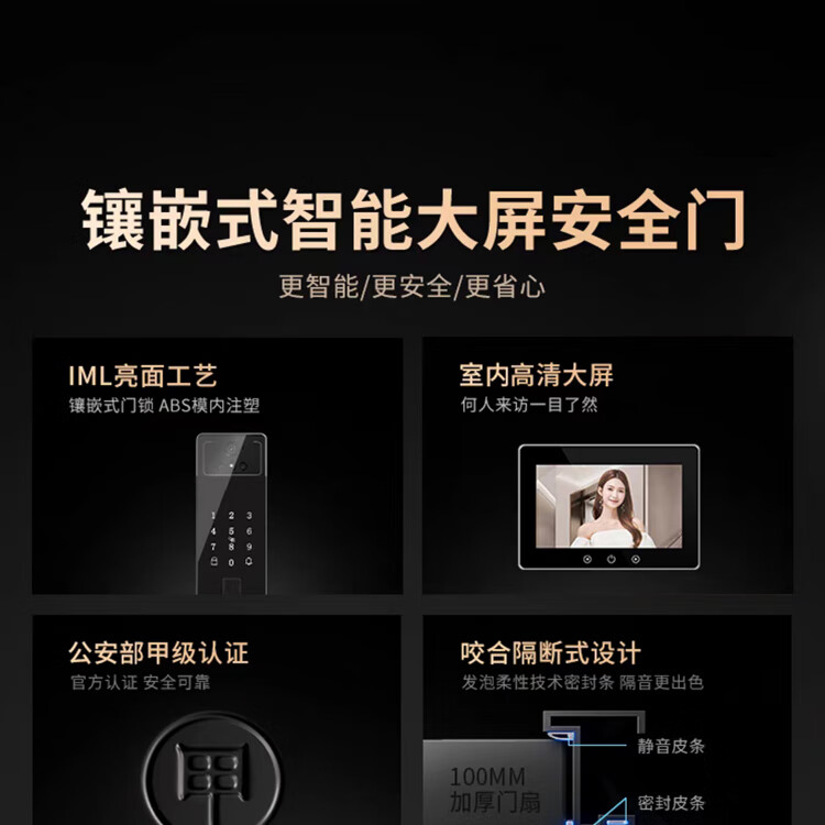英佑门业甲级防盗门家用入户门安全门进户门暗装铰链加高门楣智能门锁 Y6003内嵌式大屏指纹锁 2050*960单门