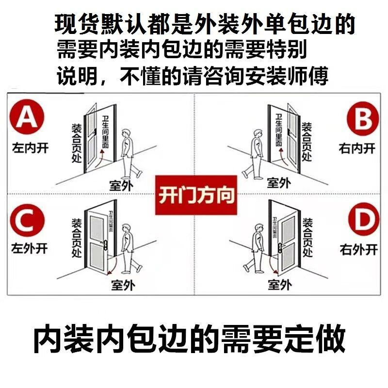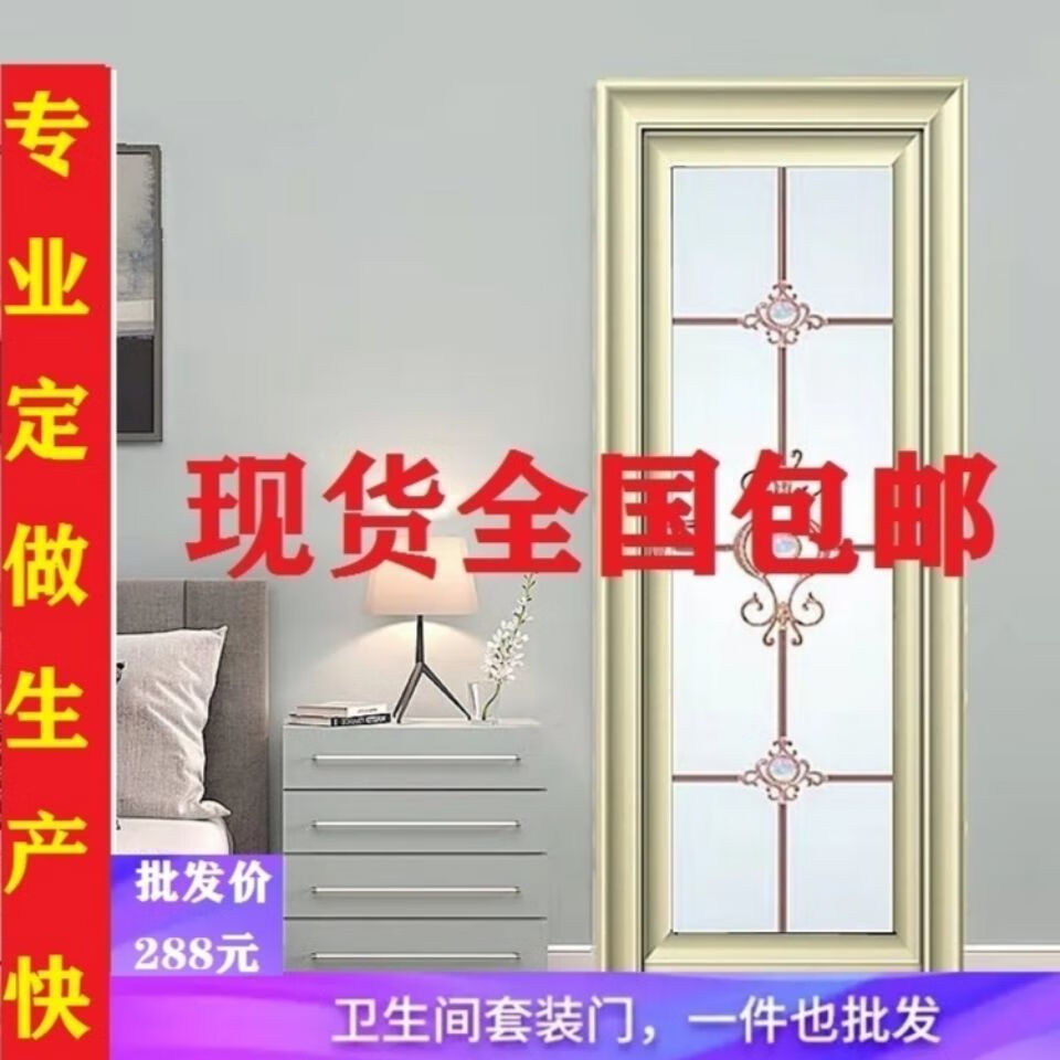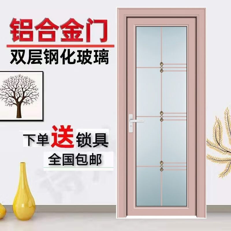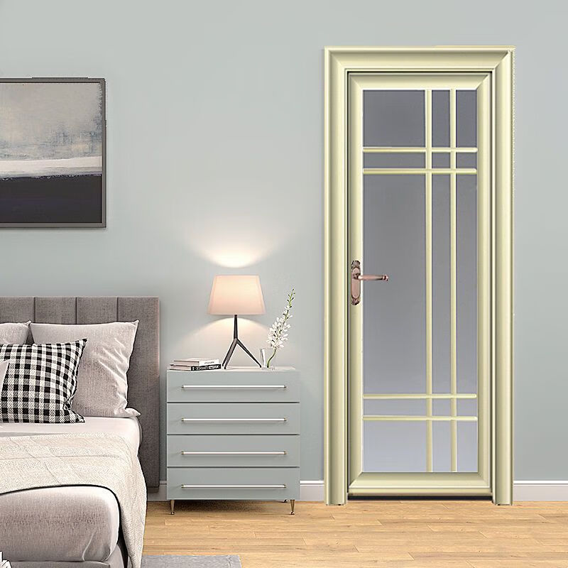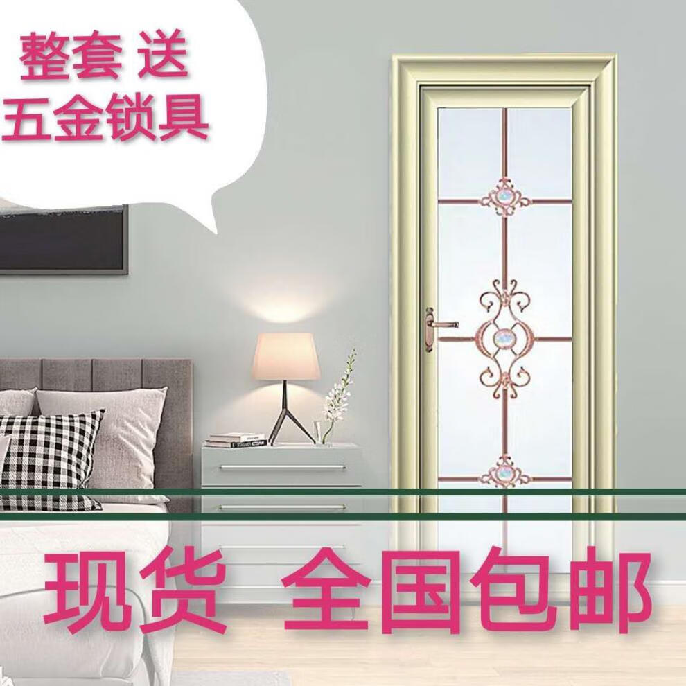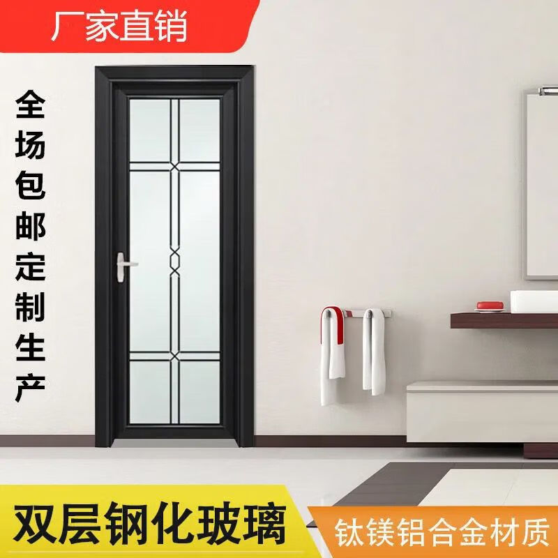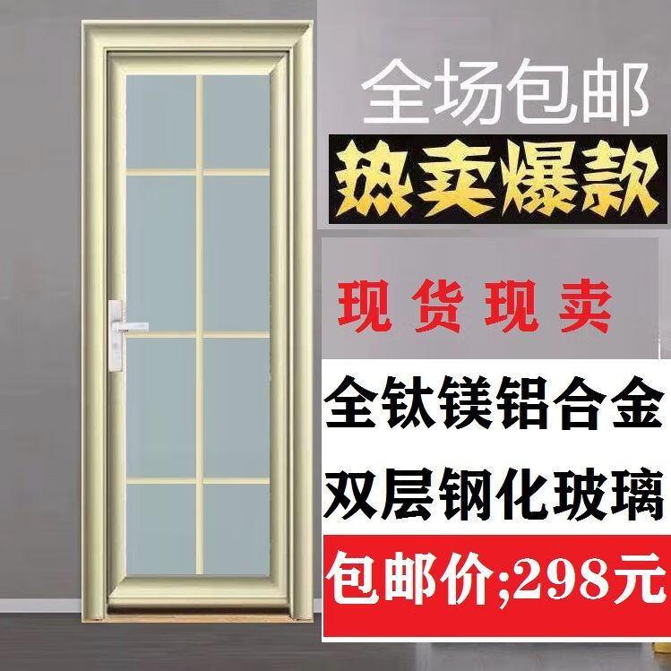 Qinkai outer single edge titanium magnesium aluminum alloy toilet and bathroom double tempered glass door toilet kitchen bathroom flat door champagne color A left inner opening + door handle outside height 1.96x width 0.67
