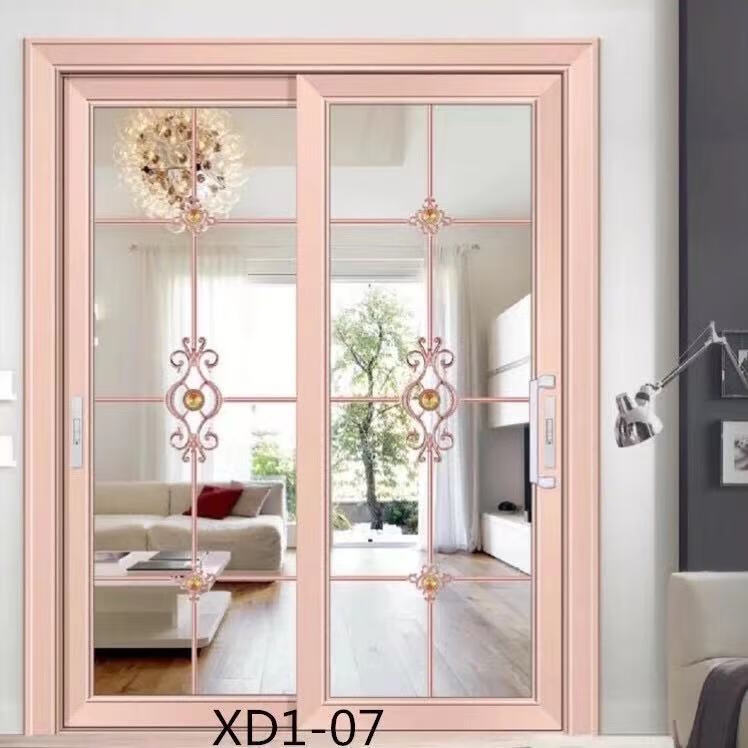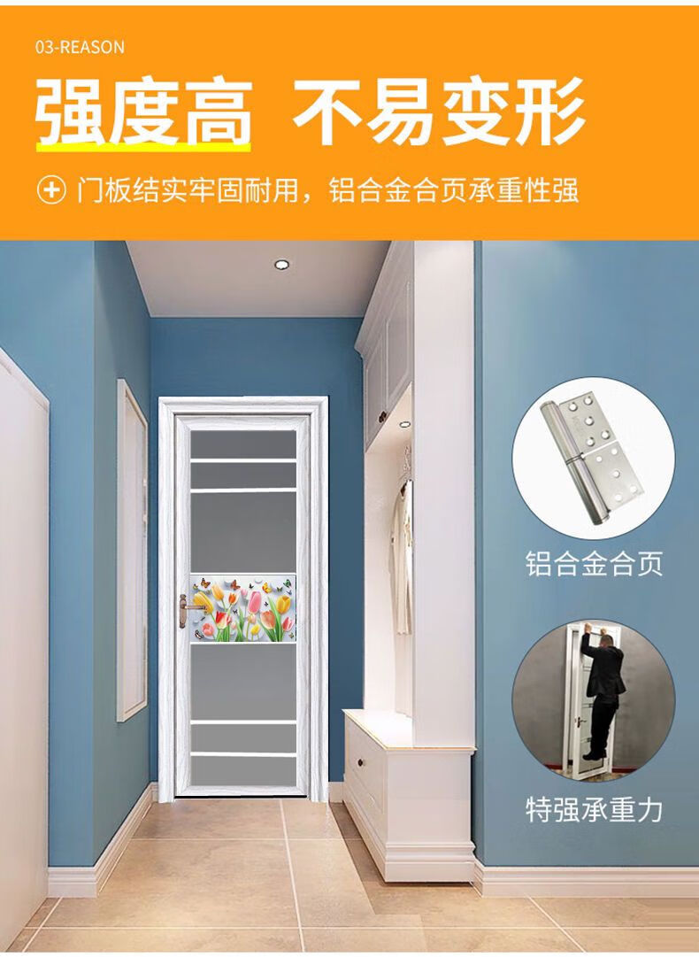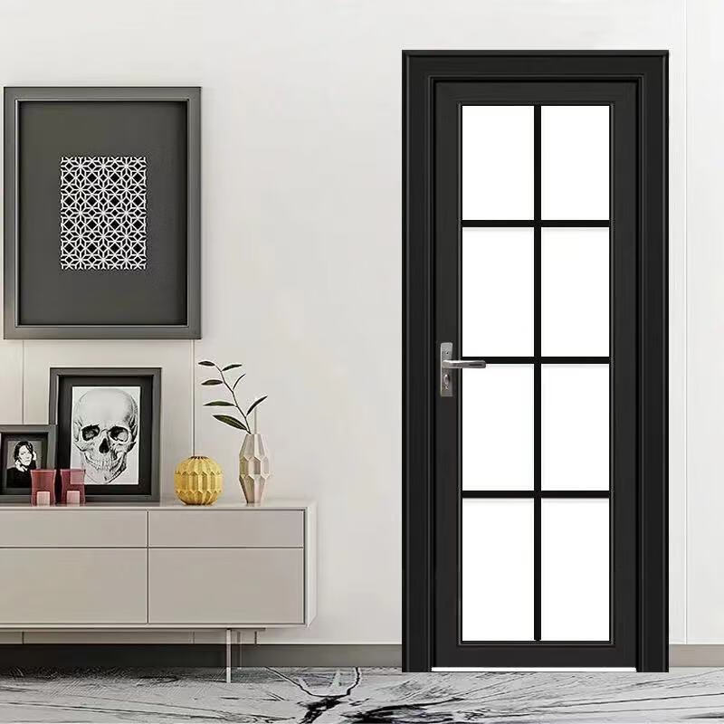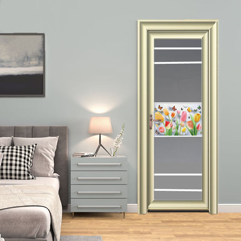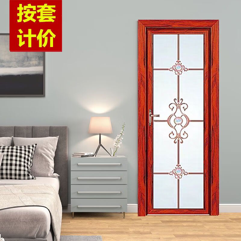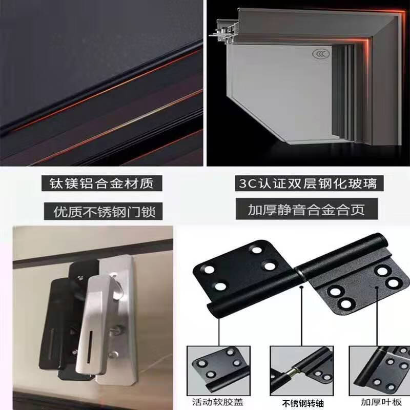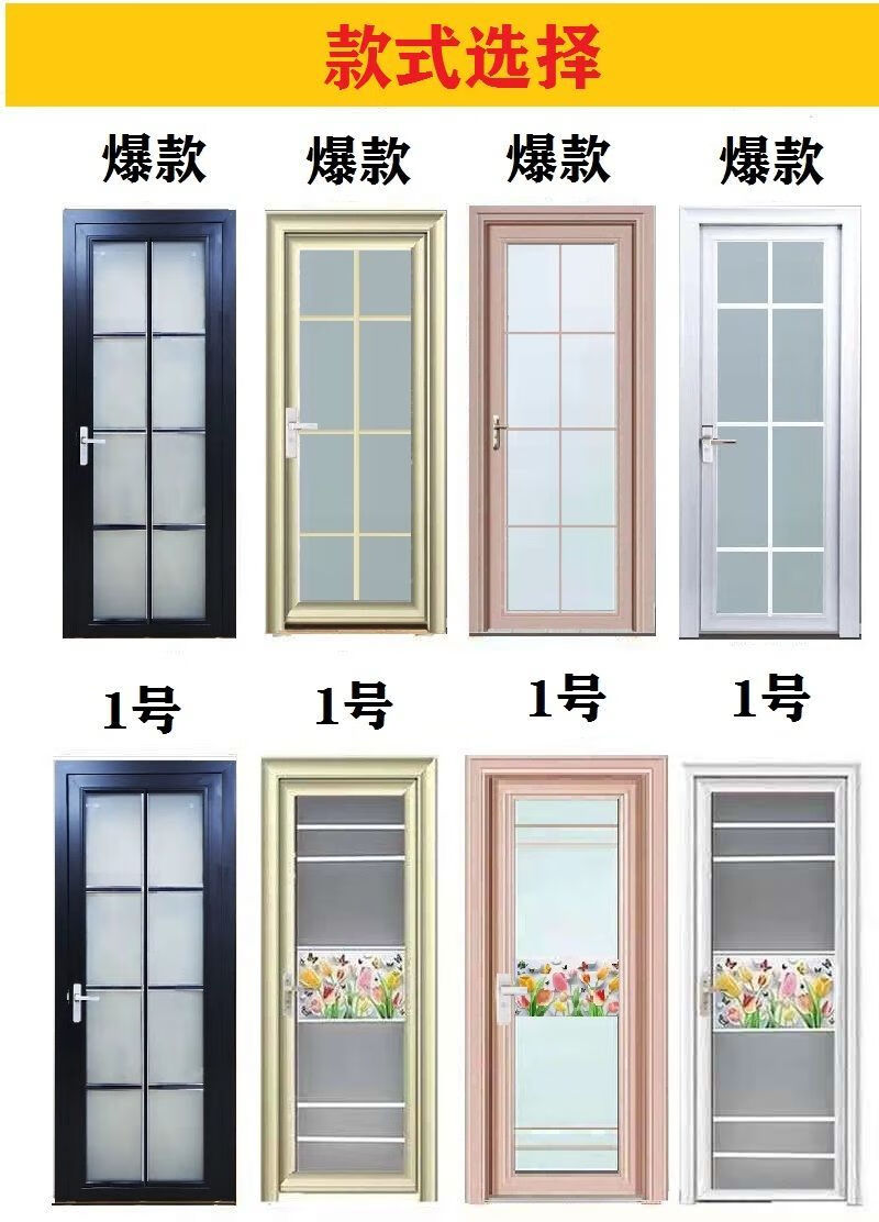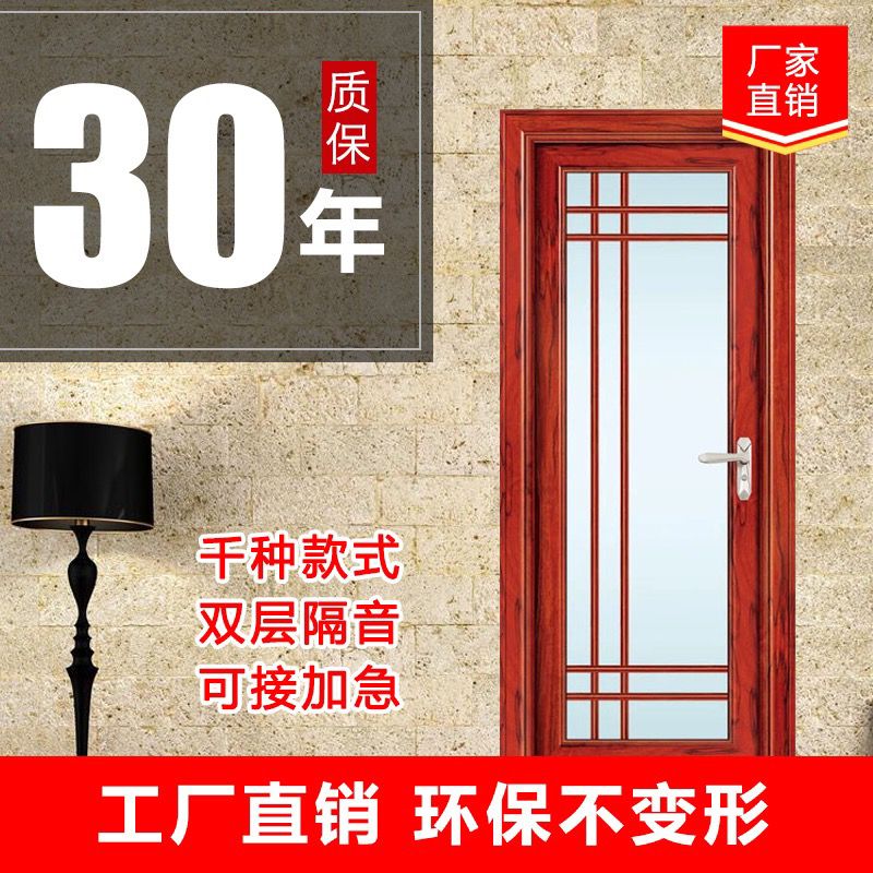 Qinkai outer single edge titanium magnesium aluminum alloy toilet and bathroom double tempered glass door toilet kitchen bathroom flat door champagne color A left inner opening + door handle outside height 1.96x width 0.67