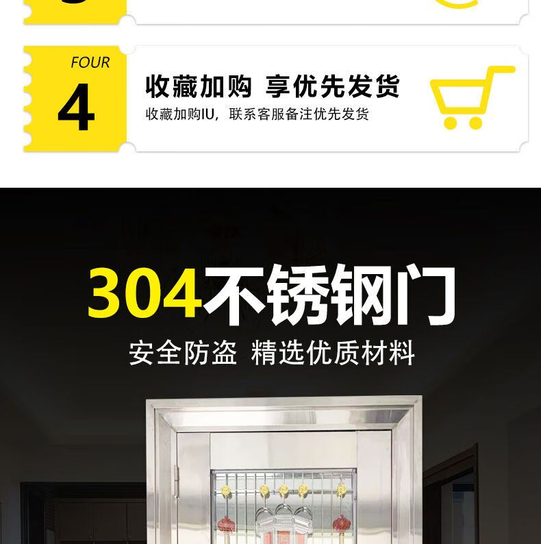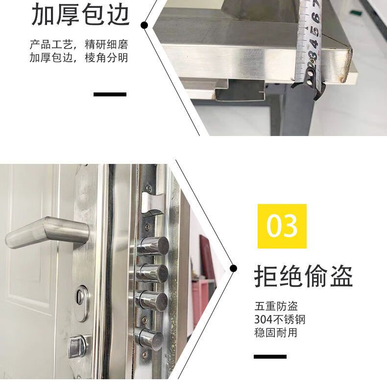 美克杰304钢门单门防盗门家用乡村农村入户门大门室内门工程进户门 304不锈钢 860*2050外包内左(右锁)