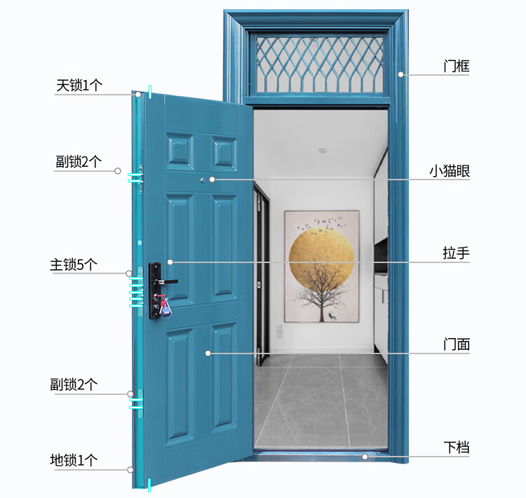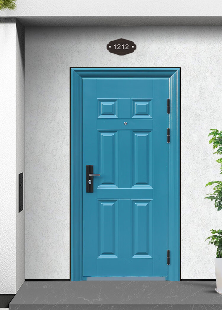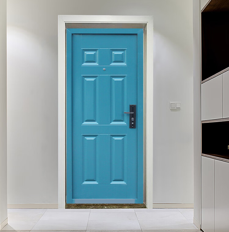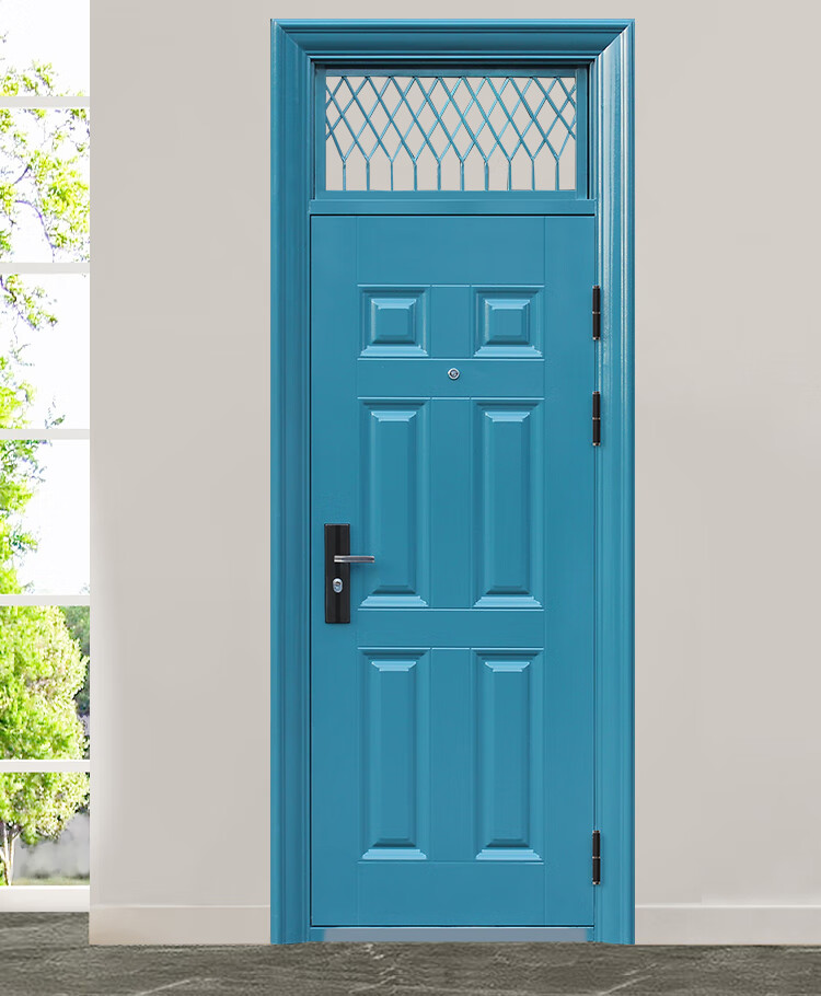 CLCEY anti-theft door home entrance door with transom window for outdoor ventilation steel parent door blue school student classroom dormitory door 1970*860 no transom window