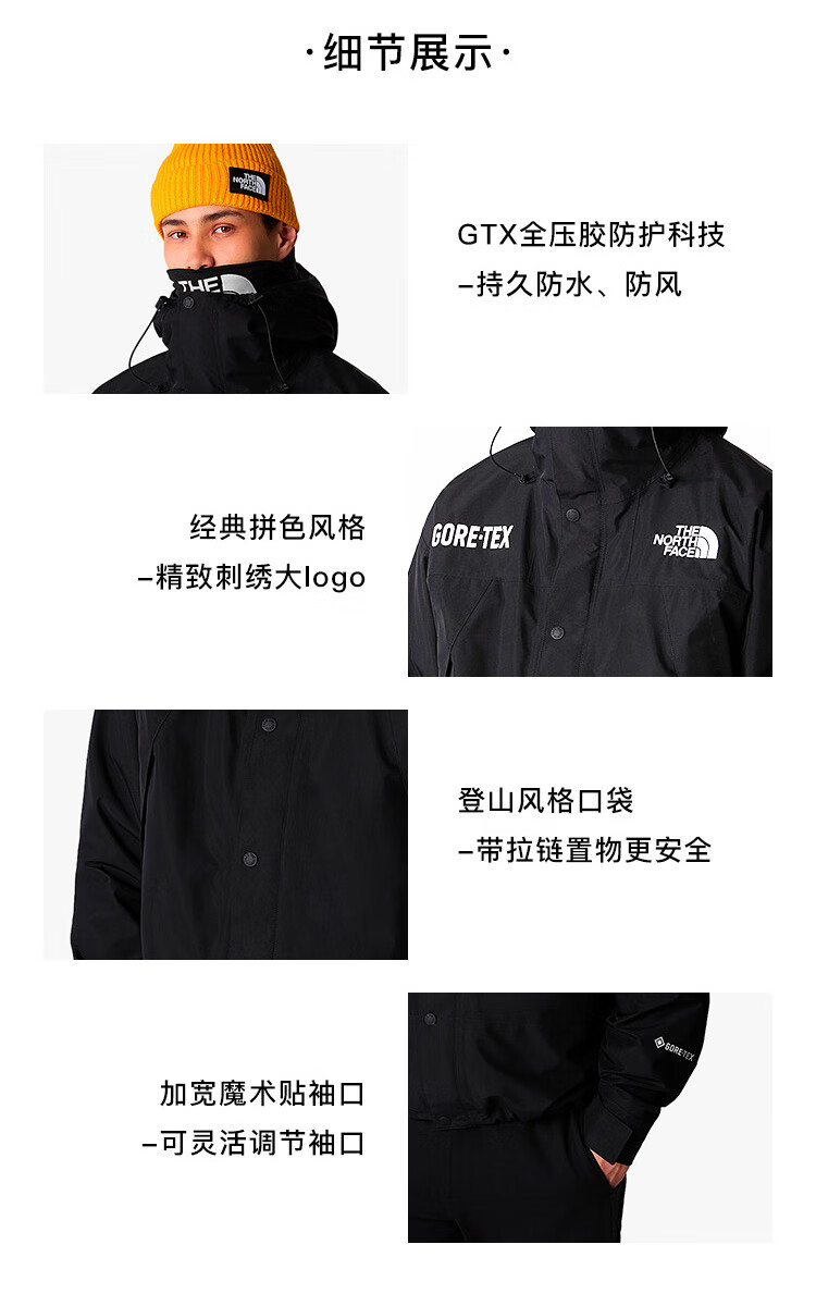 North Face American version of men's Mountain high-end hard shell jacket GTX waterproof breathable autumn and winter outdoor windproof warm jacket JK3-Black M