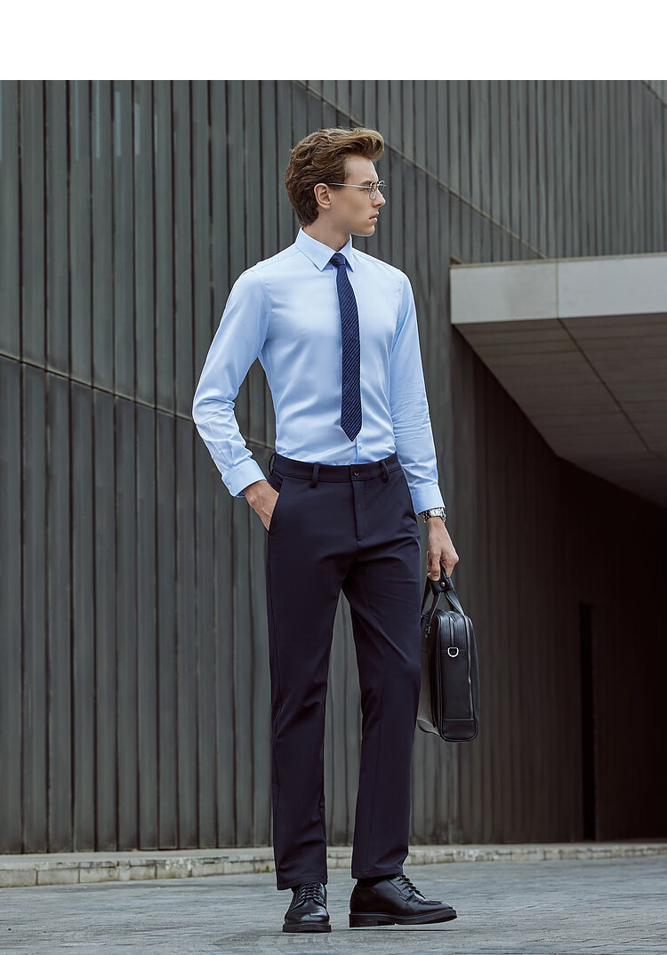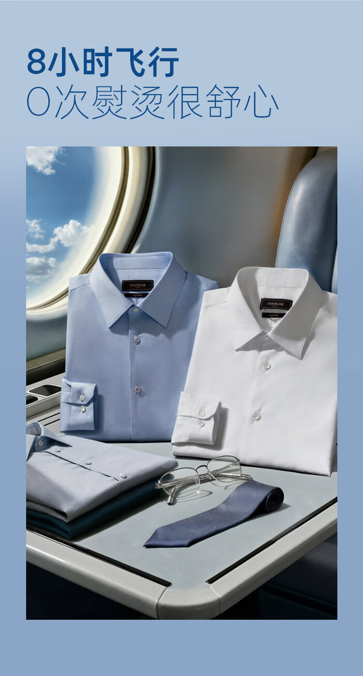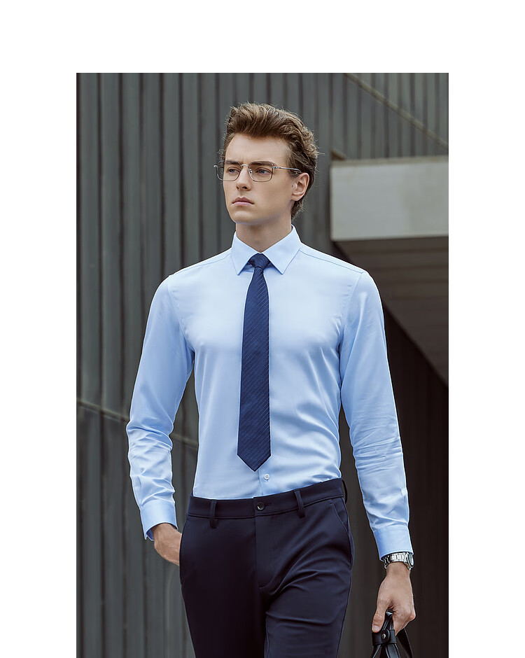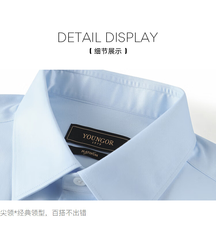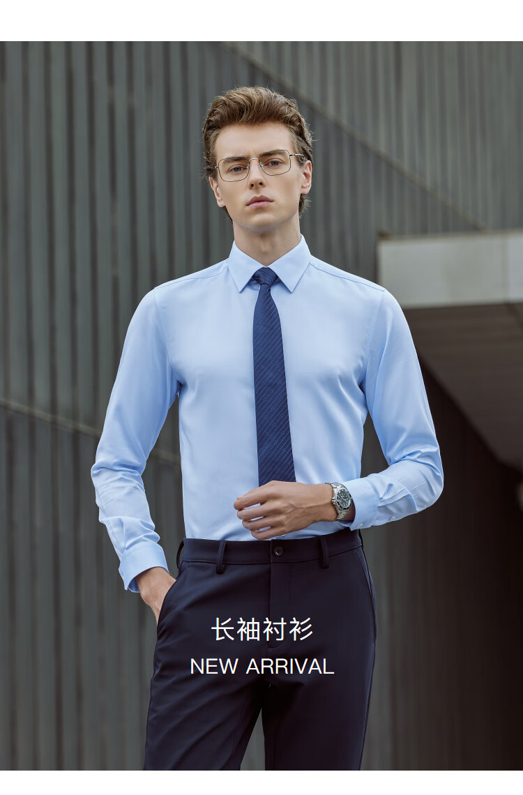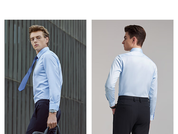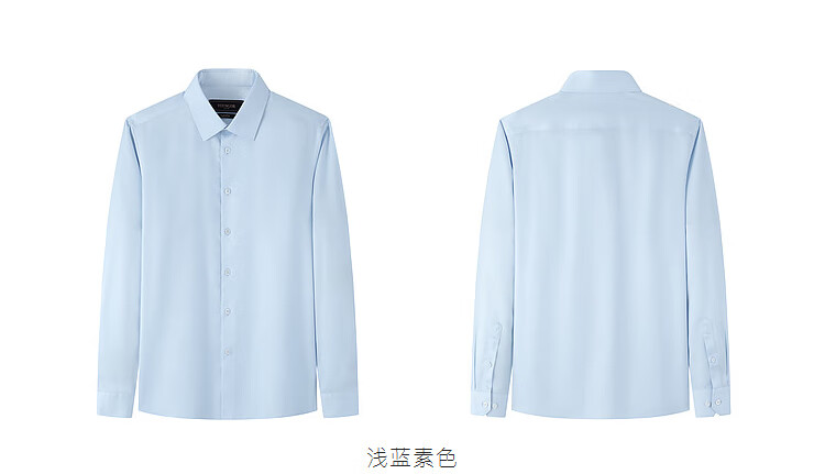 雅戈尔(YOUNGOR)长袖衬衫男士全棉200支面料免烫衬衫经典素色衬衫抗皱平整 浅蓝素色 41