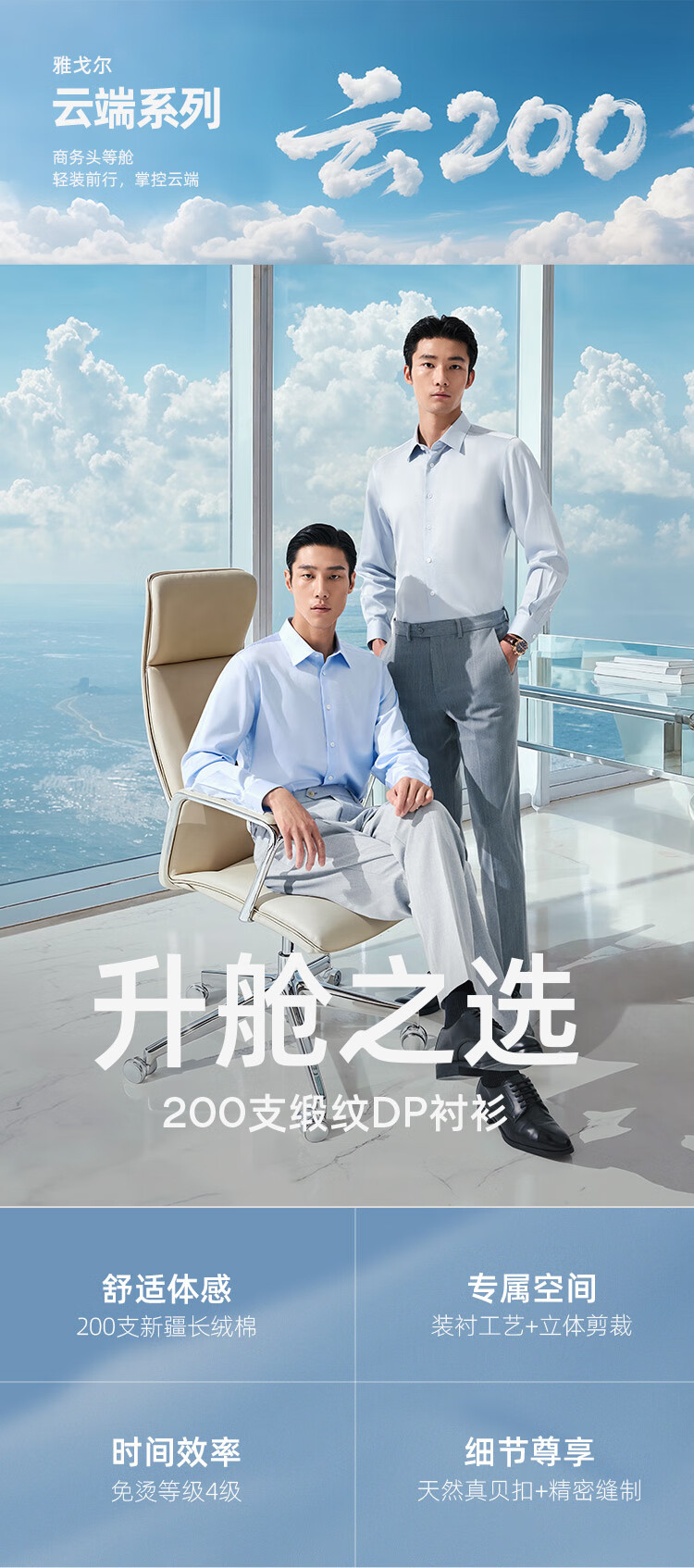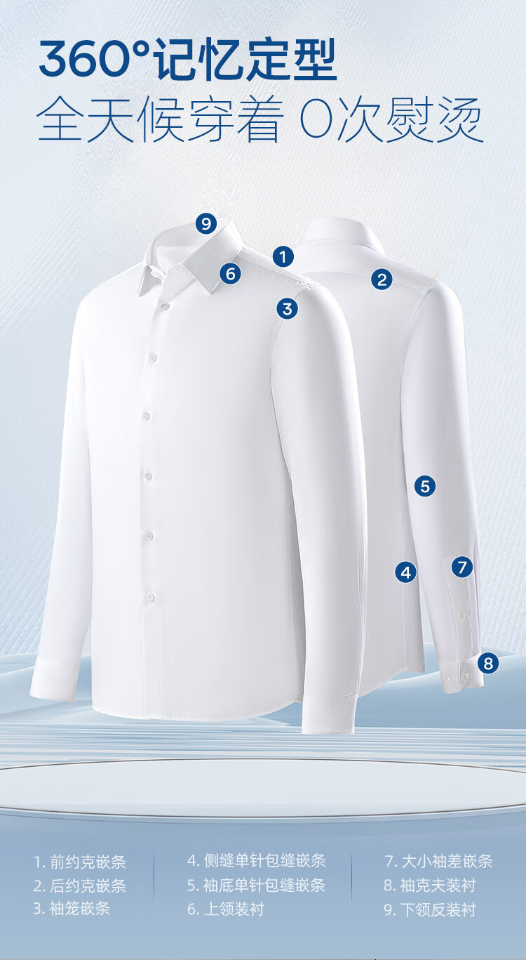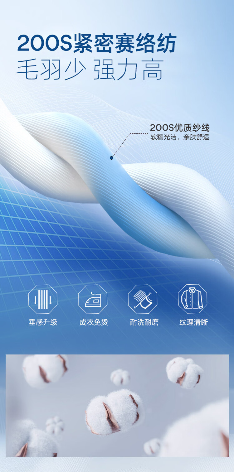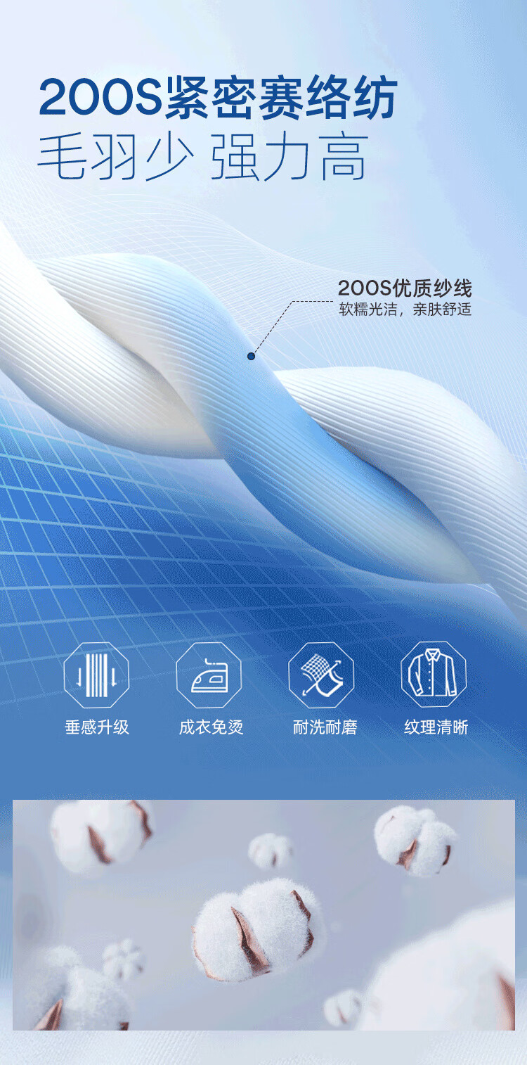 雅戈尔(YOUNGOR)长袖衬衫男士全棉200支面料免烫衬衫经典素色衬衫抗皱平整 浅蓝素色 41