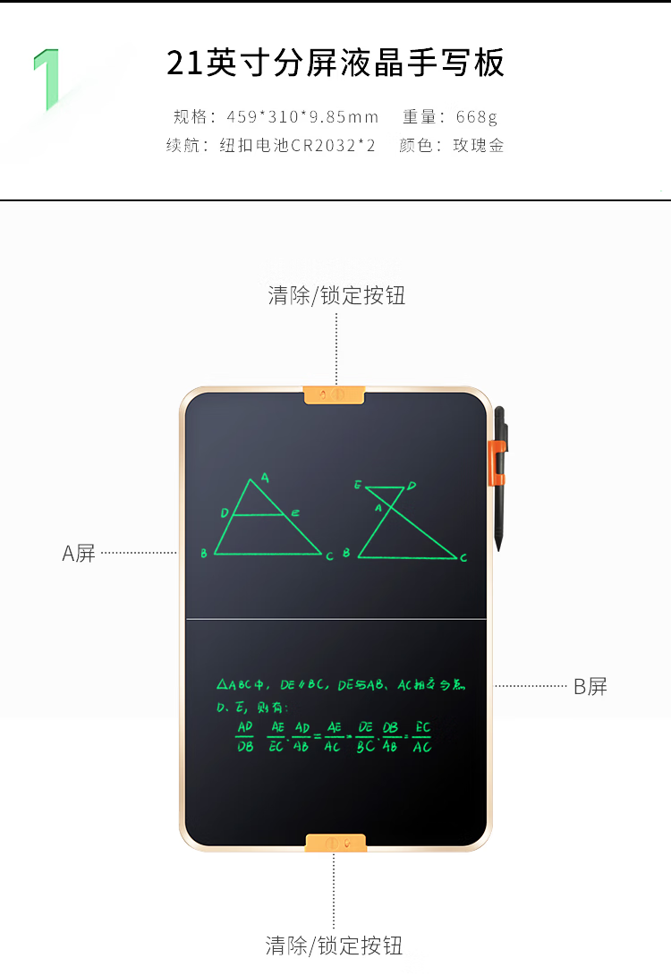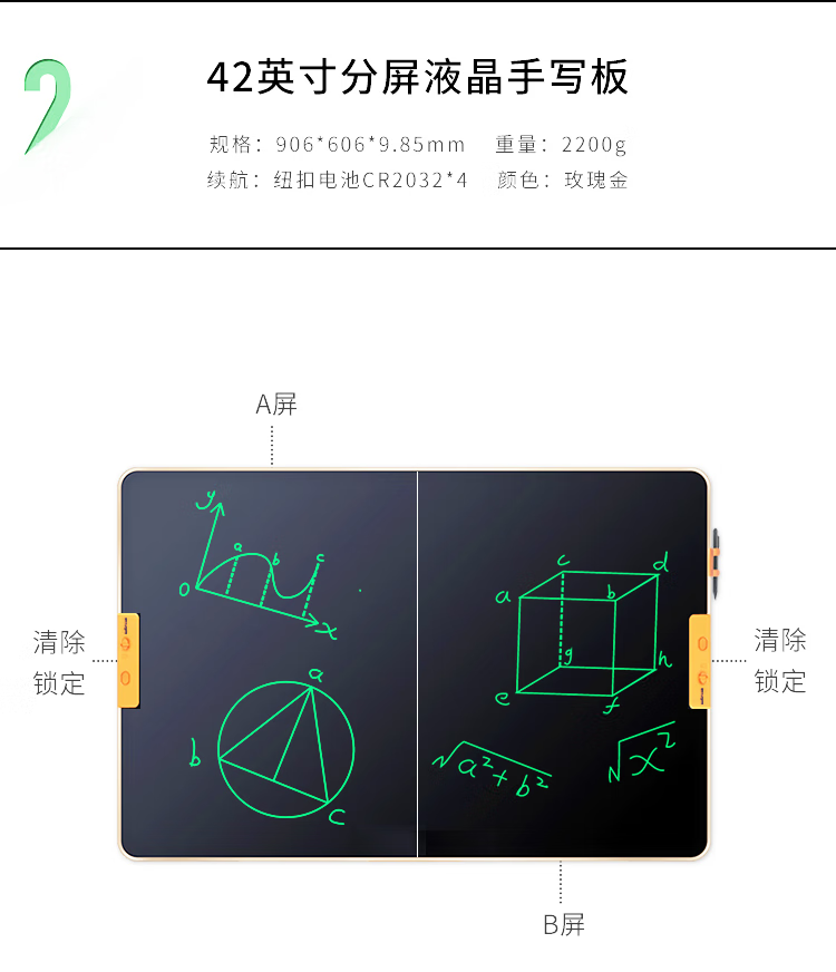 唯酷(wicue)21英寸/42英寸分屏液晶手写板写字板电子黑板白板高亮窄边大尺寸家用上课教学会议培训办公直播 42英寸整屏清除/充电款