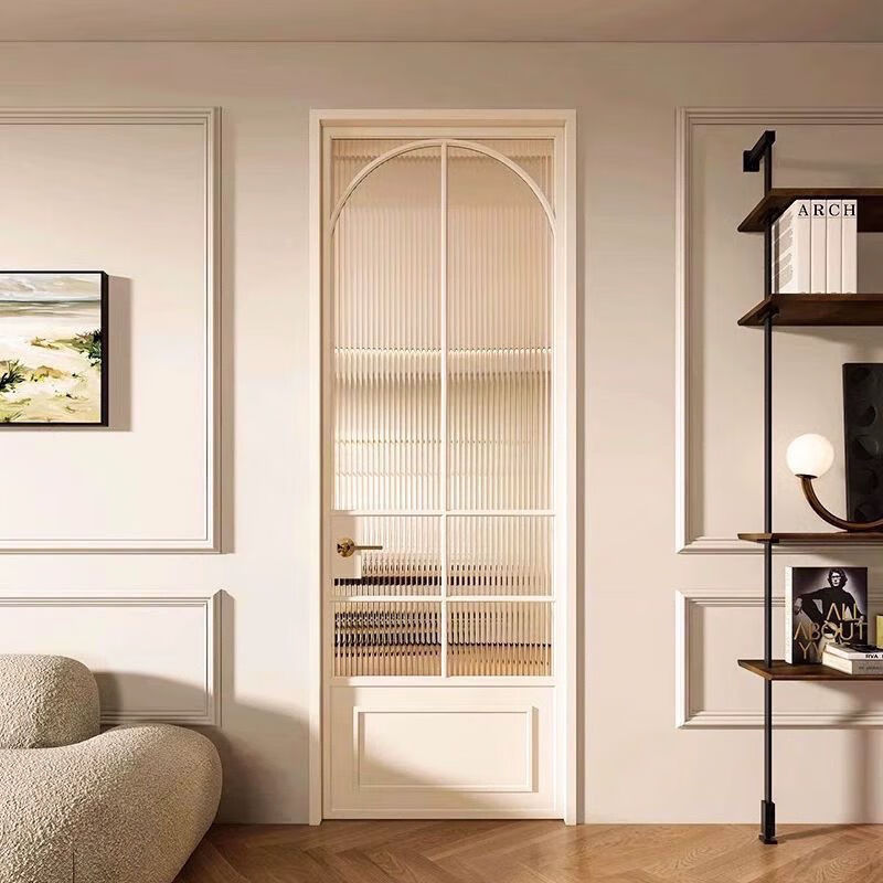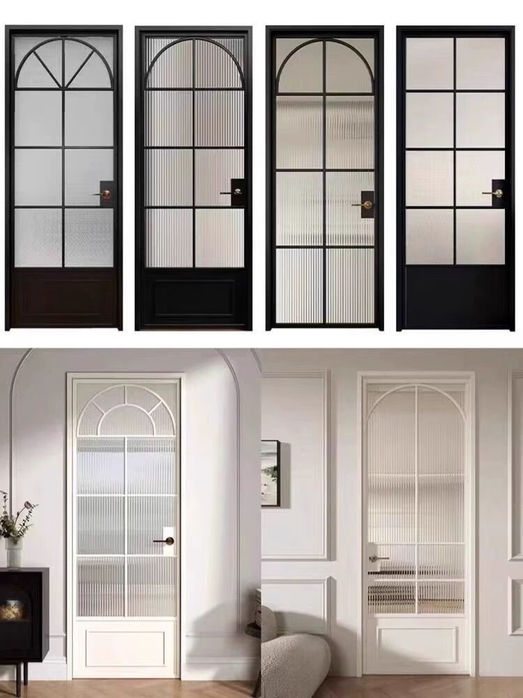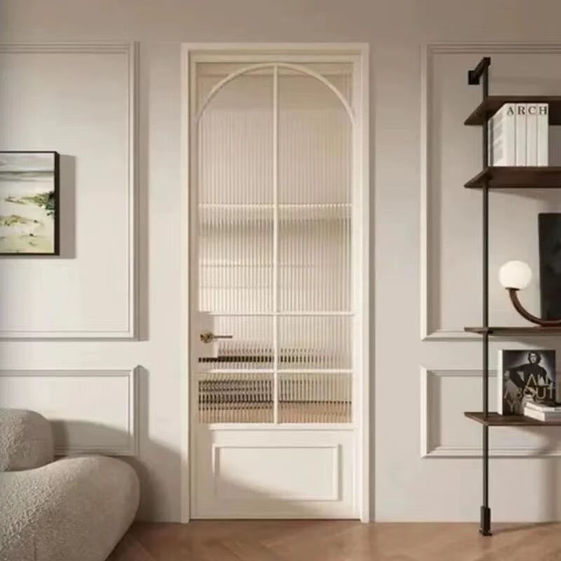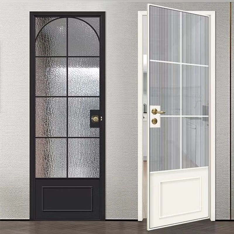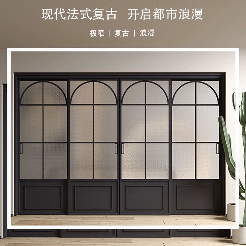 勤凯法式复古厕所门推拉门合金极窄边滑门玻璃门隔断移门卫生间厨房门 法式复古单包厕所门 珐琅白
