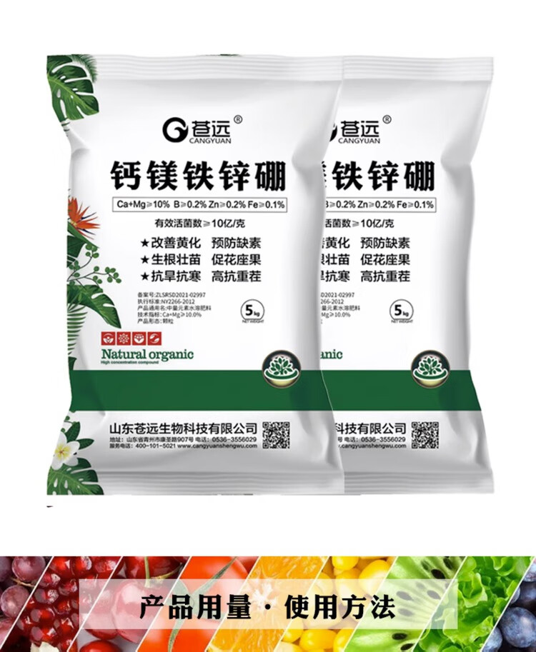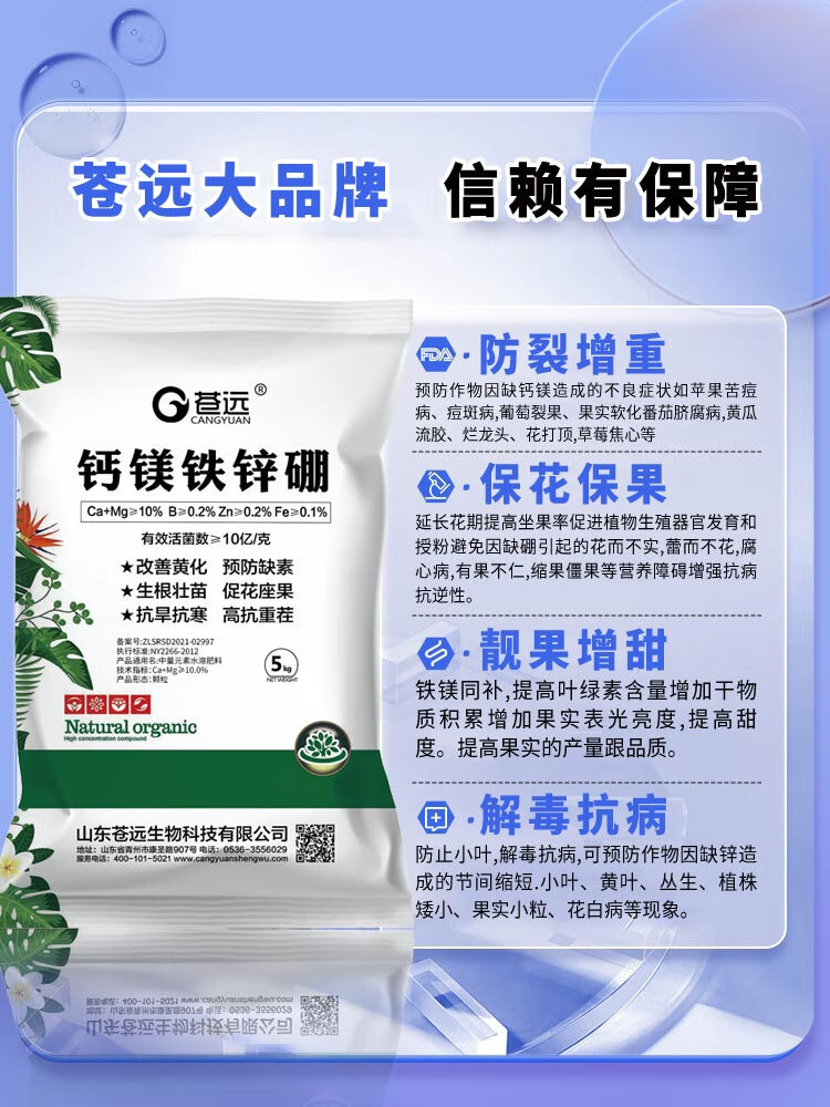 Calcium, magnesium, boron, zinc, iron, trace elements, water-soluble fertilizer, boron, zinc, iron, magnesium, potassium, calcium fertilizer, organic granular fertilizer for rooting and seedling strengthening, 5kg*1 bag