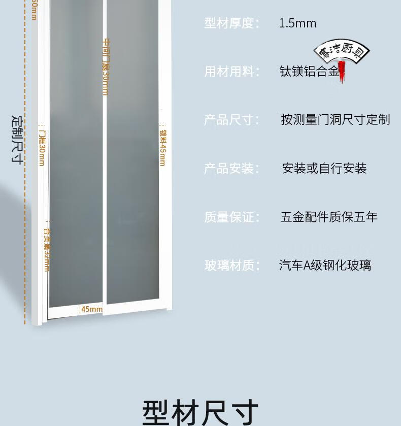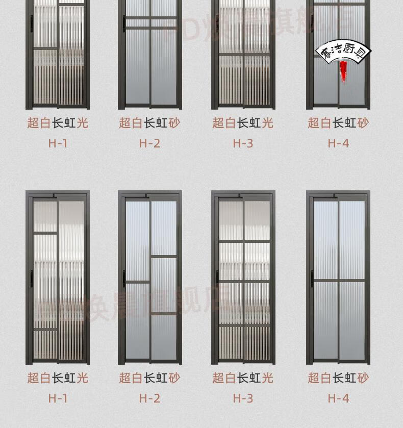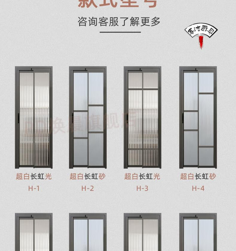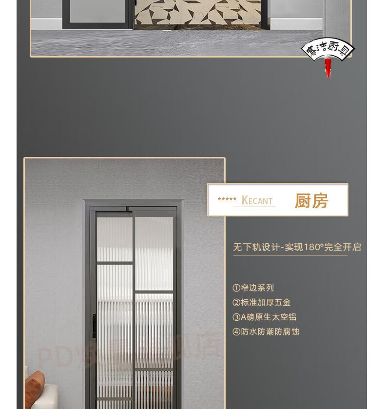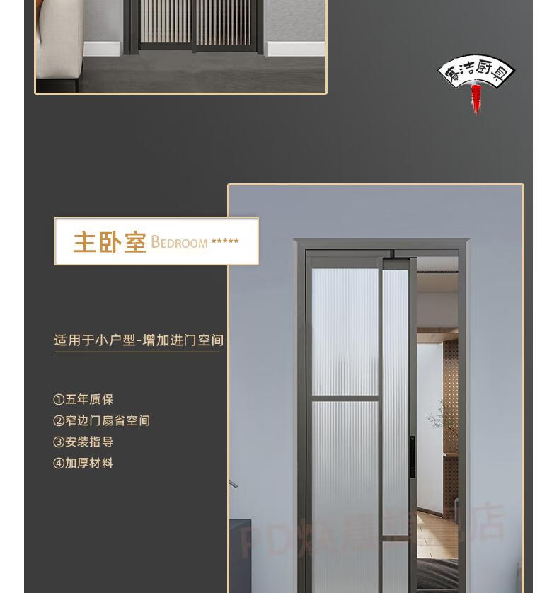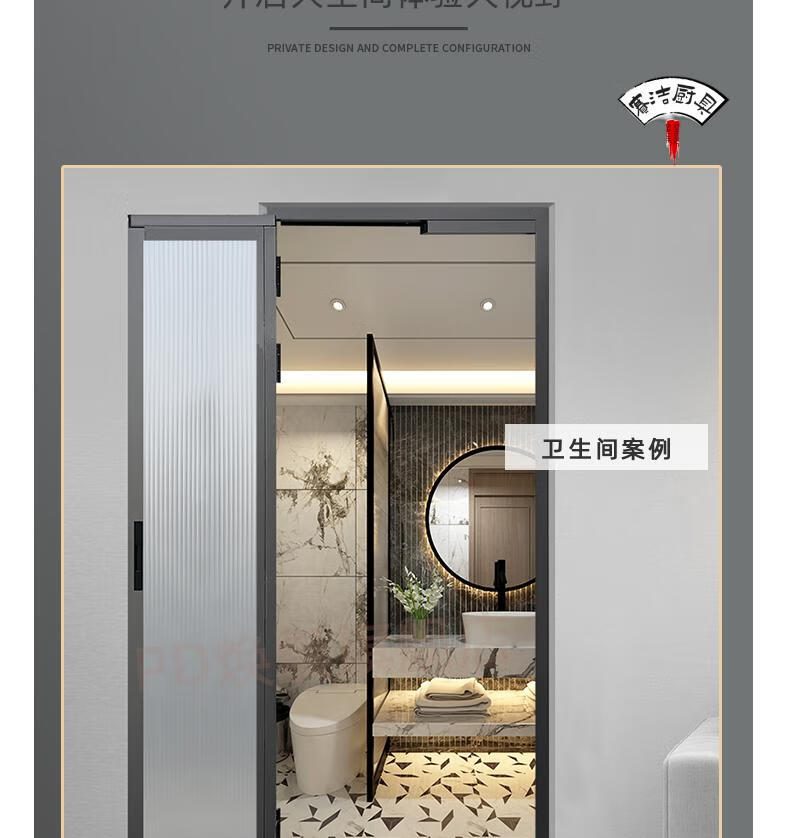 妙普乐16极窄边框pt门推拉180°平开一体门厨房pd门卫生间折叠门厕所门 单包边景长虹玻璃