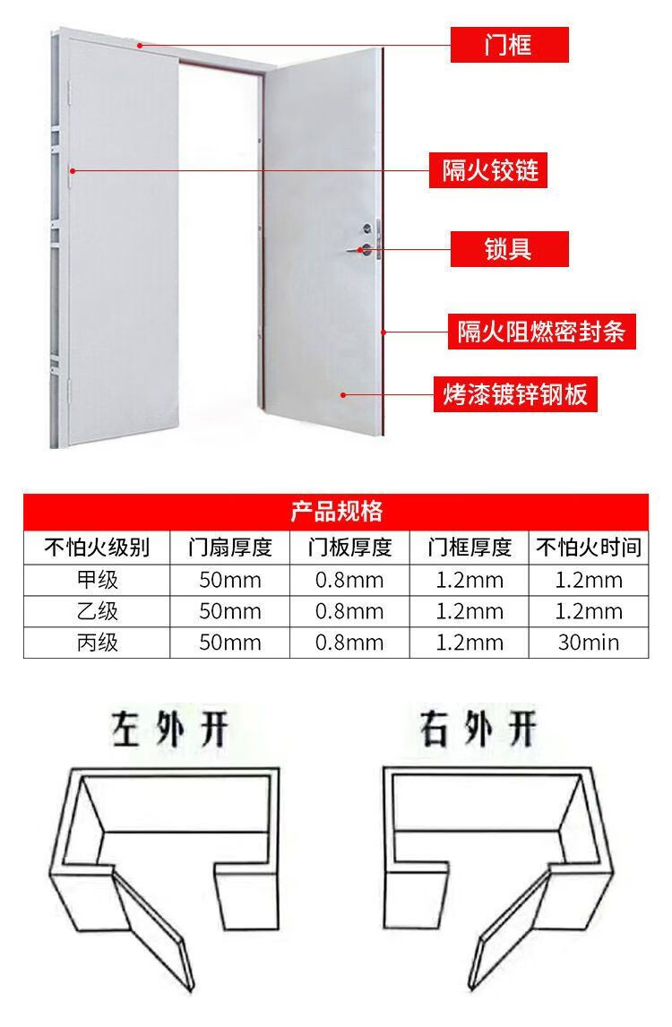 Qinkai Fire Door Factory Direct Sales Steel Stainless Steel Class A Class B Fire Safety Steel Wooden Engineering Customization The following products are not left-hand opening