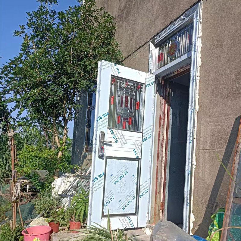 Qinkai stainless steel single door standard door with bright window outdoor stainless steel anti-theft door entrance door balcony door full set of doors stainless 860*2480 inner bag left/outer right