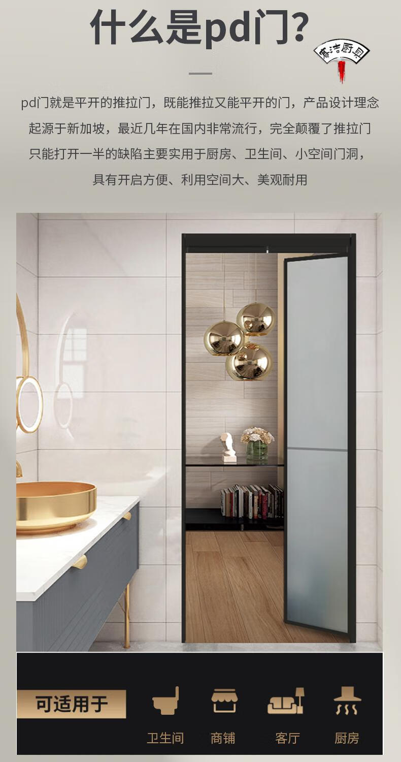 妙普乐pd门厨房推拉平开一体门钛镁合金极窄pt门门卫生间厕所折叠门子母 2.5边框三联动【折后价1380/㎡】