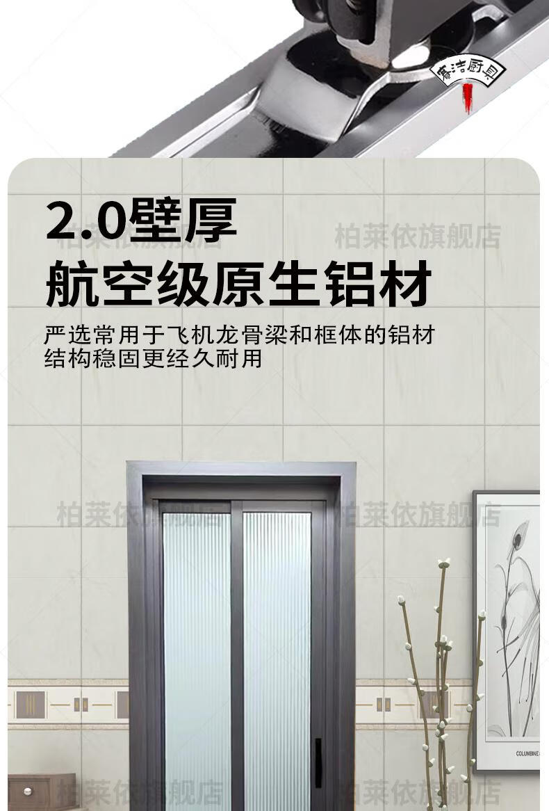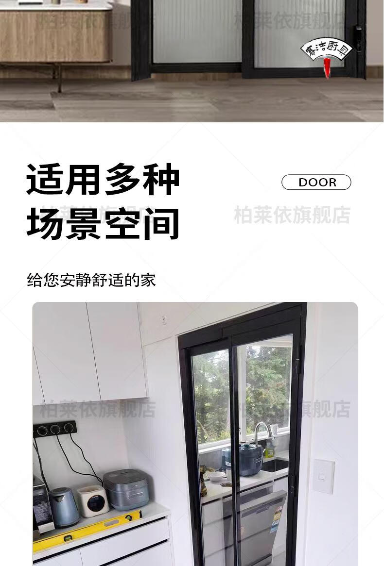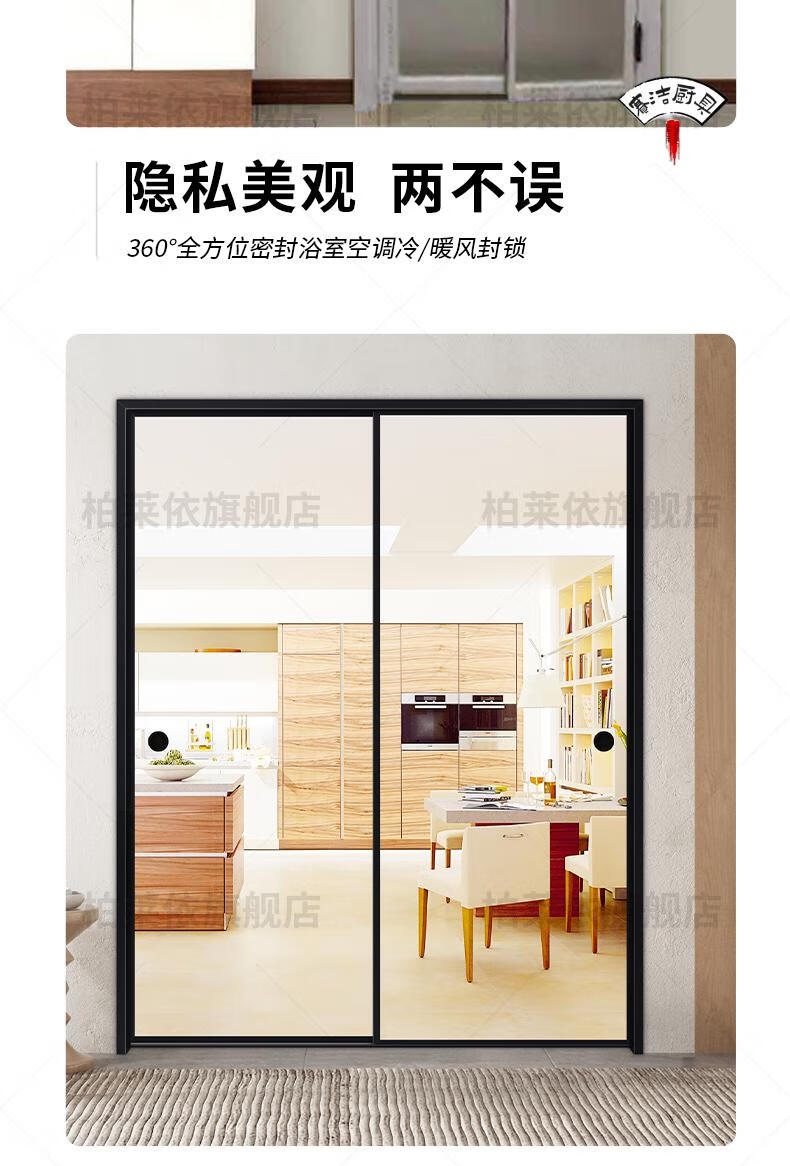 妙普乐pd门厨房推拉平开一体门钛镁合金Pt门极窄门无轨移门玻璃折叠卫生 25极窄+普白长虹+透明