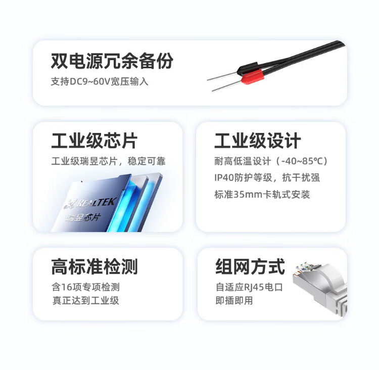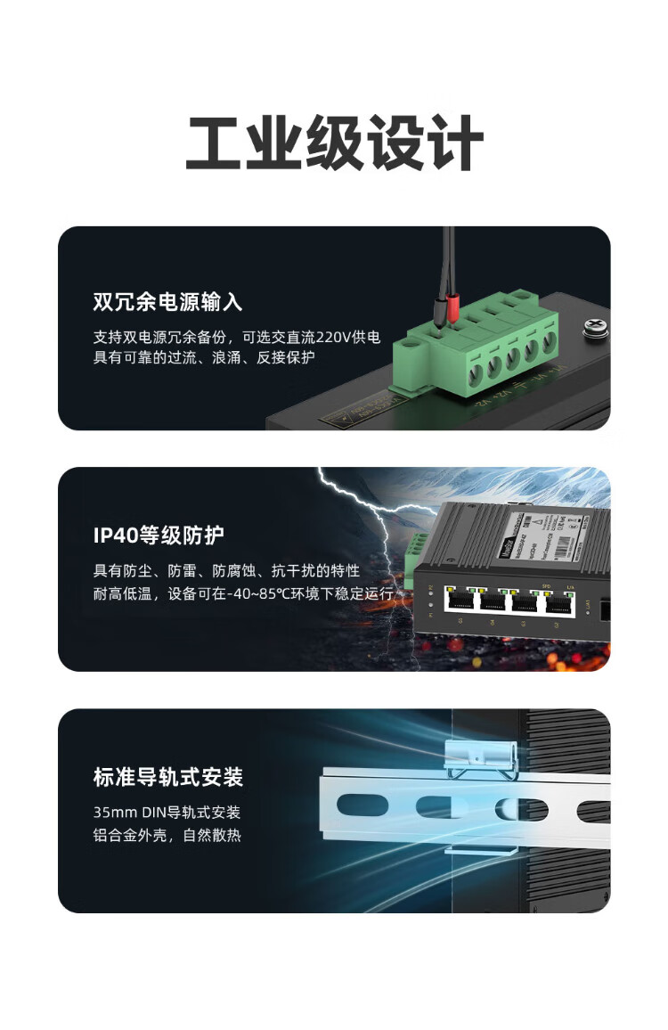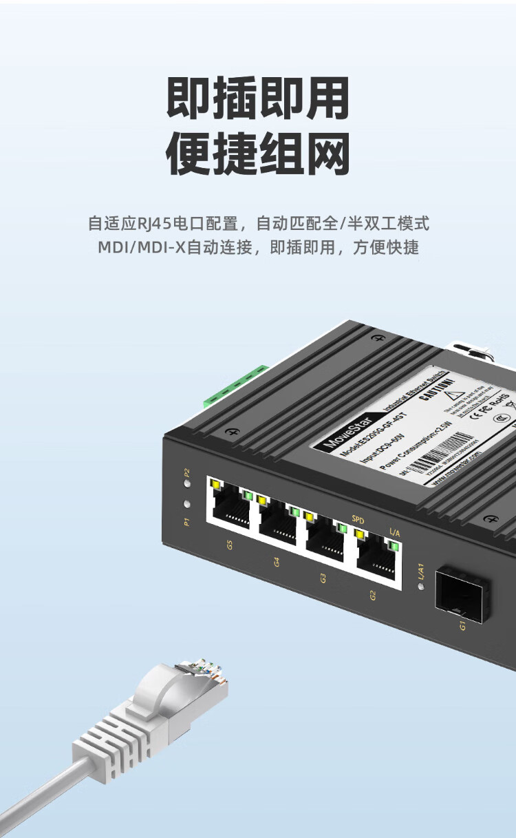 移星(MoweStar)工业级光纤收发器一光二电二光四电交换机百兆千兆网络分线器集线器收发器光端机光电转换器20km ES203-F 百兆1光2电导轨式非管理型 双路DC9-60V供电
