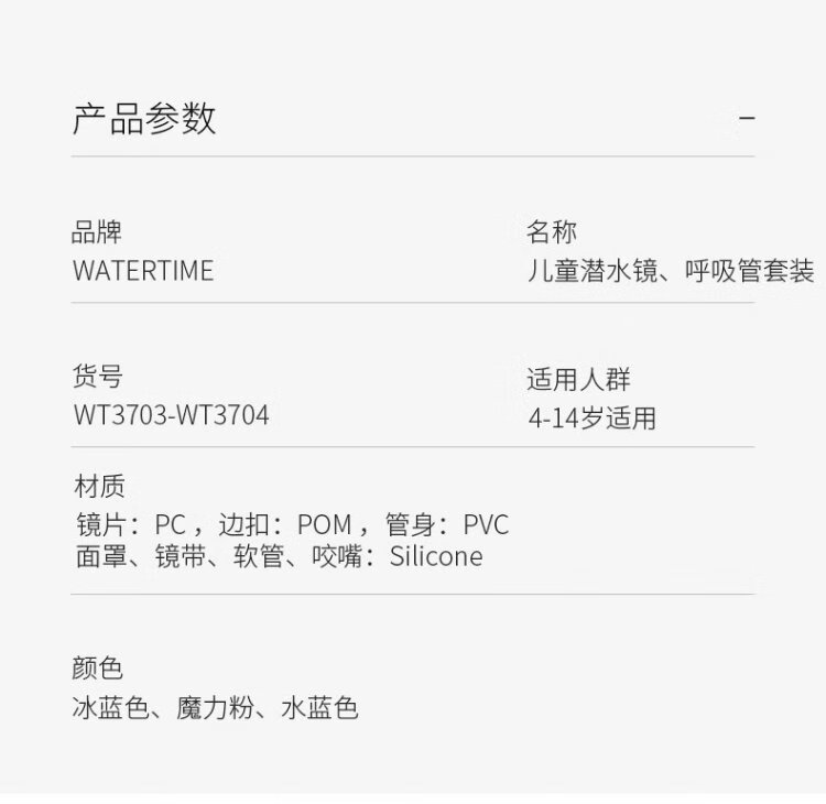 WATERTIME children's diving mask snorkeling mask snorkeling Sambo breathable swimming goggles diving equipment aqua blue suit