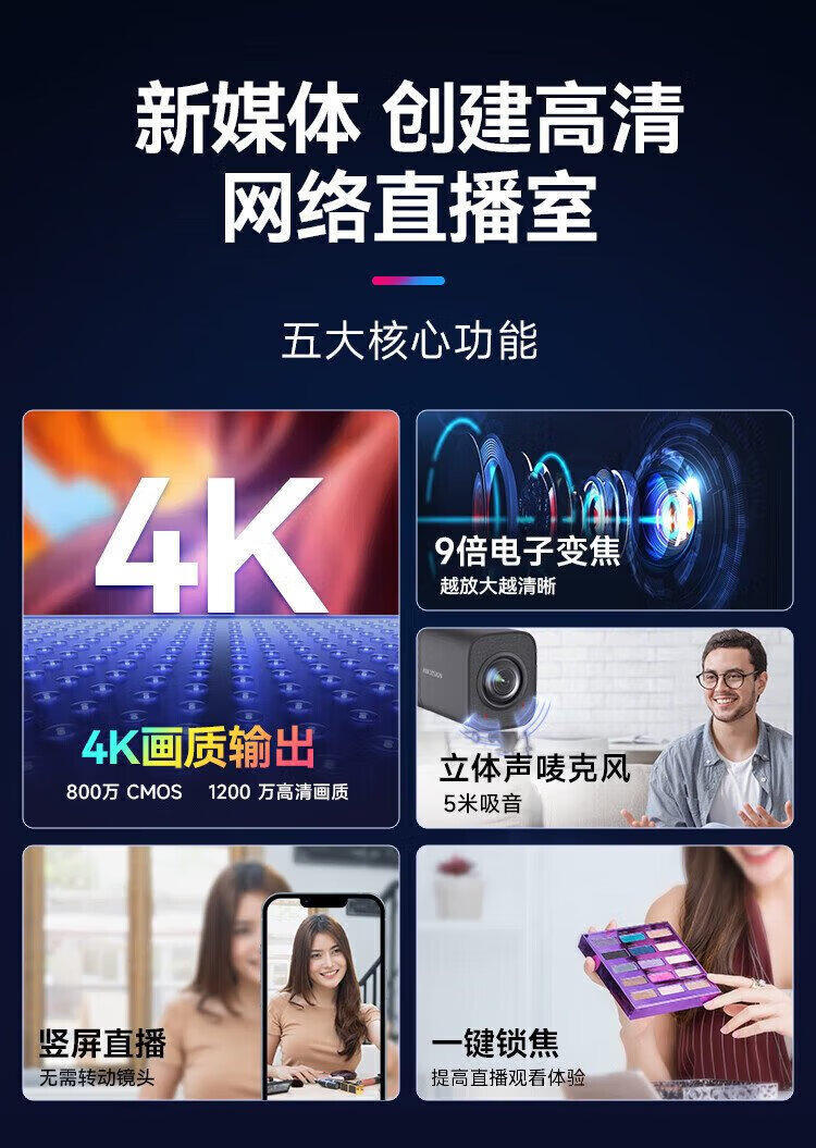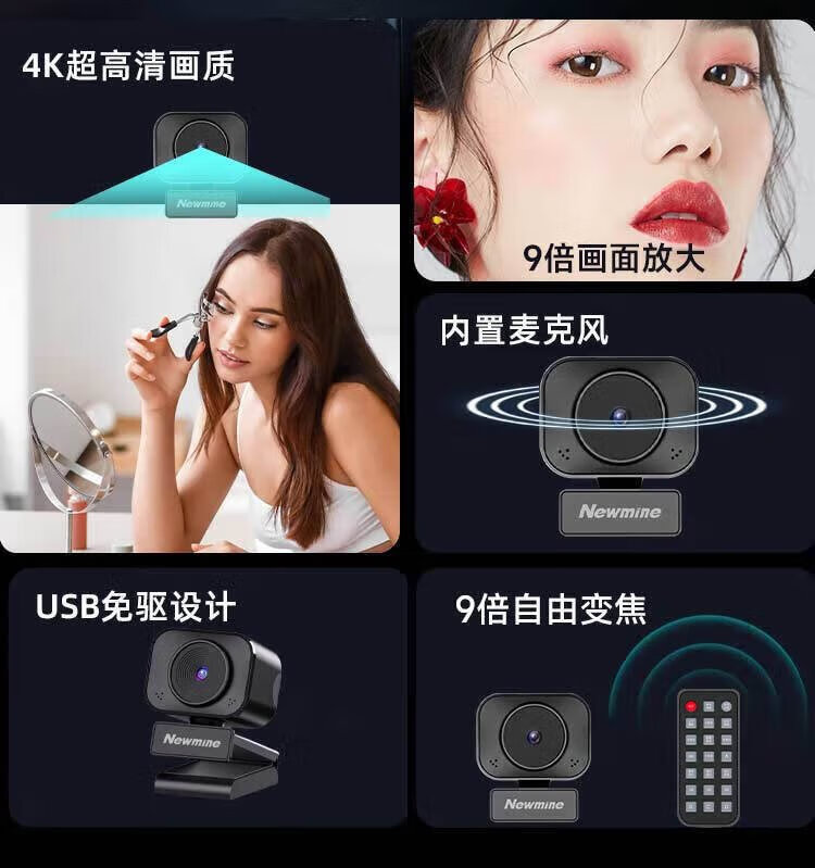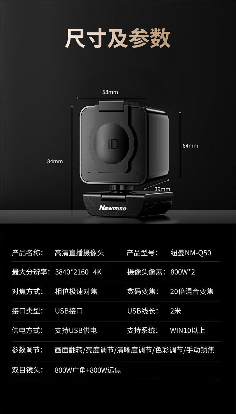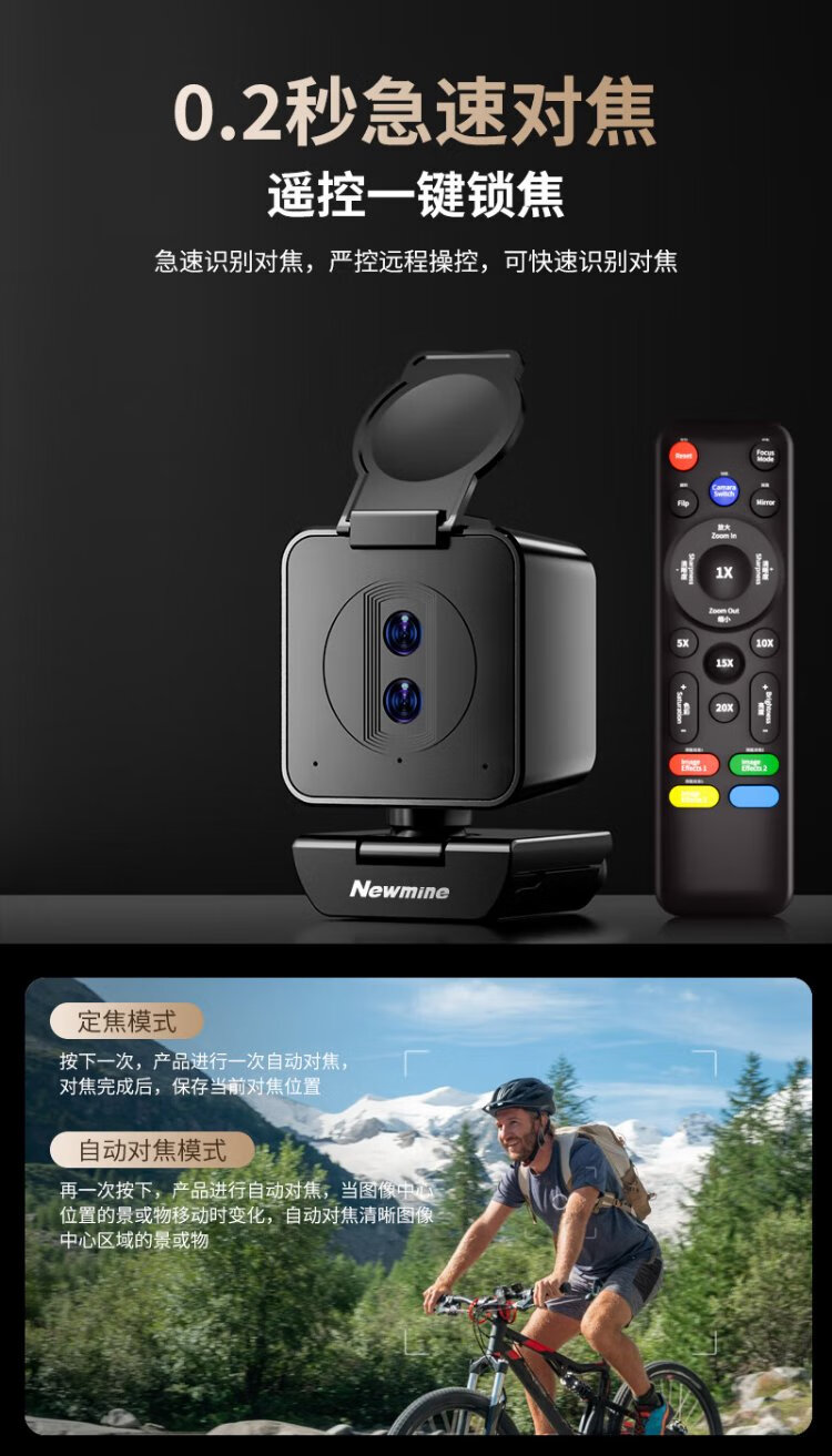 纽曼(Newmine)4K电脑直播摄像头美颜超清双目免驱摄像机20倍变焦主播抖快带货设备竖屏会议视频笔记本台式电脑用 4K 【网红直播】遥控变焦丨自动对焦丨竖屏直播