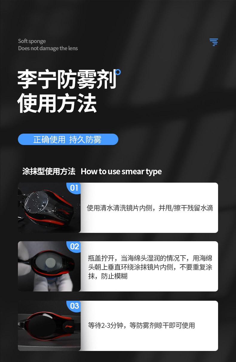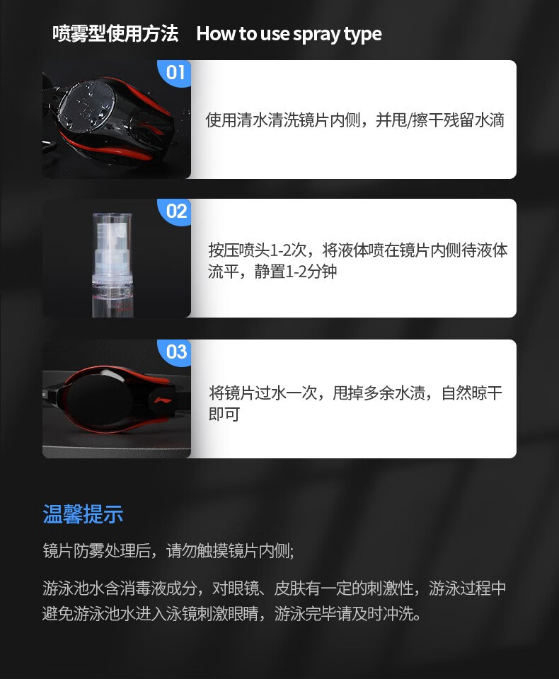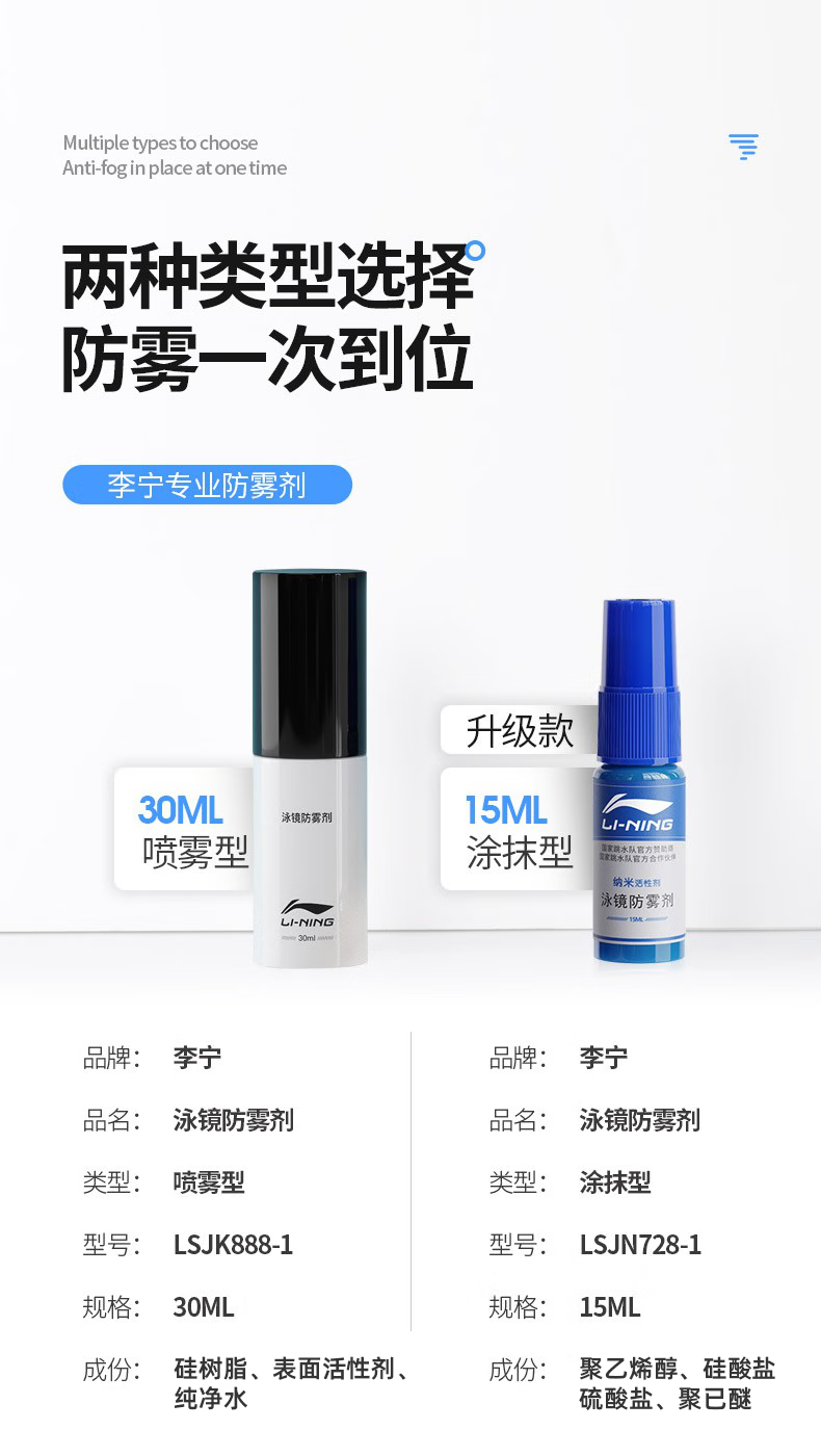 Li Ning (LI-NING) anti-fog agent for swimming goggles, anti-fog agent for swimming goggles, non-irritating spray, high-definition professional anti-fog agent for diving glasses, 784 basic model 3ml, portable package