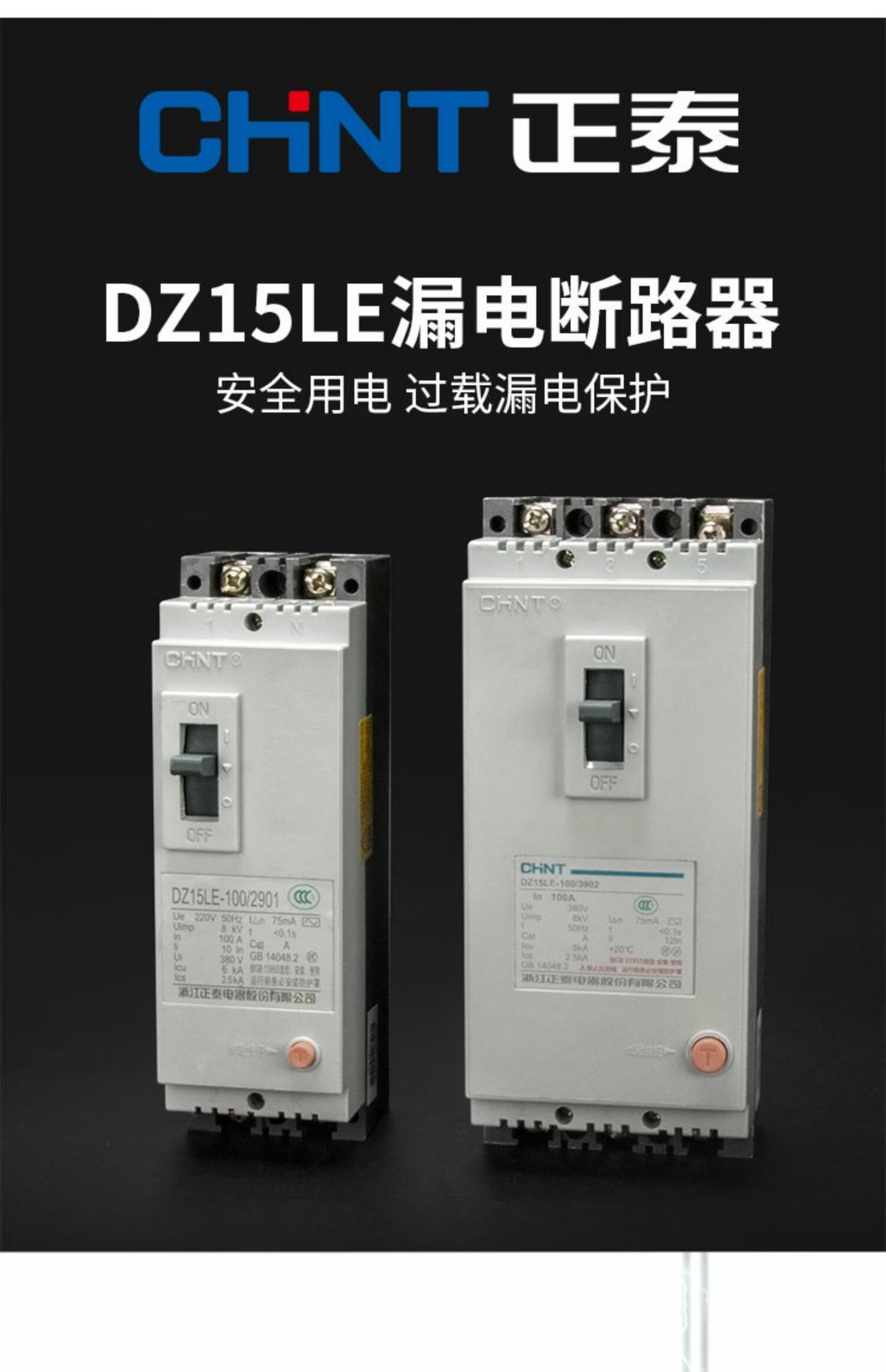 正泰三相四线漏电断路器DZ15LE-1004901塑壳漏电保护断路器100a 4p 100A