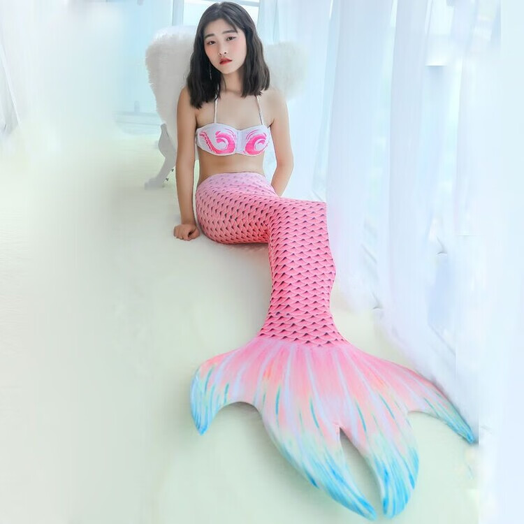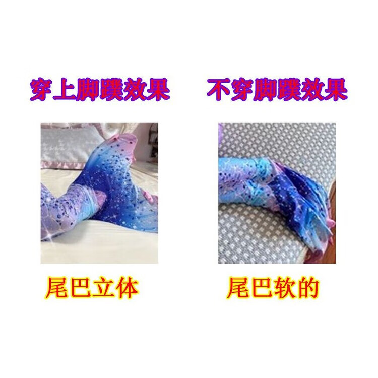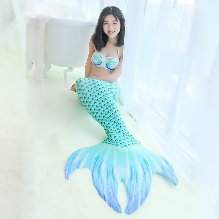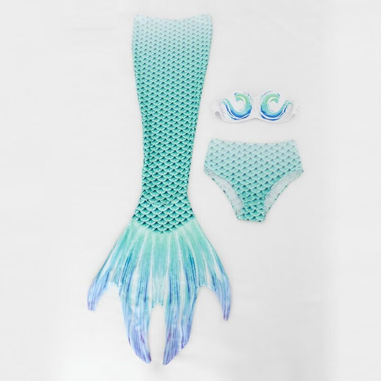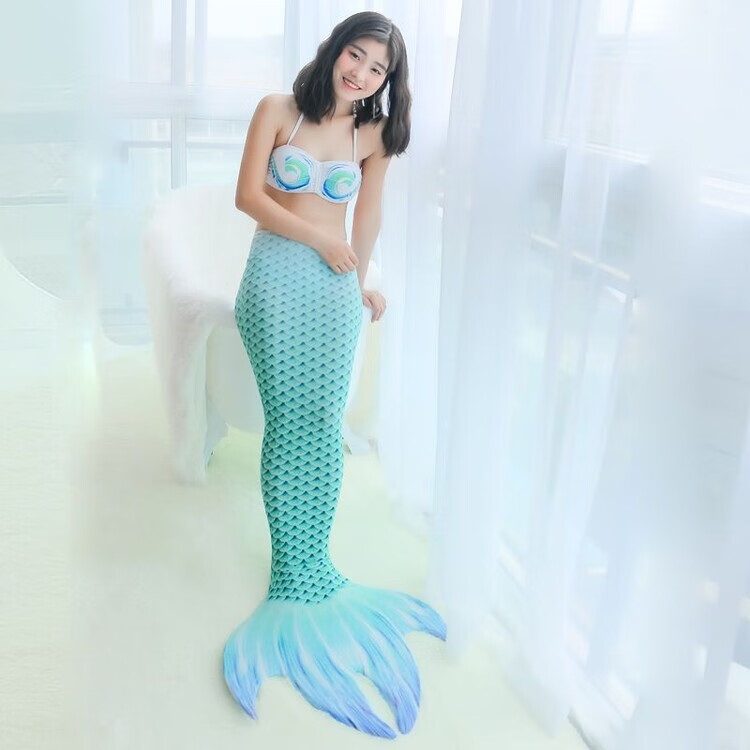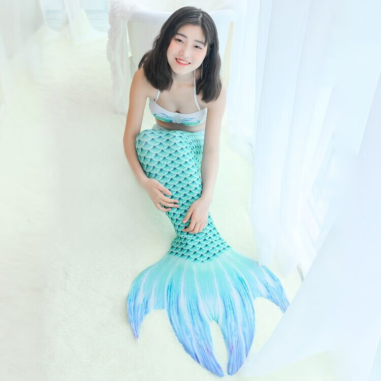 戎美丹尼美人鱼尾巴男女分体比基尼泳衣脚蹼儿童成人亲子度假摄影温泉服装 蓝色单鱼尾 L码建议身高160-165CM