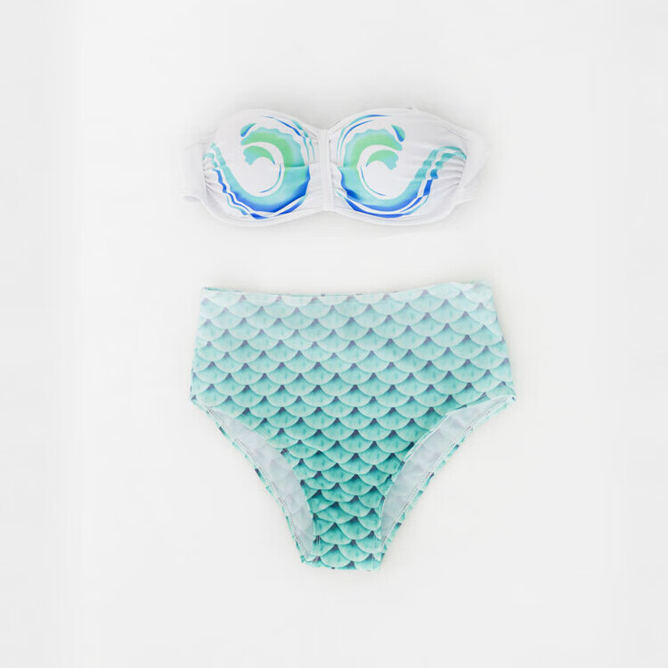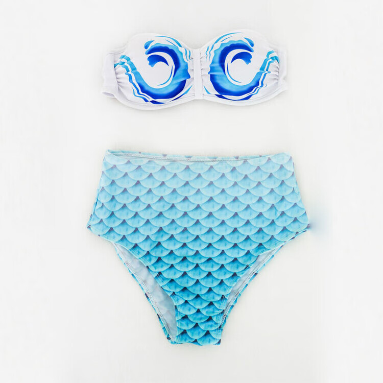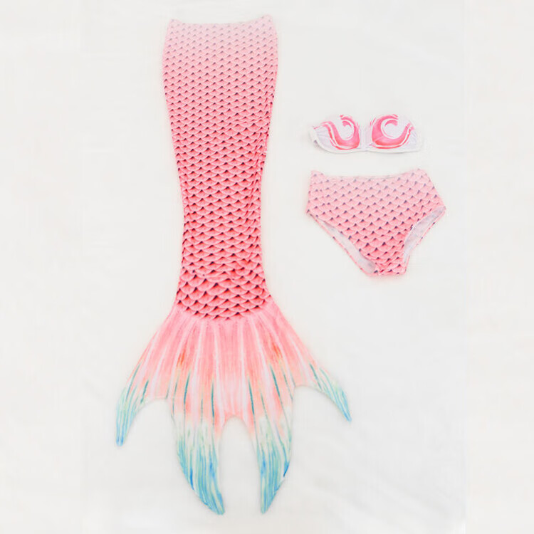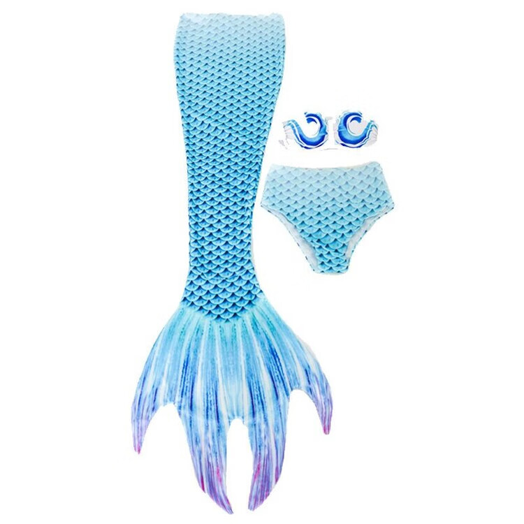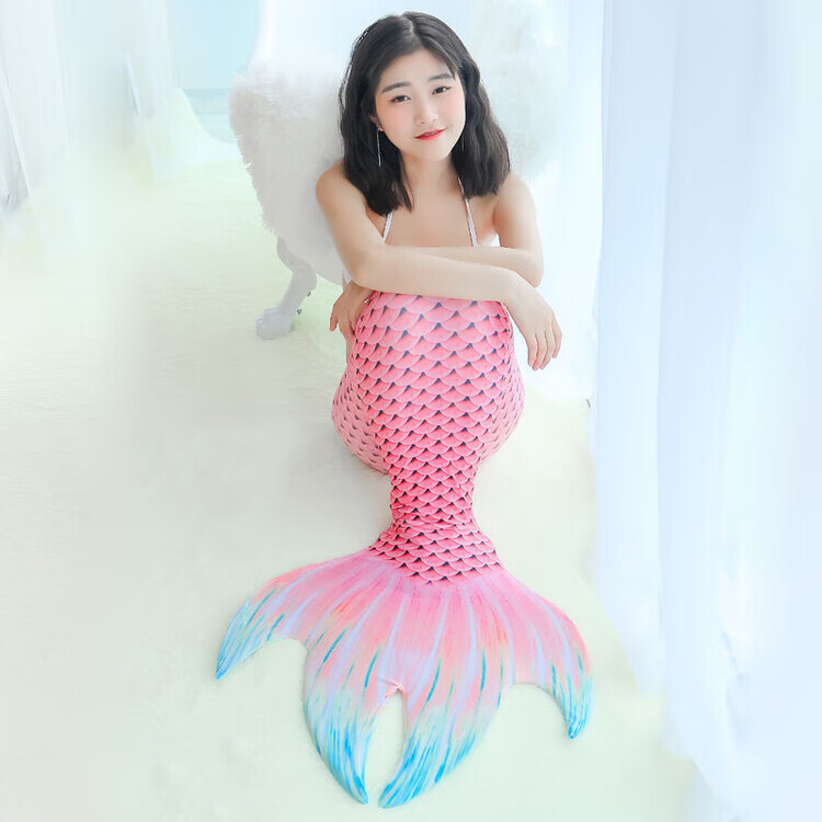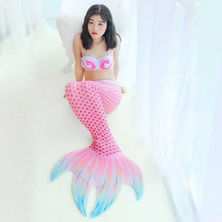 戎美丹尼美人鱼尾巴男女分体比基尼泳衣脚蹼儿童成人亲子度假摄影温泉服装 蓝色单鱼尾 L码建议身高160-165CM