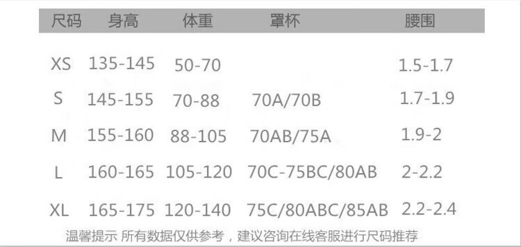 China (cm) 160-165/84-86 165-170 / 88-90 167-172 / 92-96 168-173 / 98-102 170-176 / 106-110