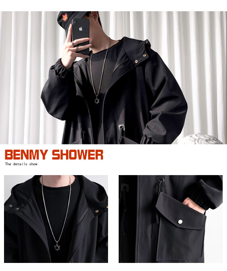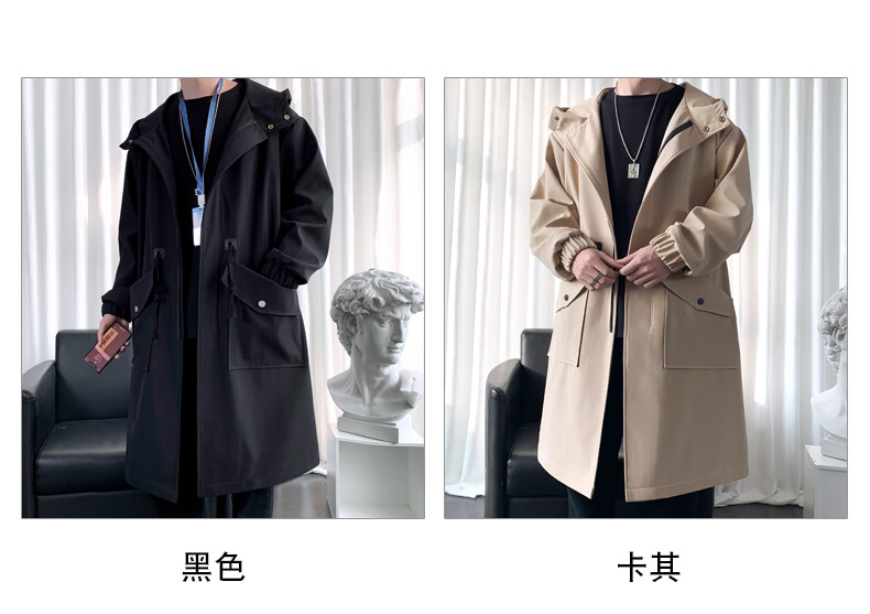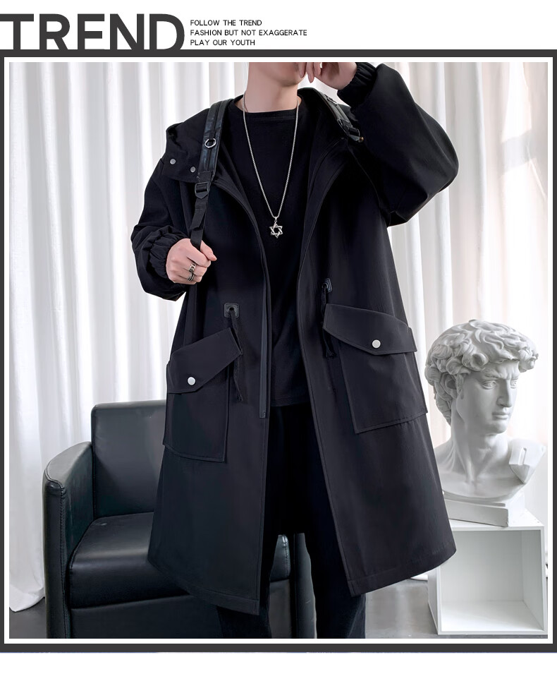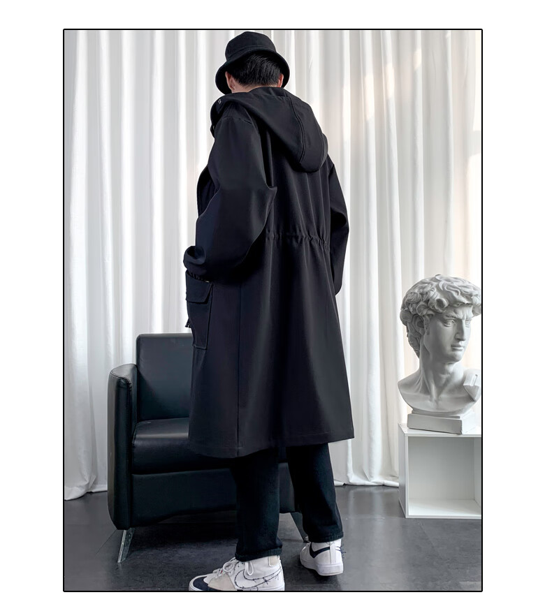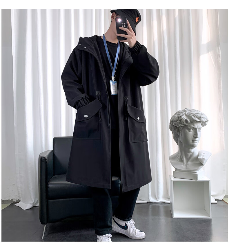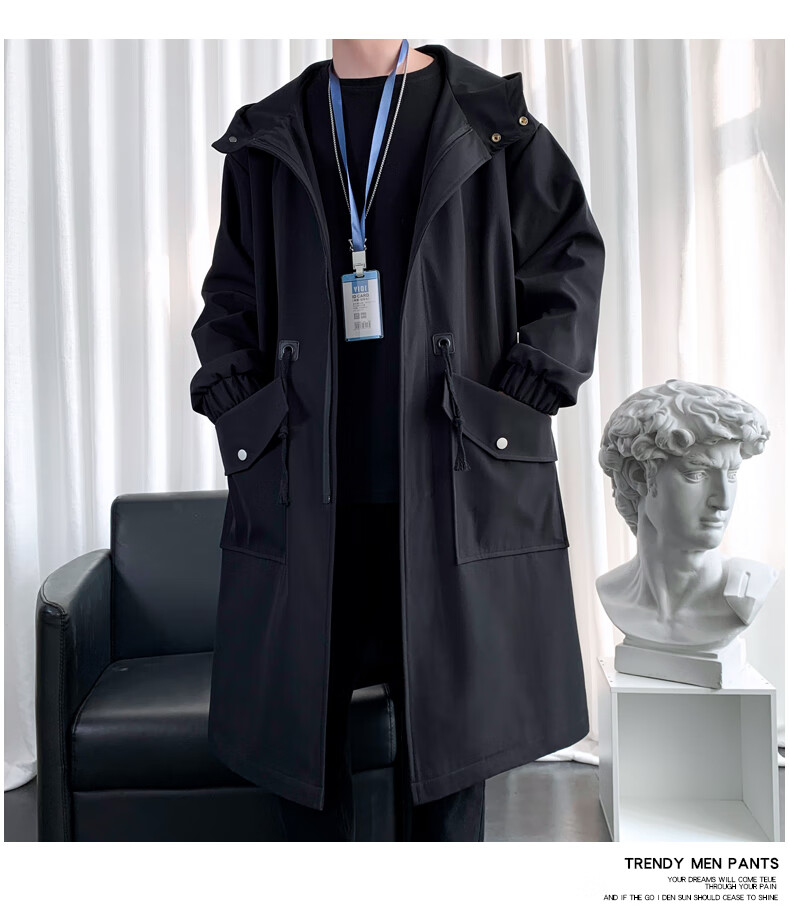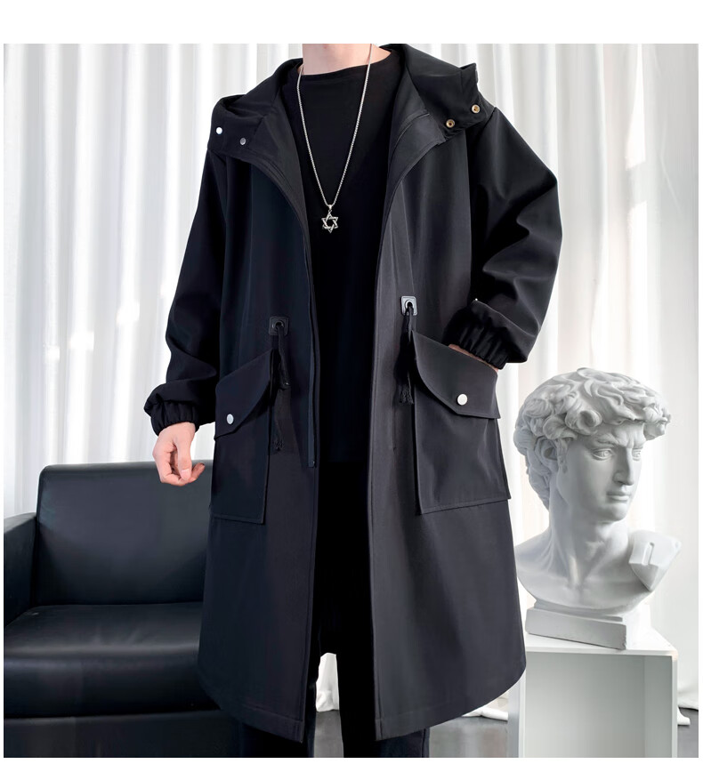 罗蒙(ROMON)男士中长款风衣秋冬季新款宽松休闲外套中青年潮流百搭英伦风男装 黑色加棉F994 加厚 M 100-120斤