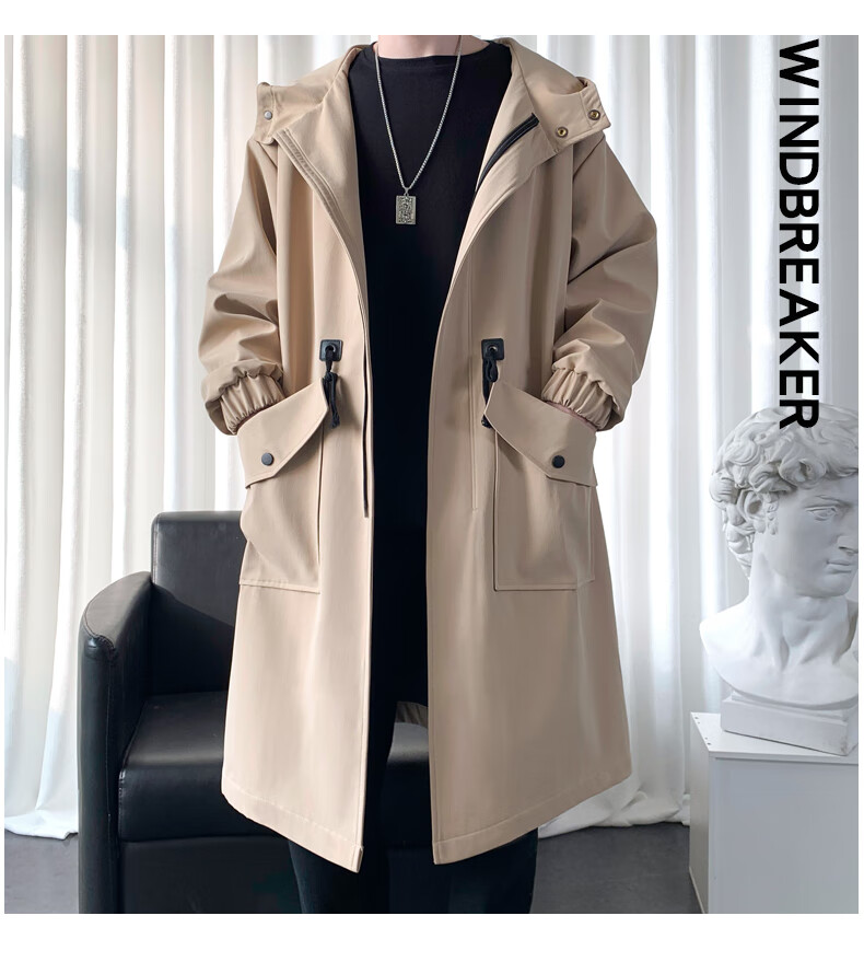 罗蒙(ROMON)男士中长款风衣秋冬季新款宽松休闲外套中青年潮流百搭英伦风男装 黑色加棉F994     加厚 M 100-120斤