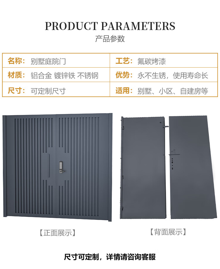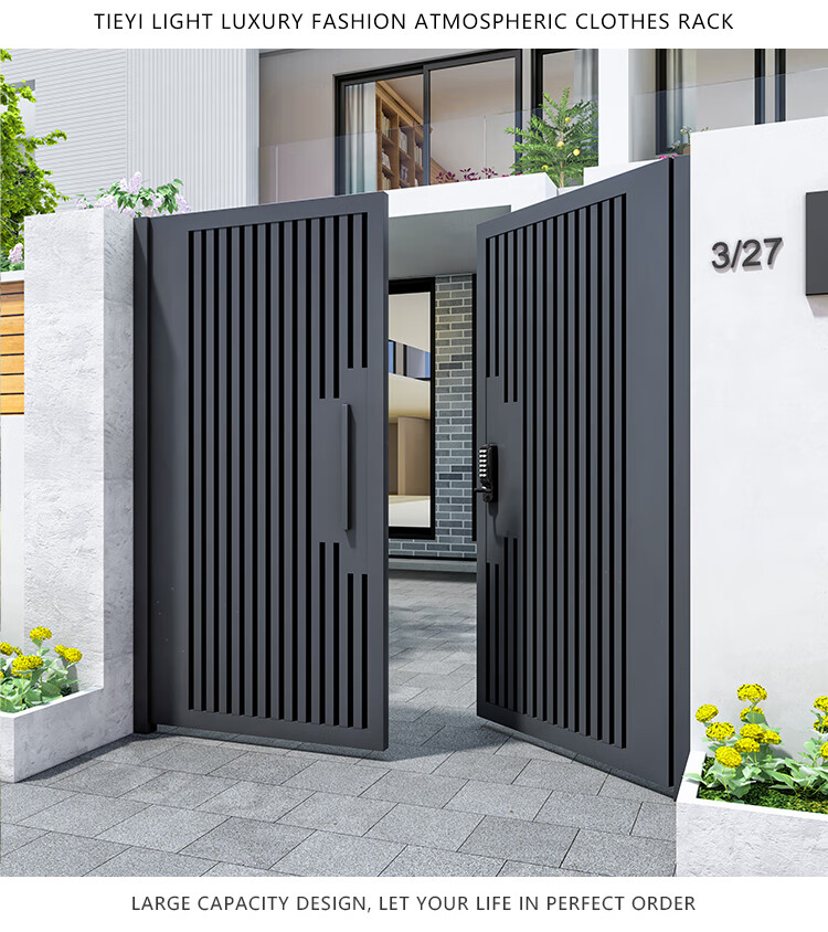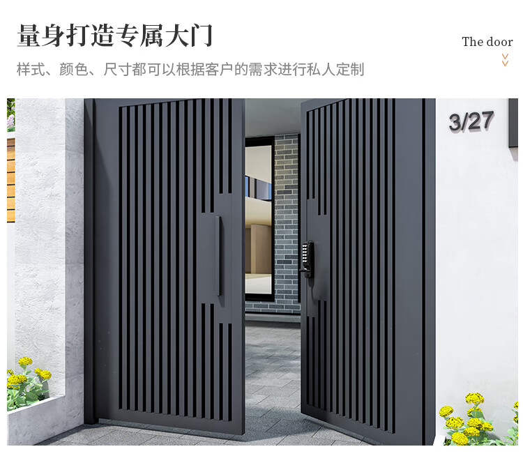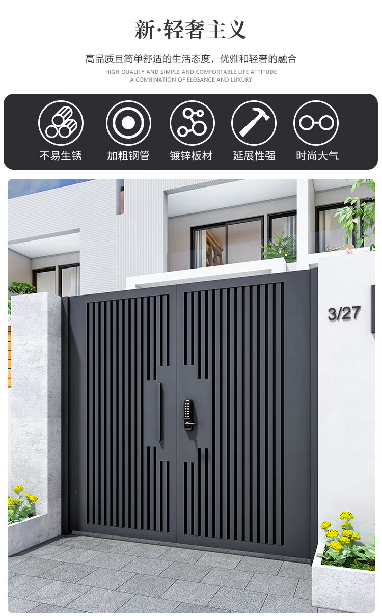 奇立彩铝合金庭院门别墅大门双开门户外不锈钢现代农村铁艺院子大门定制 款1【镀锌铁】每平方