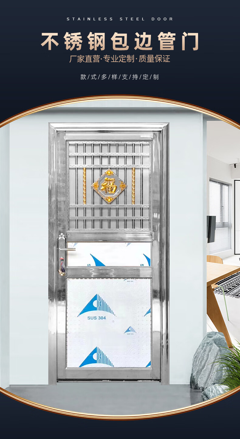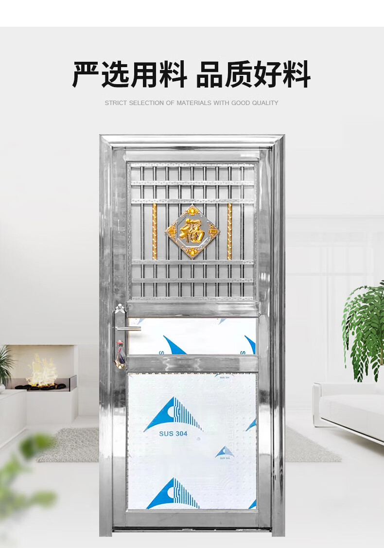 Qilicai 304 дверь из нержавеющей стали, однодверная балконная дверь, плоская рама, дверь во двор, аренда двери, проект двери подсобного помещения, простая дверь 800*2000, открывание наружу, левый замок