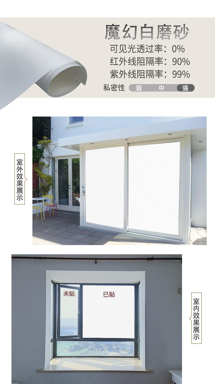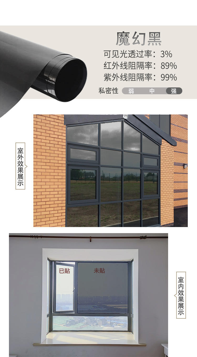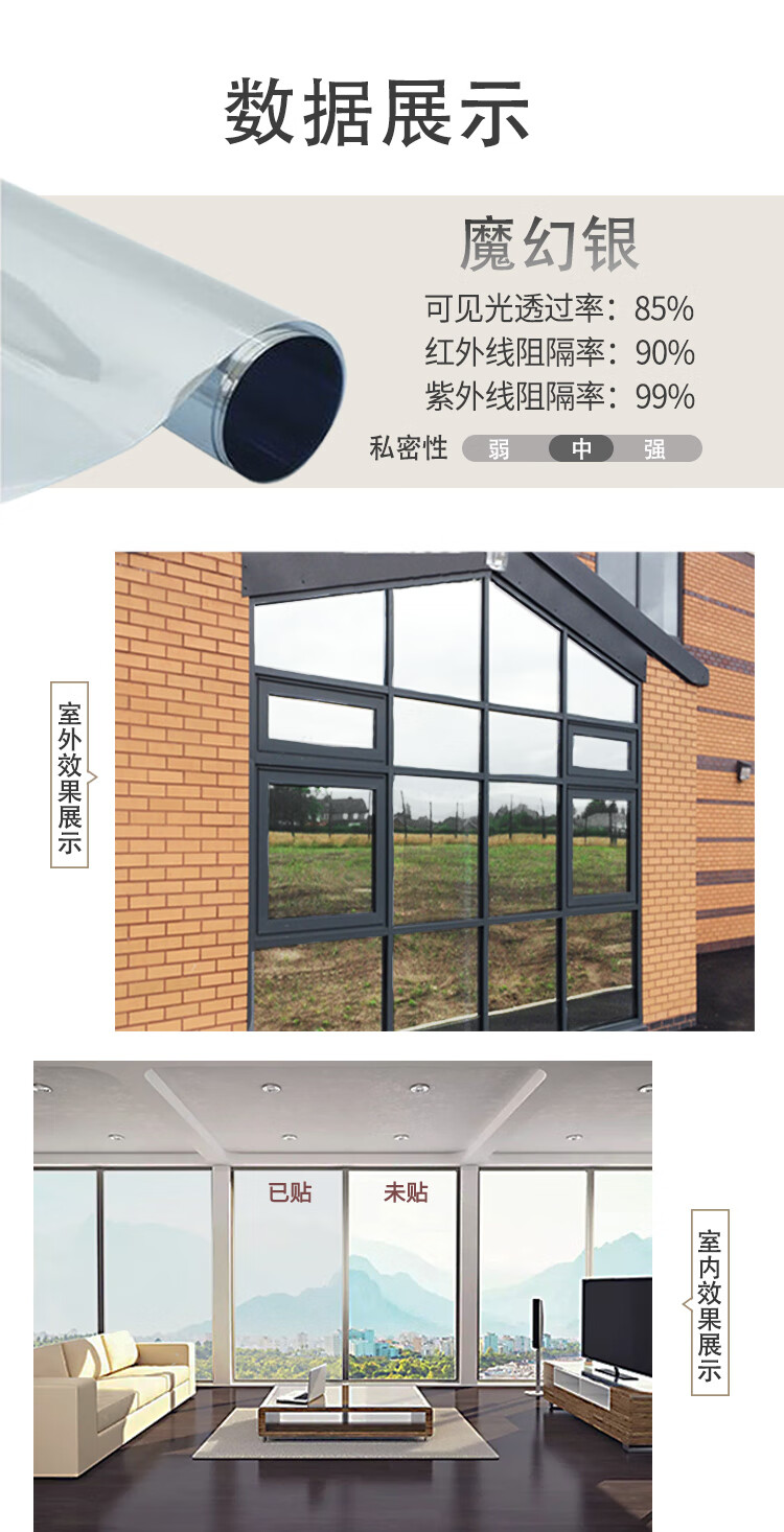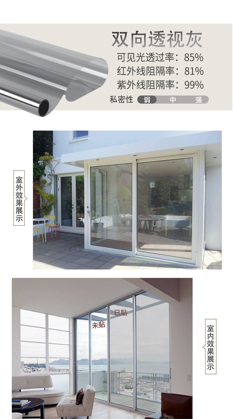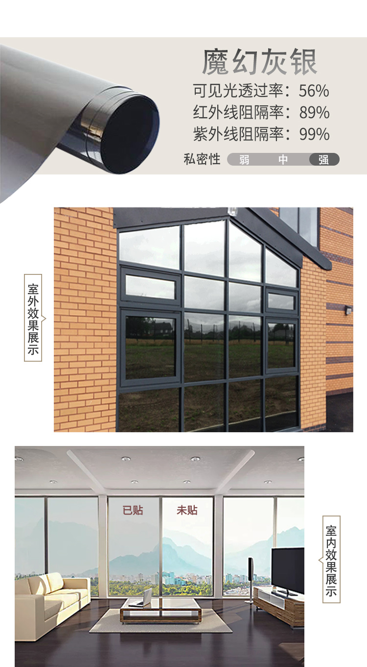 隔热膜窗户防晒贴纸太阳膜玻璃贴膜单向透视防窥阳台遮光遮阳 魔幻银(单向透视)隔热防爆 60x100cm