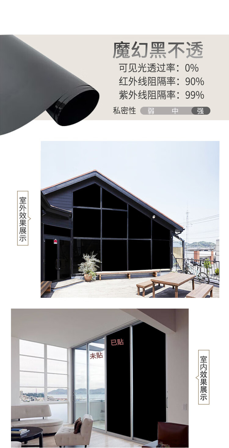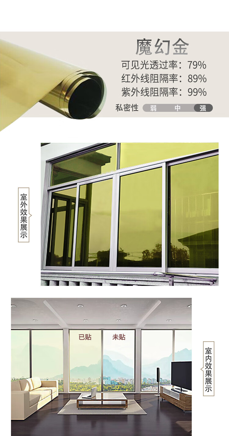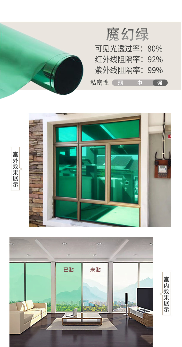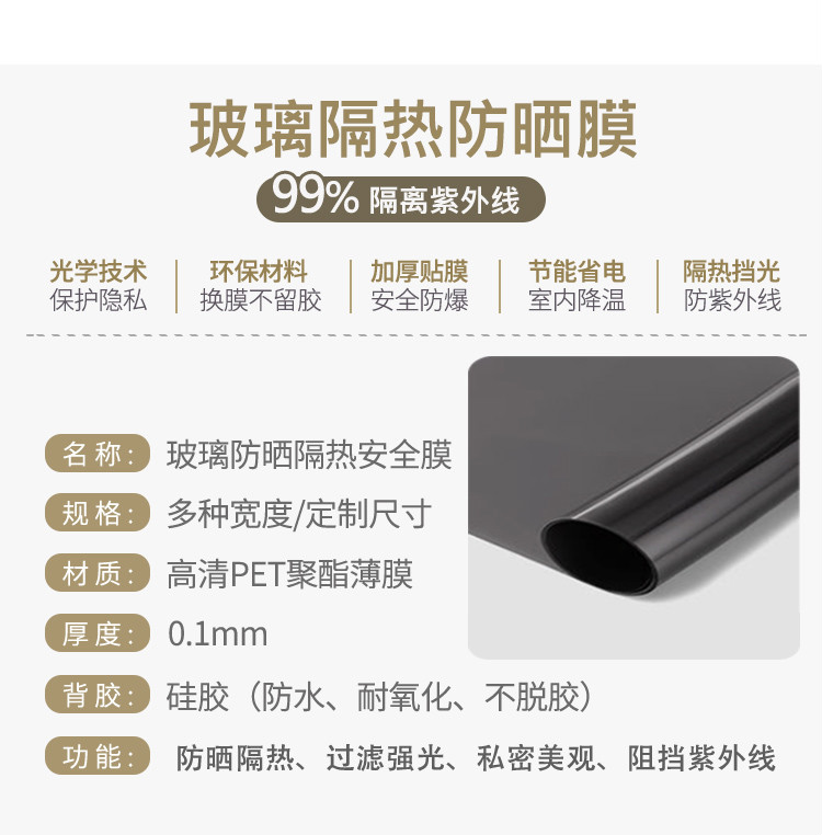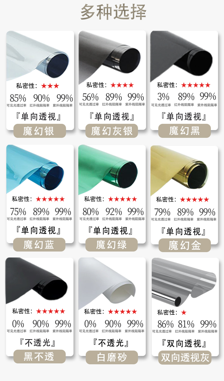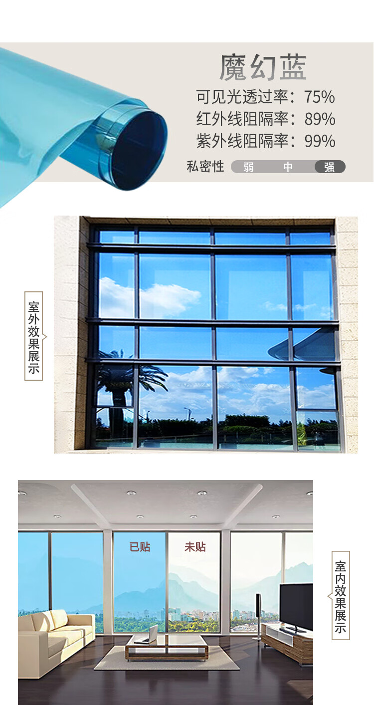 隔热膜窗户防晒贴纸太阳膜玻璃贴膜单向透视防窥阳台遮光遮阳 魔幻银(单向透视)隔热防爆 60x100cm