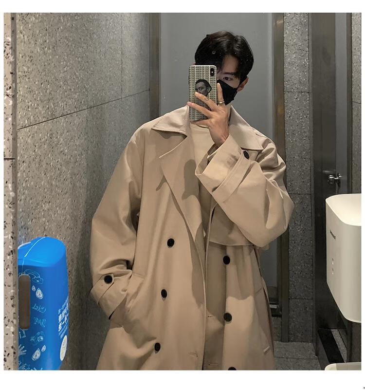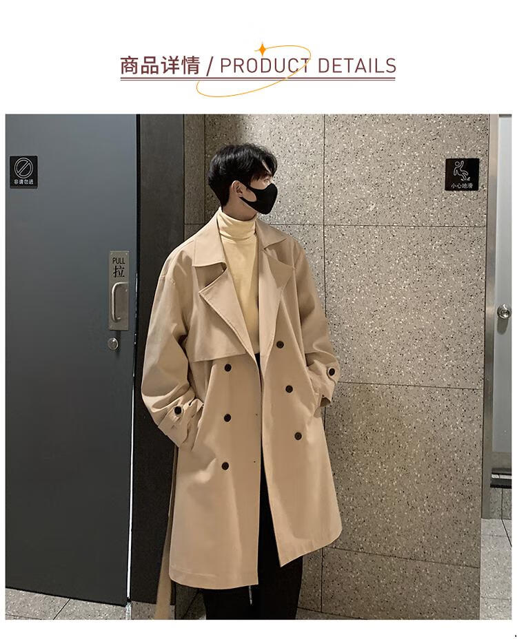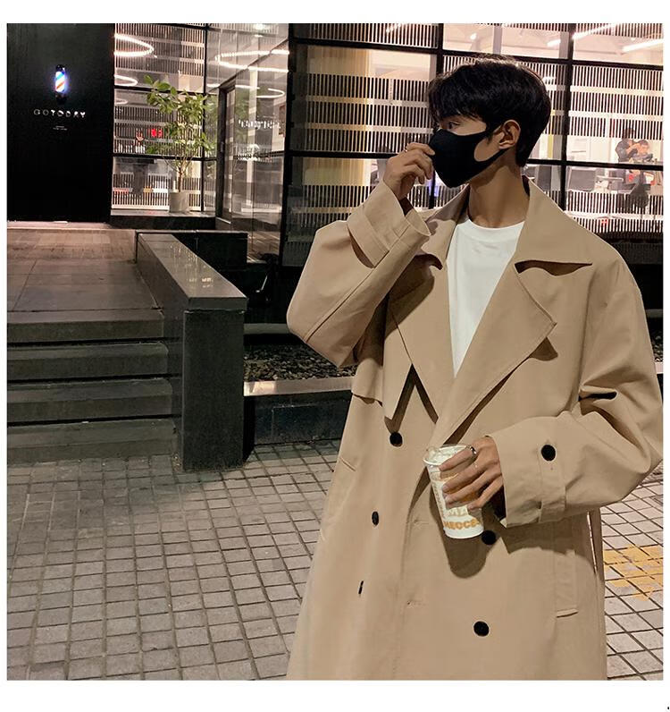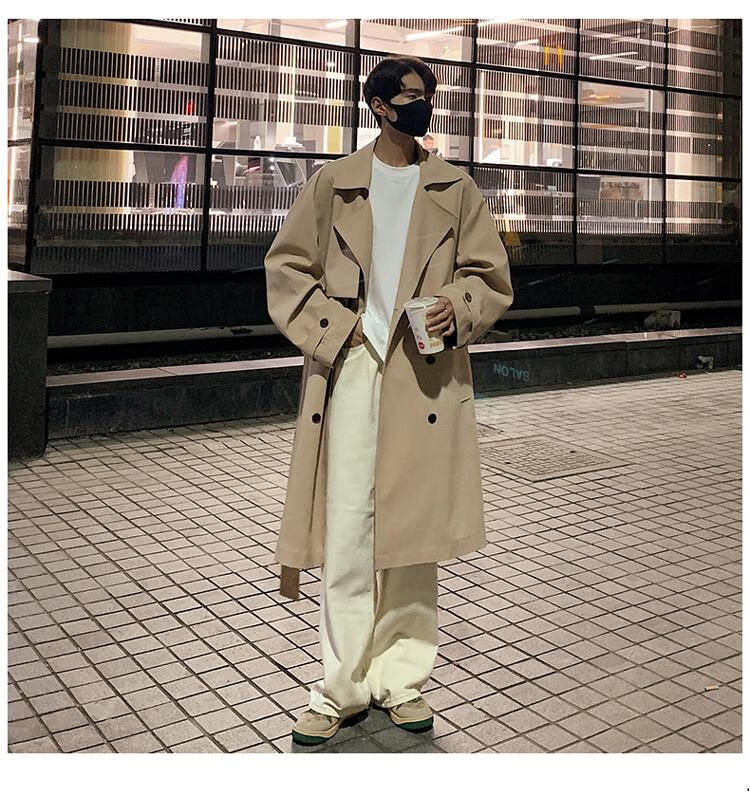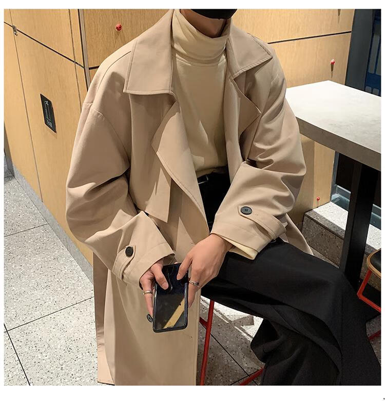 Pierre Cardin knitted Balmacen coat for men, autumn style mid-length windbreaker for business wear, Kensington khaki coat, khaki M