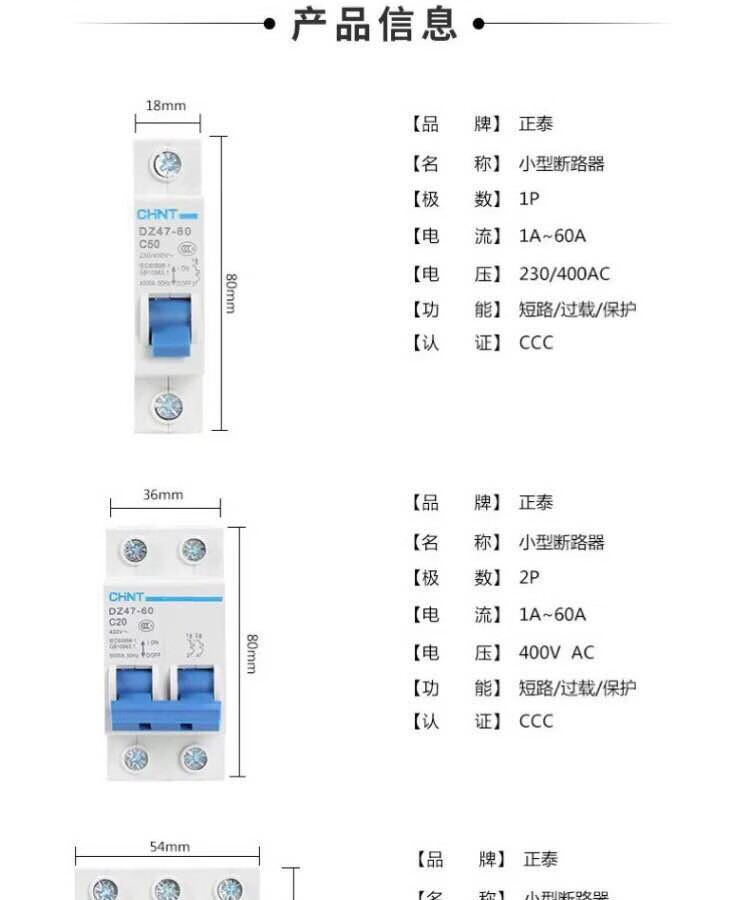 Chint (CHNT) Chint CHNT Chint air switch 32a air switch small 1p circuit breaker 63a three-phase electric gate household single DZ47 60A 1P