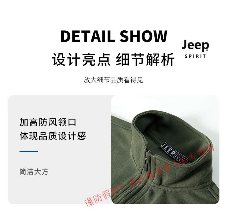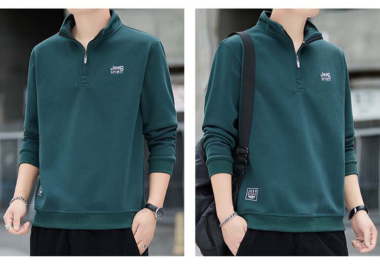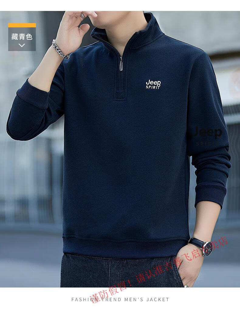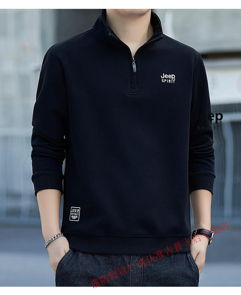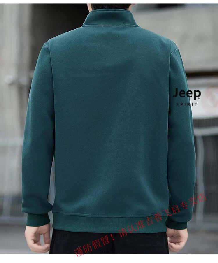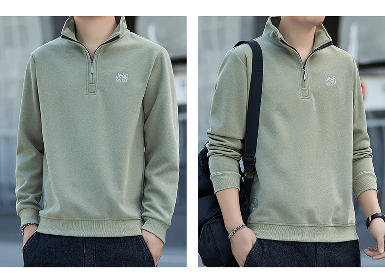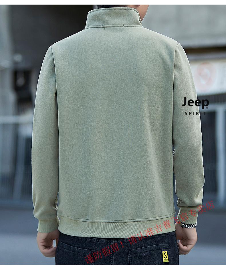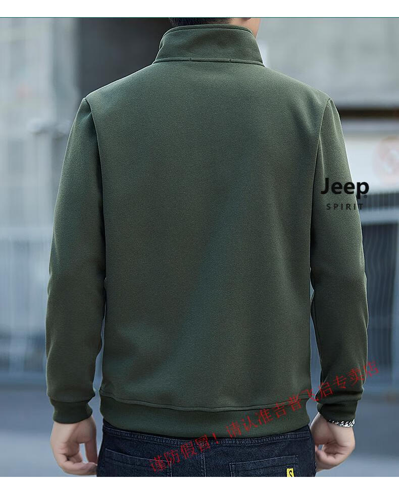 JEEP SPIRIT Jeep pure cotton sweatshirt men's spring and autumn new loose large size stand-up collar half-zip casual pullover long-sleeved top Army Green 2XL 140-160Jin Jin equals 0.5 kg
