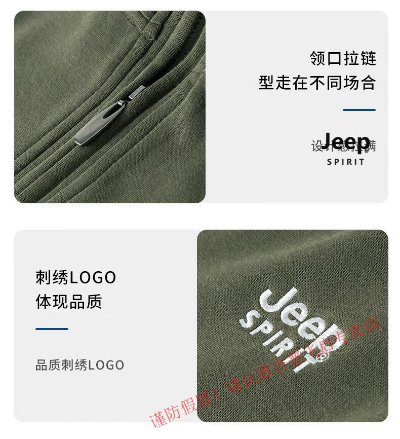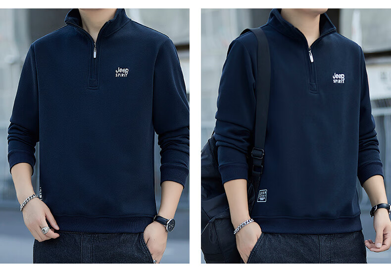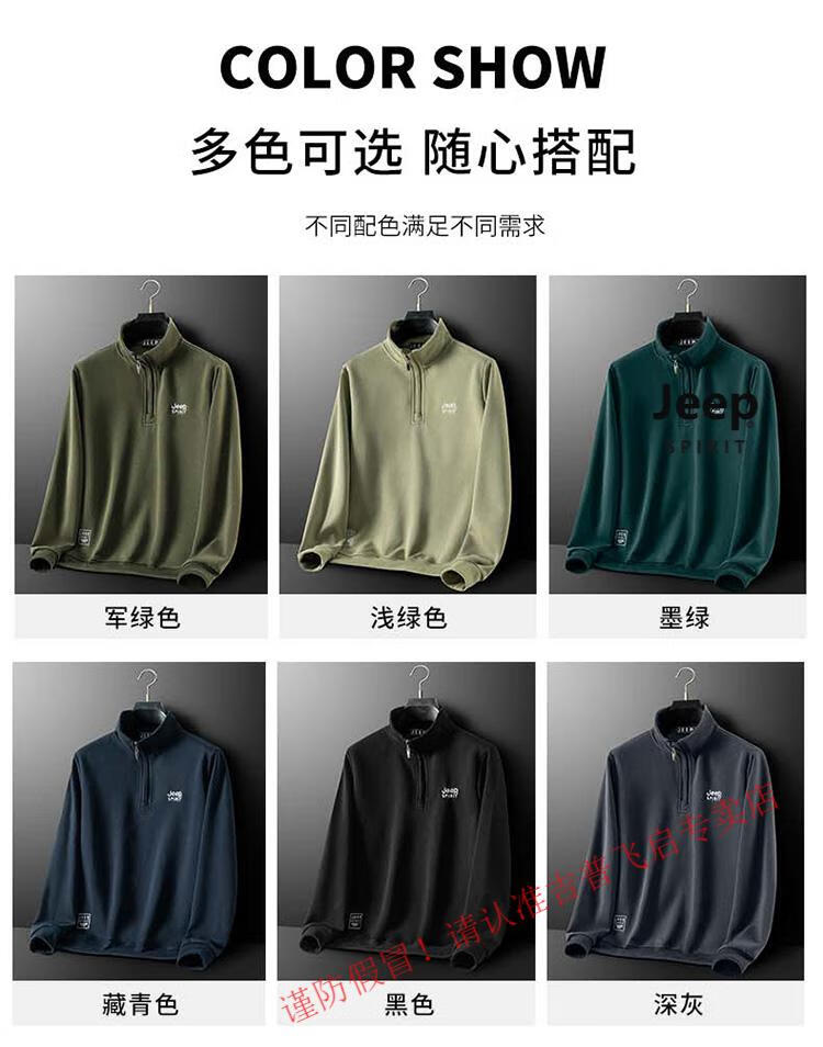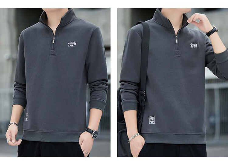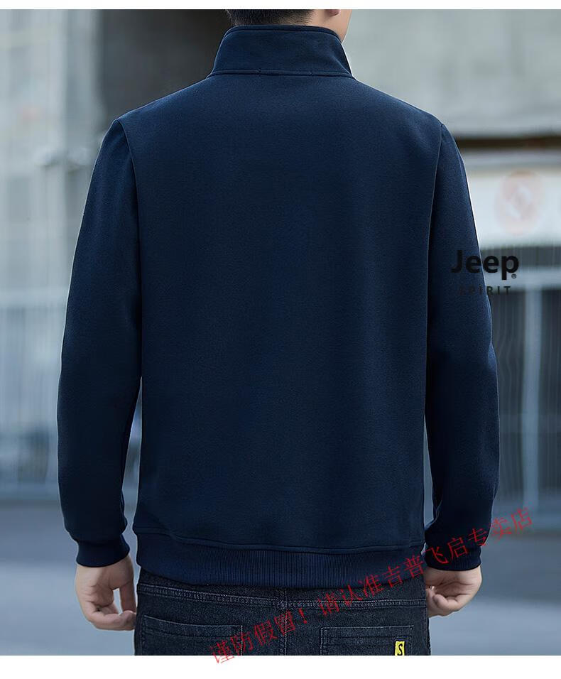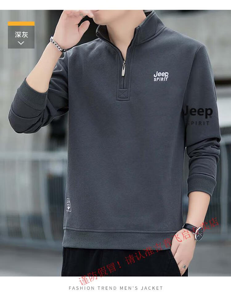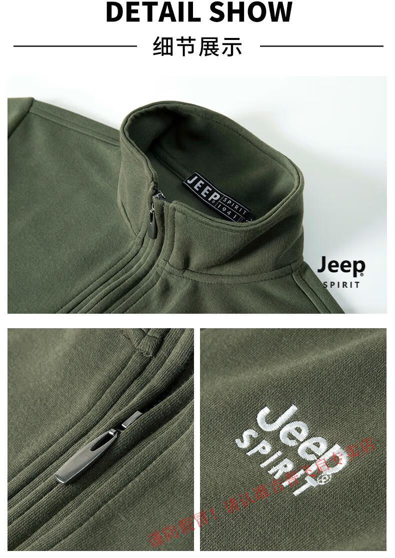 JEEP SPIRIT Jeep pure cotton sweatshirt men's spring and autumn new loose large size stand-up collar half-zip casual pullover long-sleeved top Army Green 2XL 140-160Jin Jin equals 0.5 kg