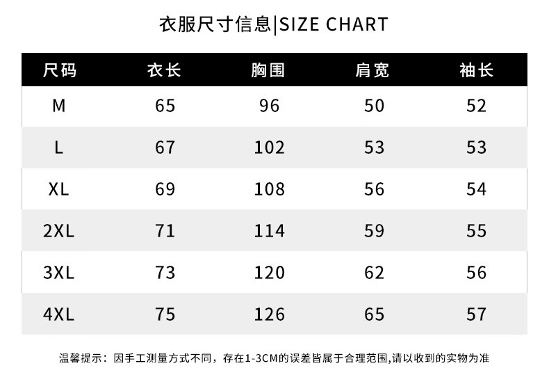 China (cm) 165 / 88-90 170 / 96-98 175 / 108-110 180 / 118-122 185 / 126-130