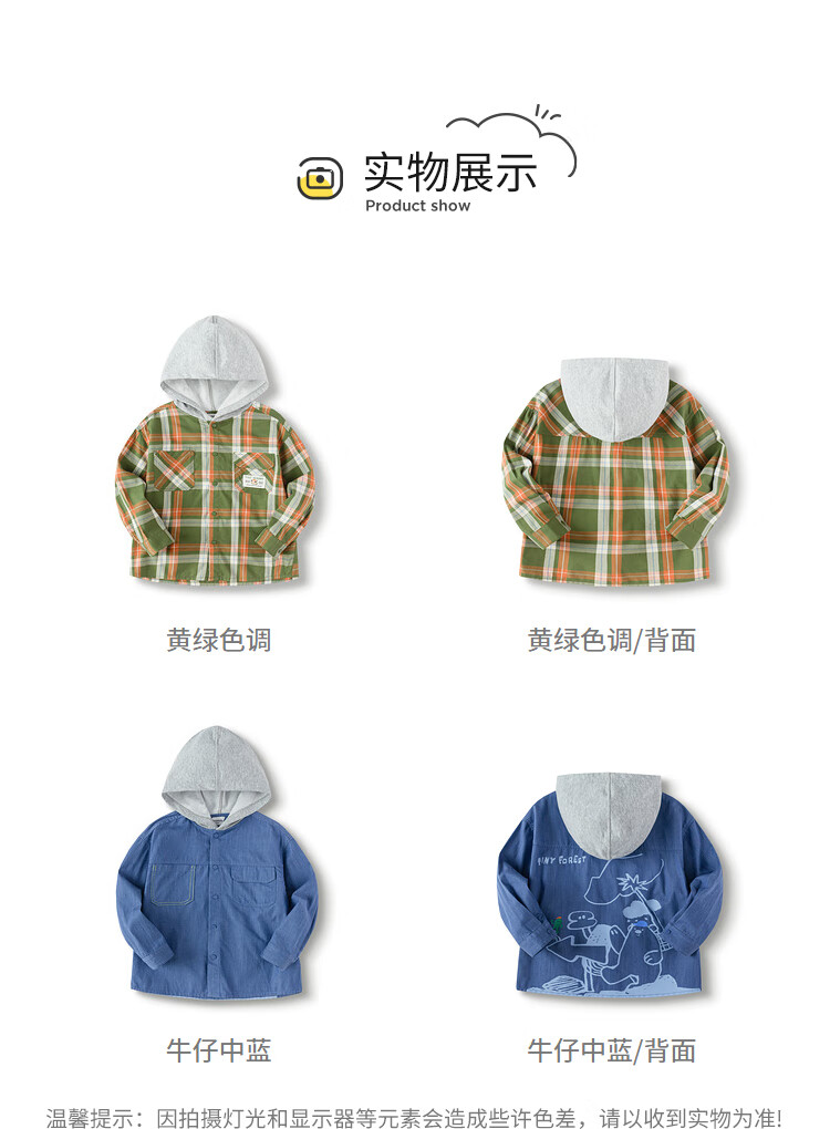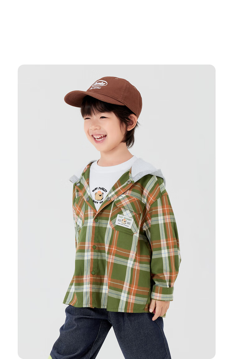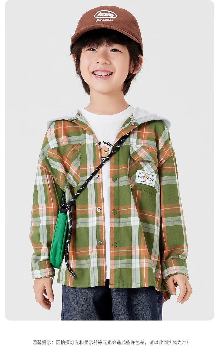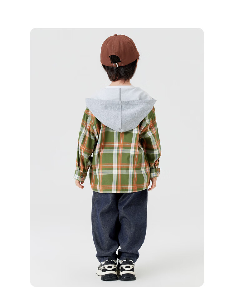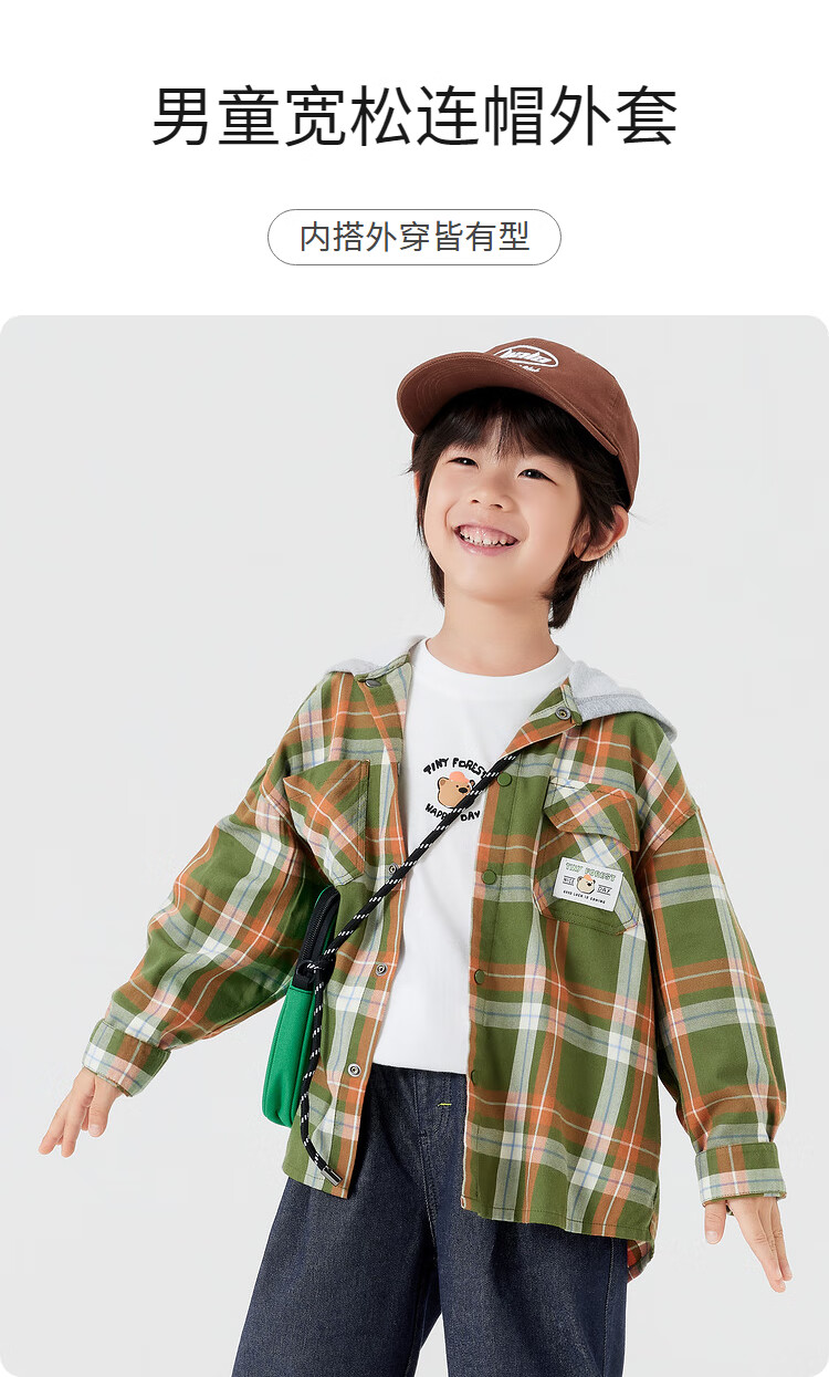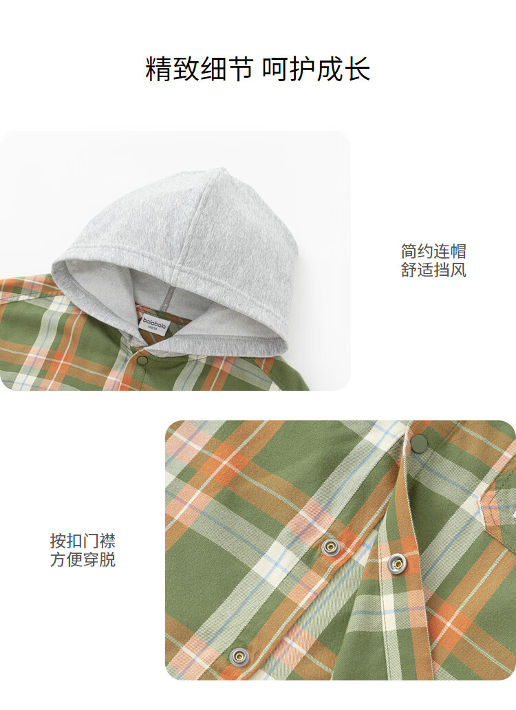 巴拉巴拉童装儿童外套格子宽松连帽上衣男童小童秋装户外休闲时尚 黄绿色调00434 100 cm