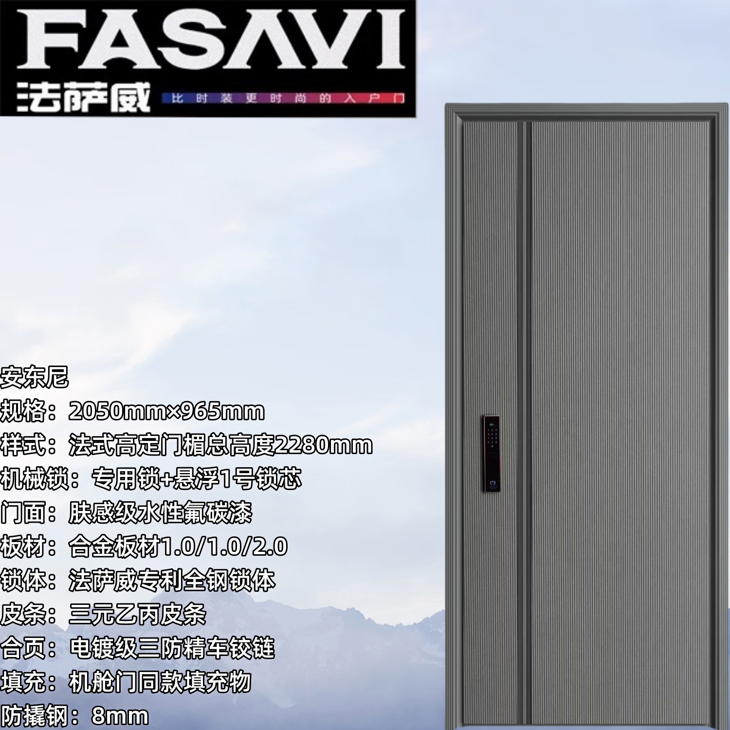 FASAVI Anthony Class A anti-theft entry door + high-definition lintel + special lock + anti-pry steel