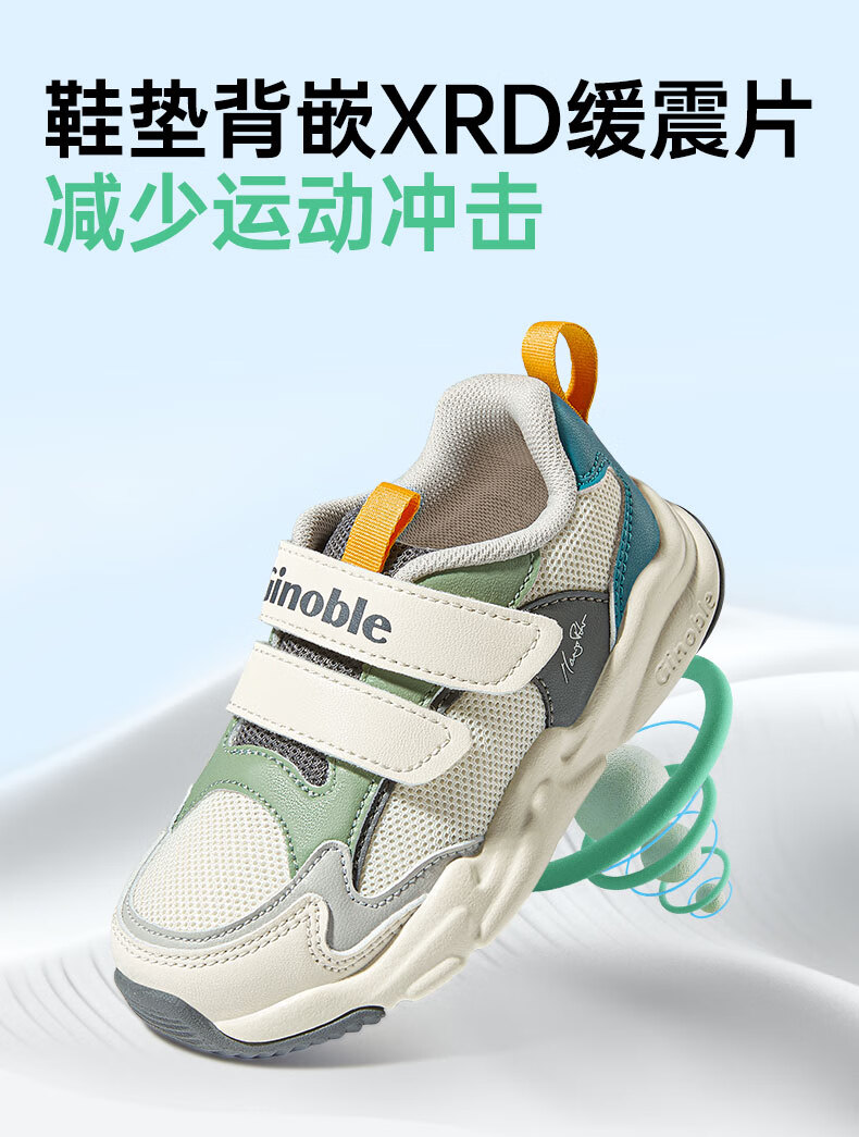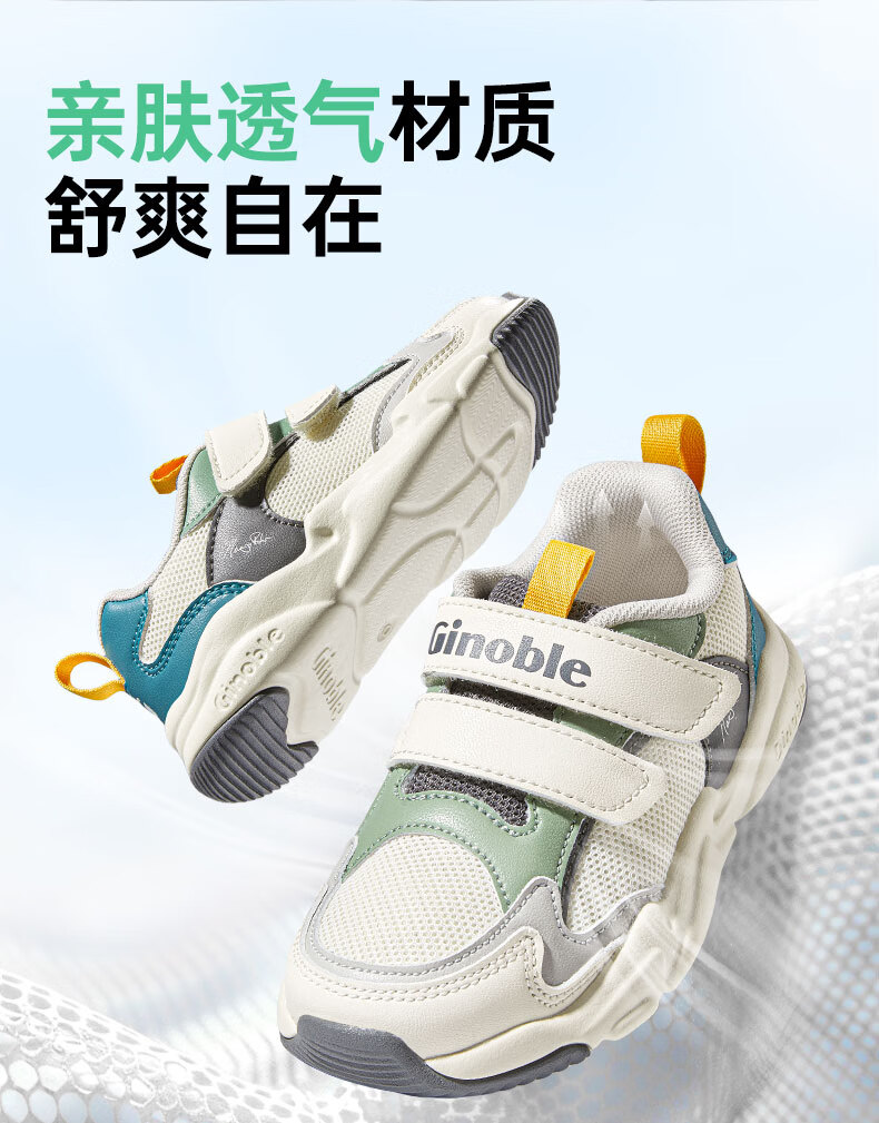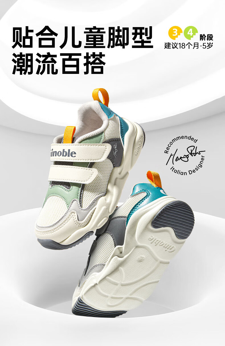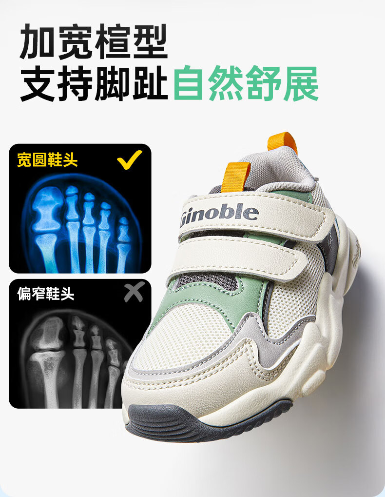 基诺浦男女童宝宝学步鞋 春秋透气幼儿童鞋 时尚百搭儿童机能鞋GY1610 象牙白/水草绿/灰色 29 185mm 适合脚长181-190mm